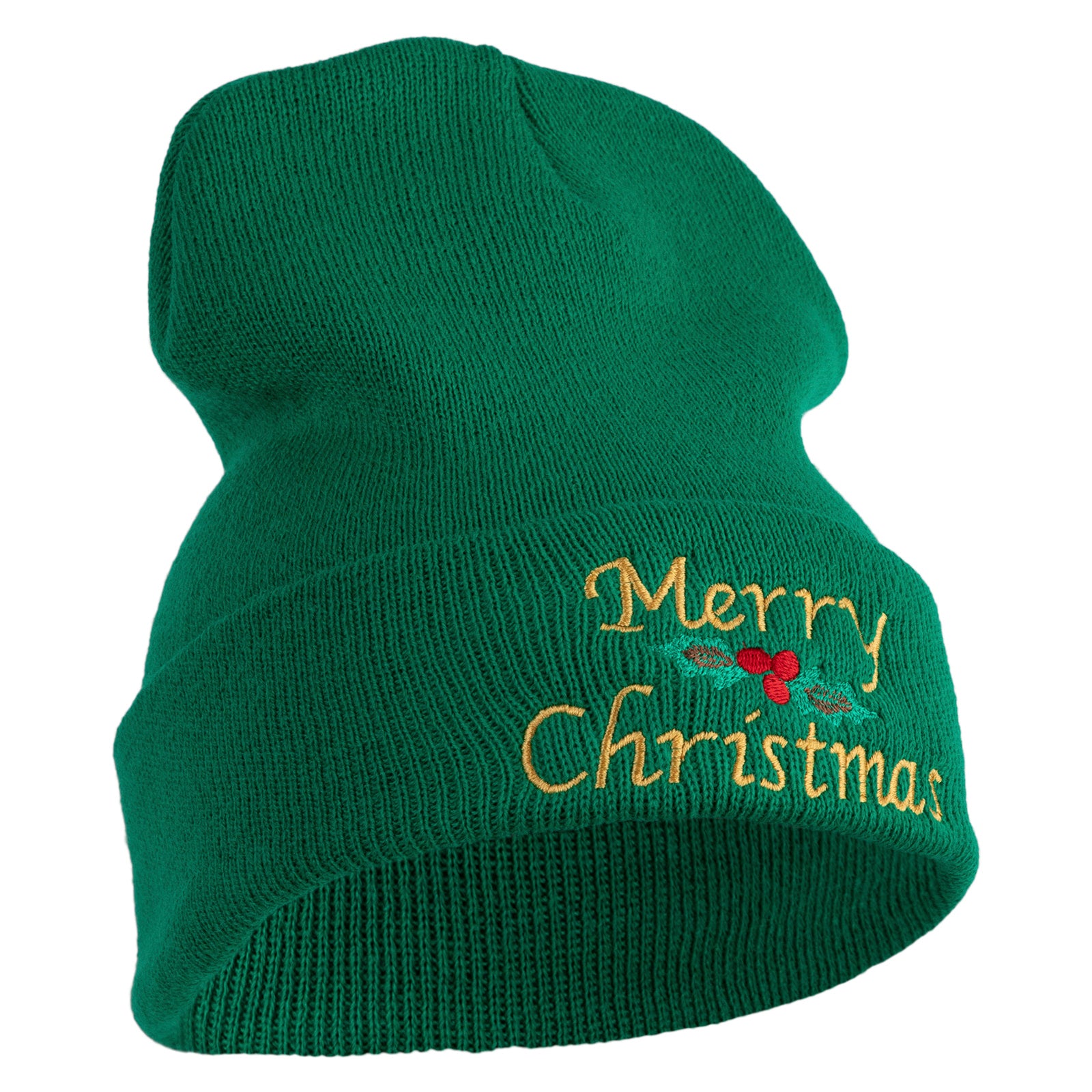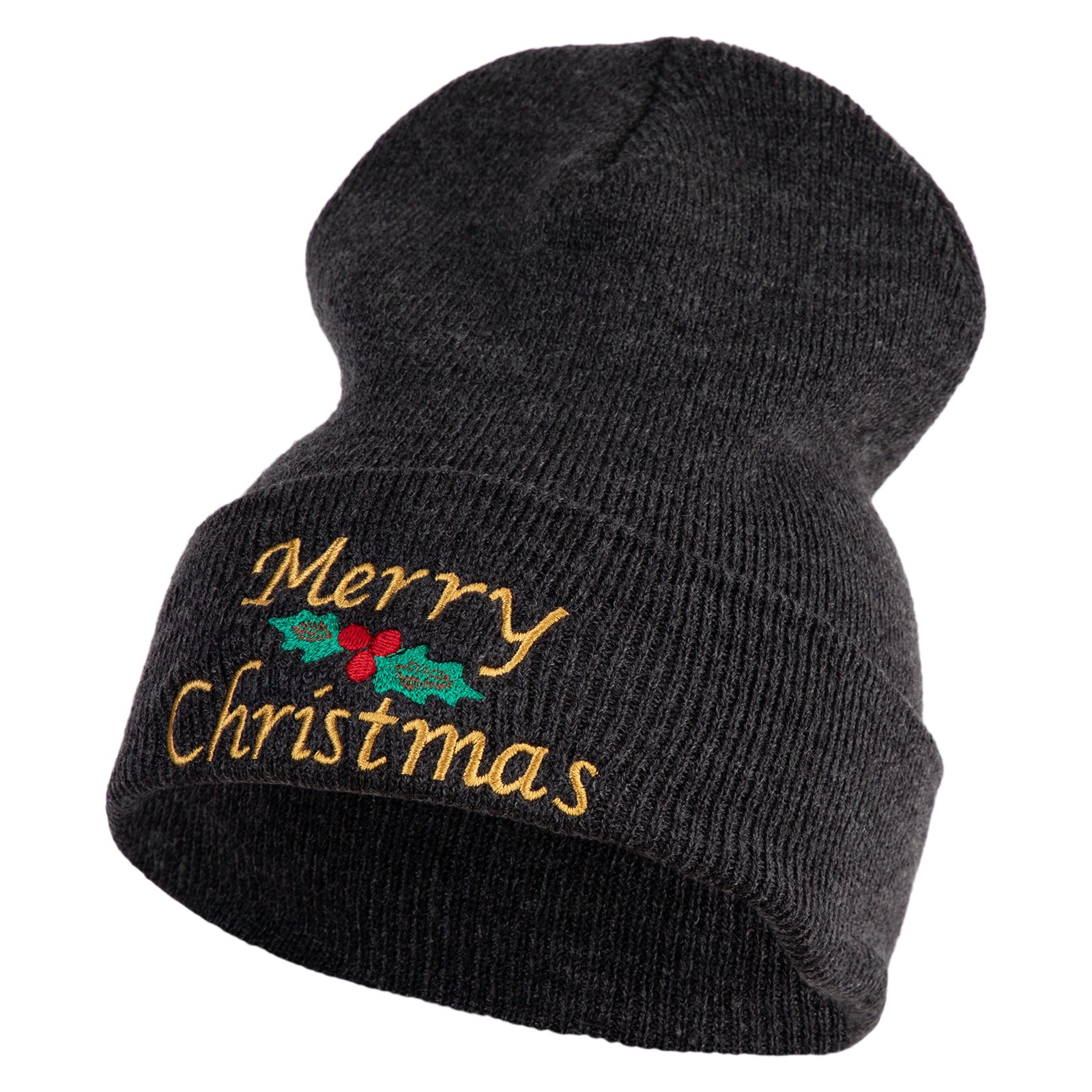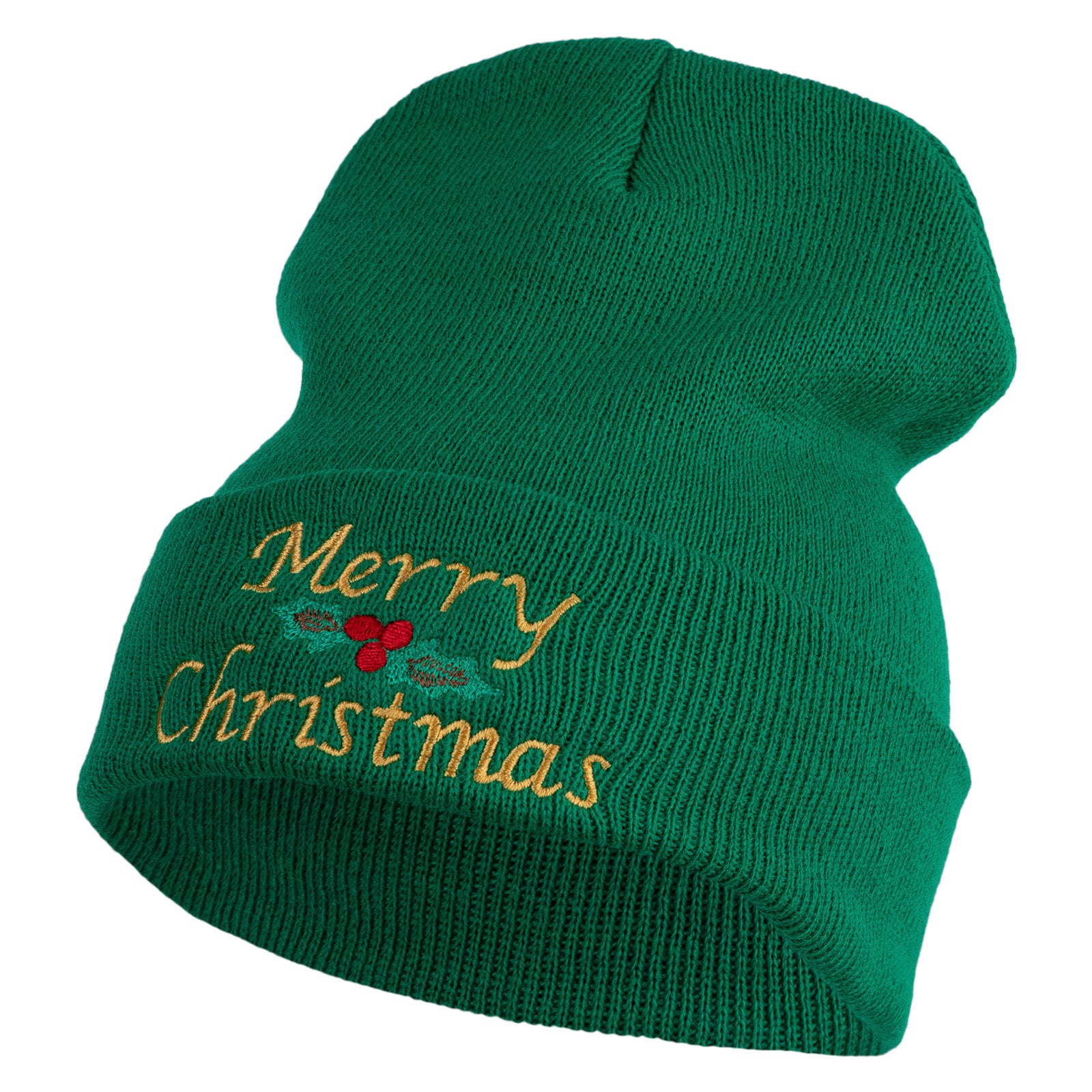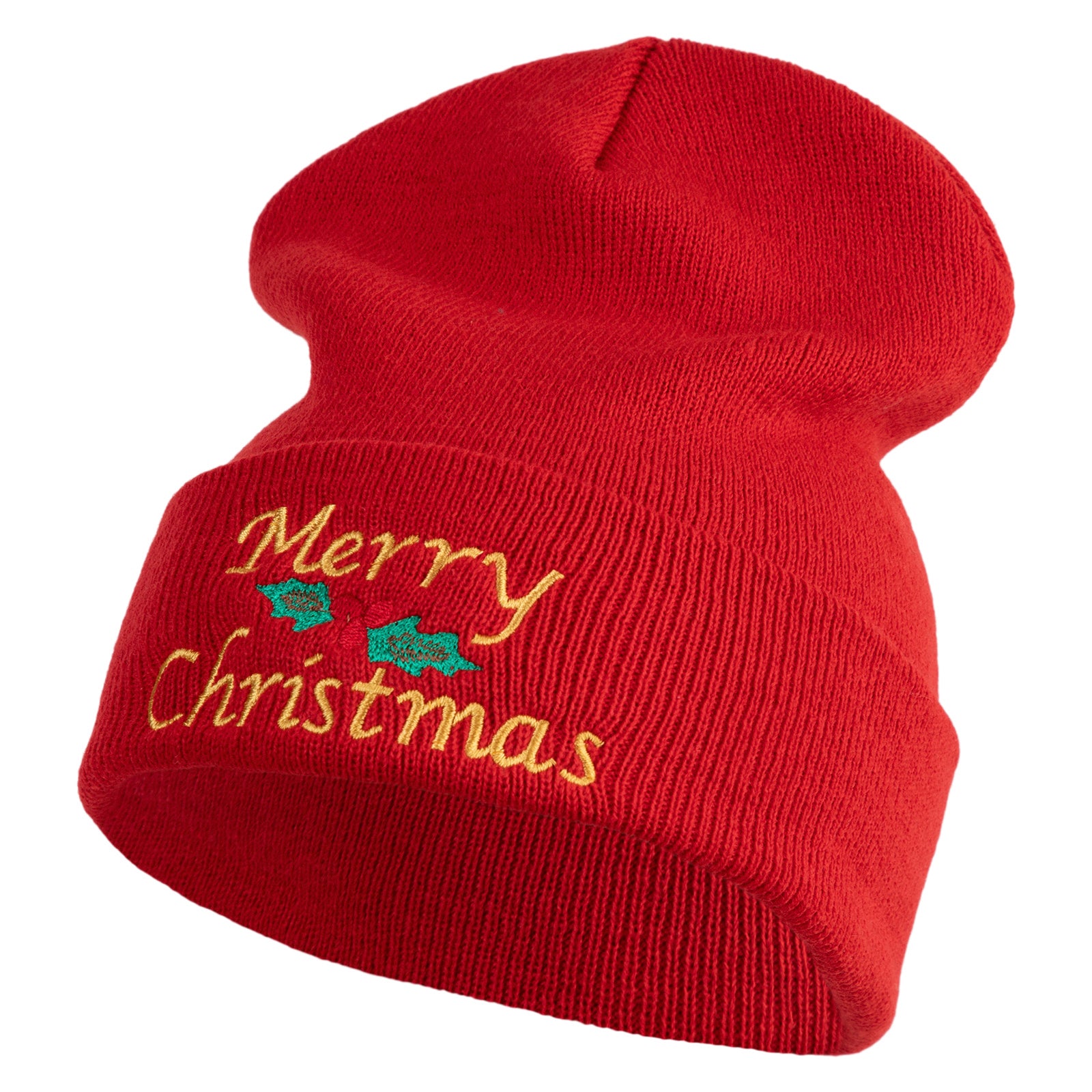 Product Name, Merry Christmas Mistletoe Embroidered 12 inch Cuffed Knit Long Beanie