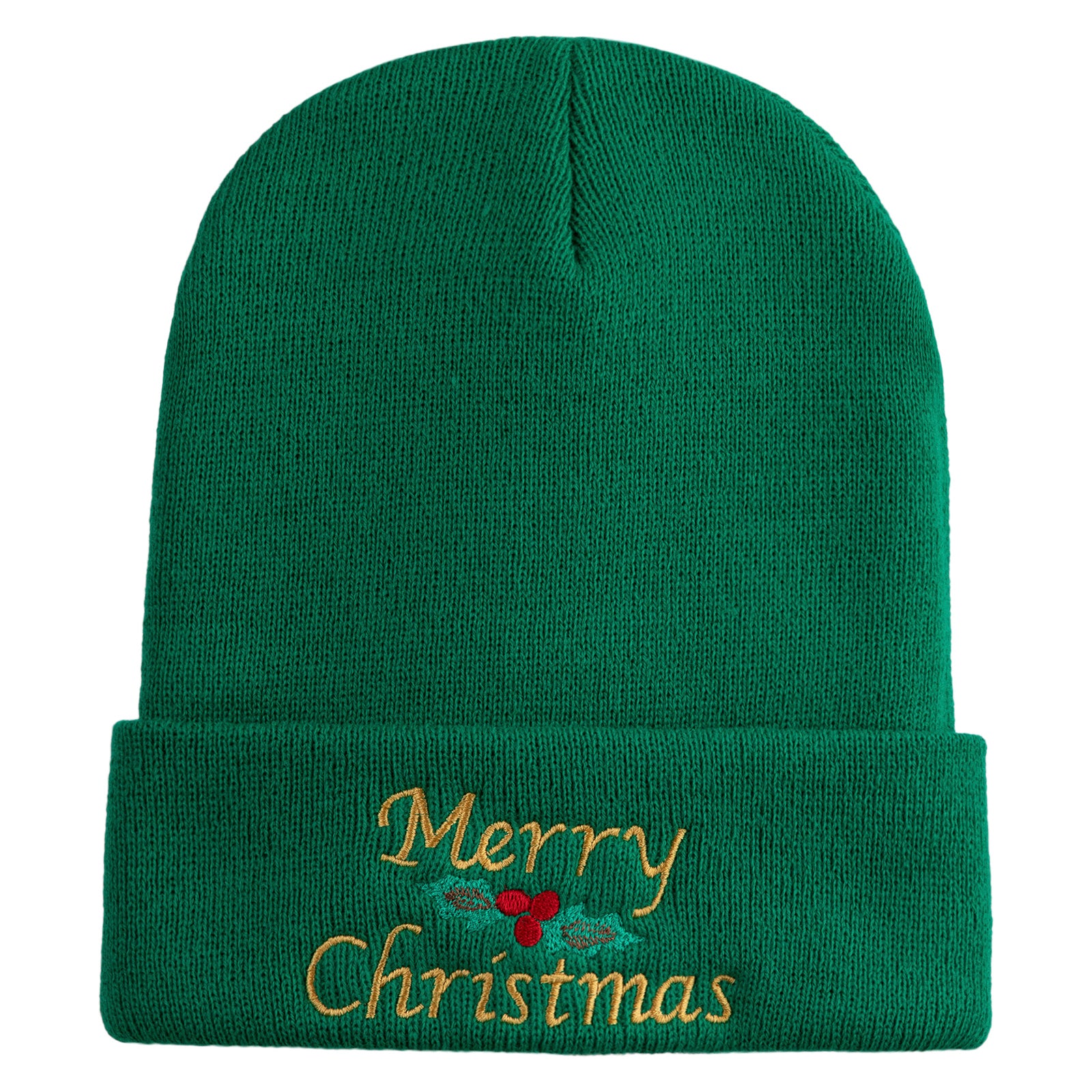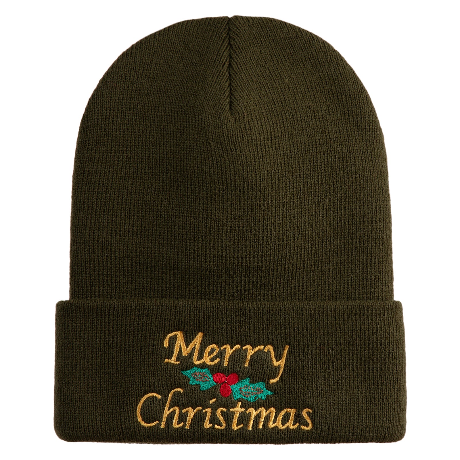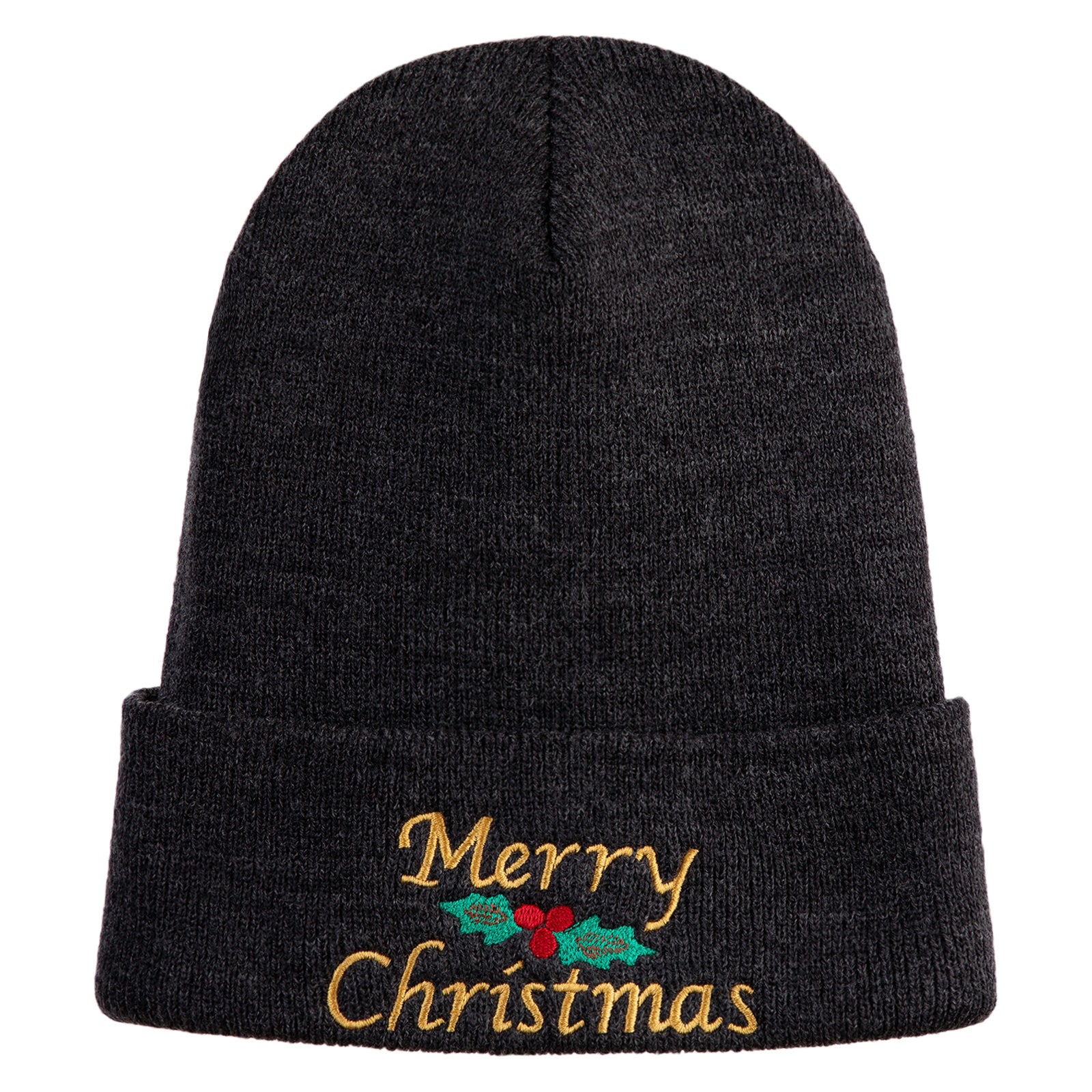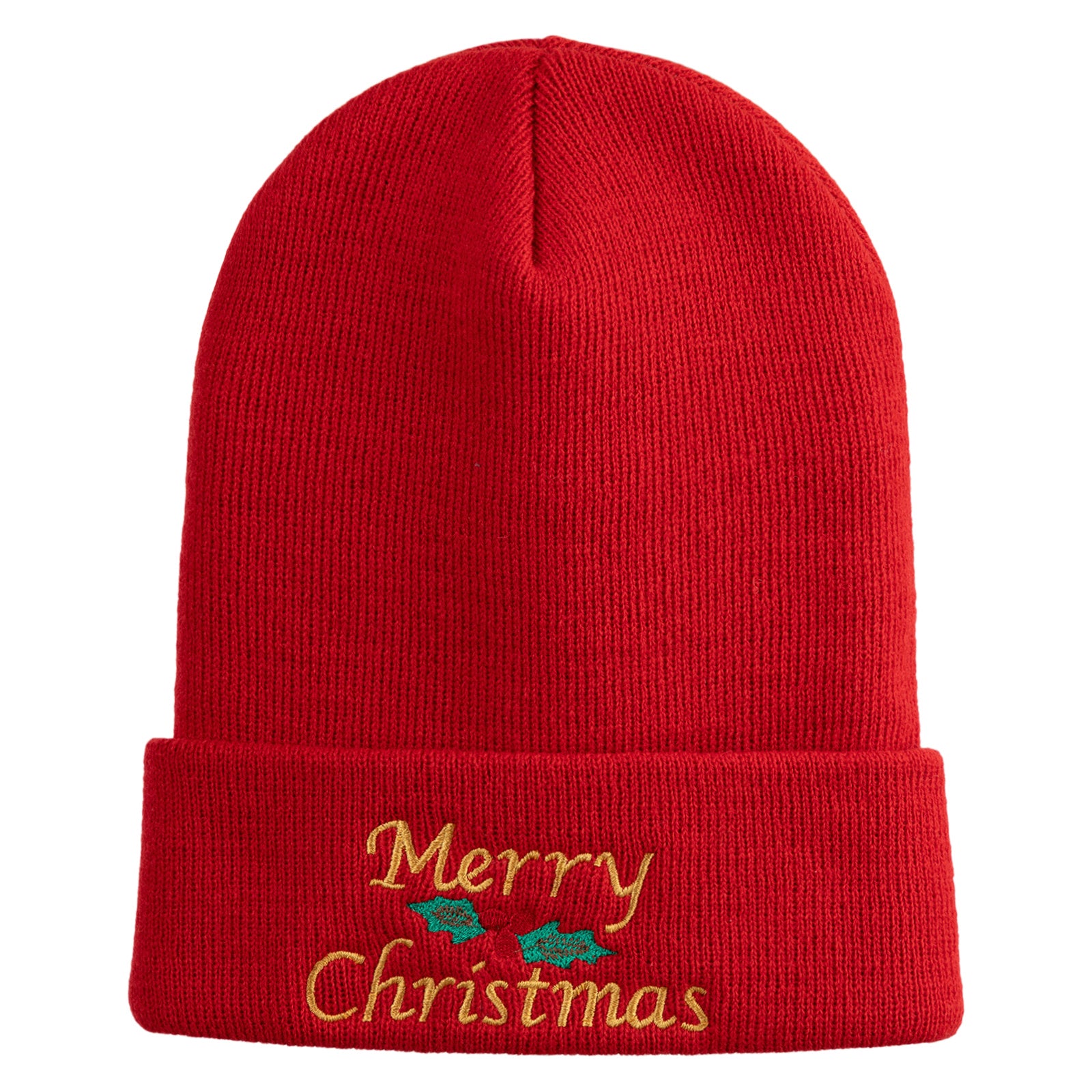 Product Name, Merry Christmas Mistletoe Embroidered 12 inch Cuffed Knit Long Beanie