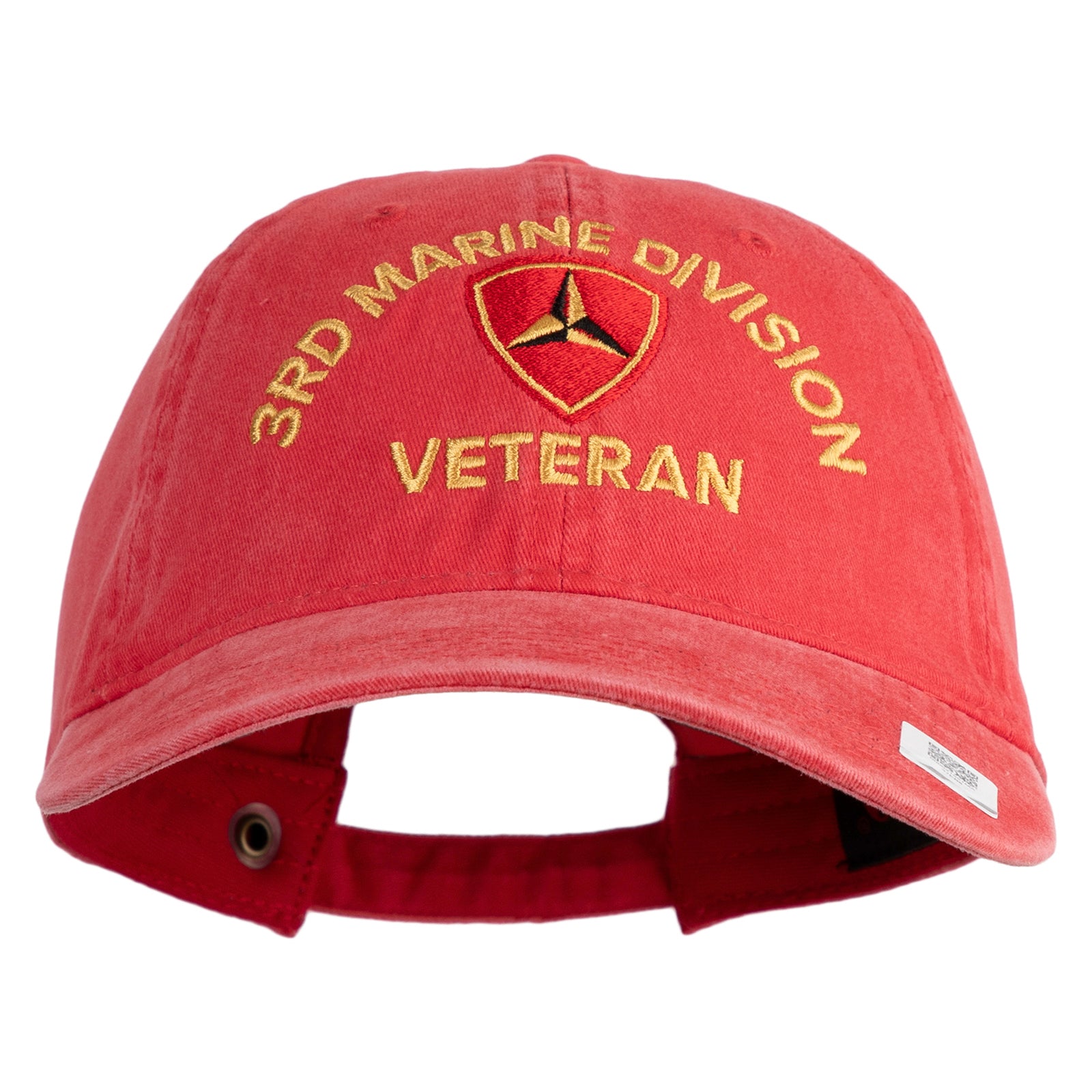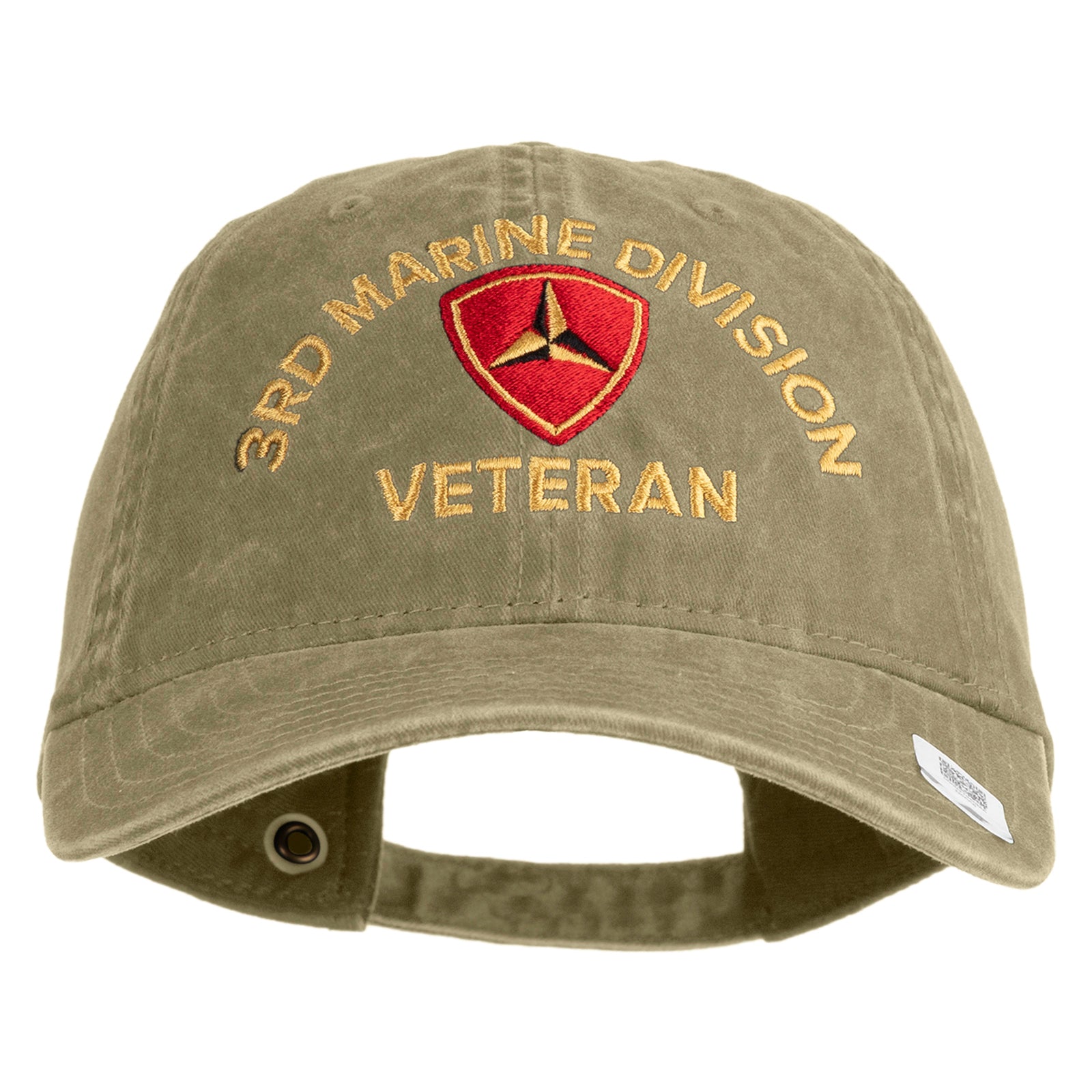 3rd Marine Division Veteran Embroidered Washed Solid Pigment Dyed Cotton Twill Brass Buckle Cap