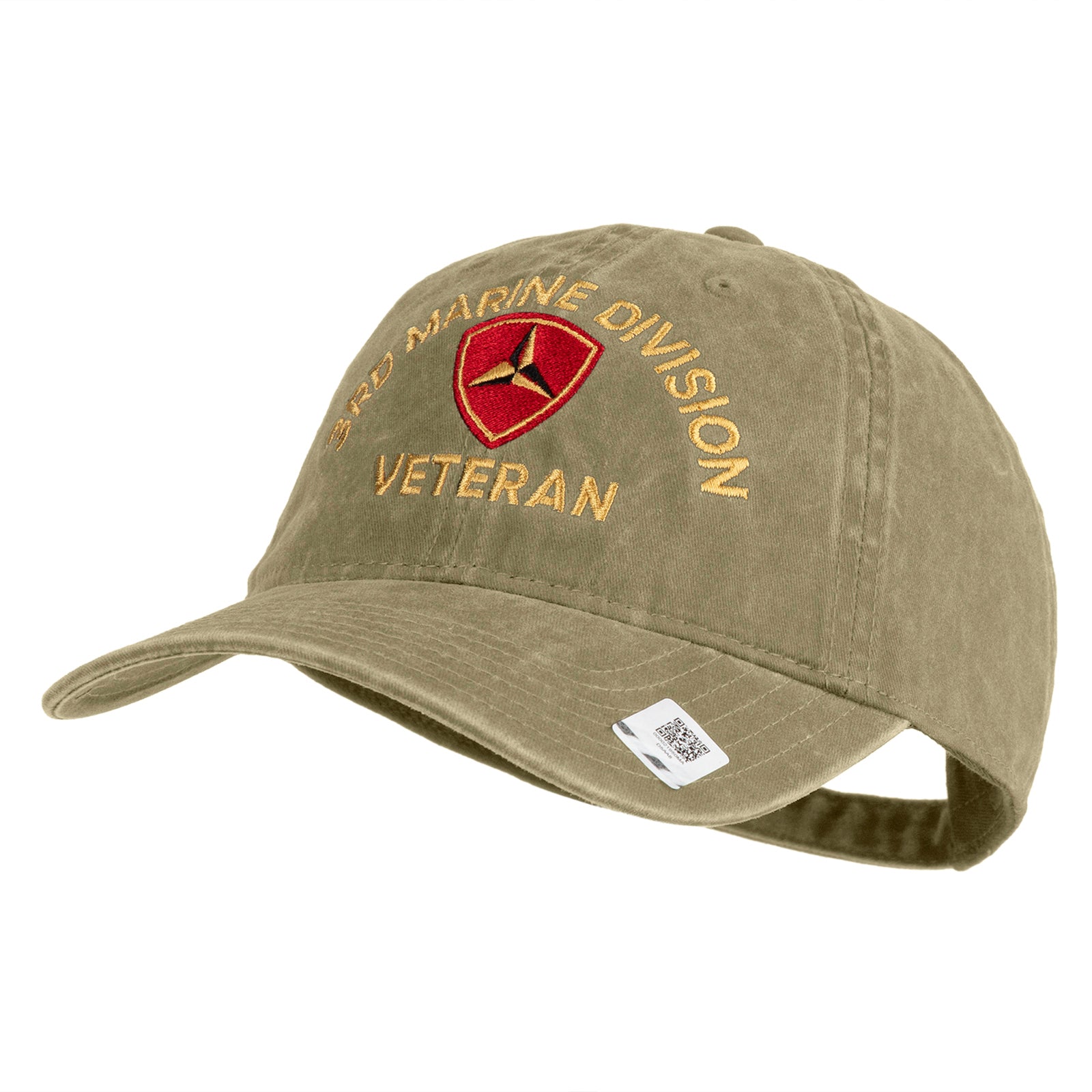 3rd Marine Division Veteran Embroidered Washed Solid Pigment Dyed Cotton Twill Brass Buckle Cap - Khaki OSFM