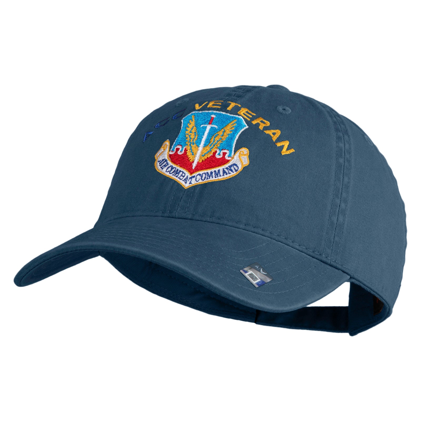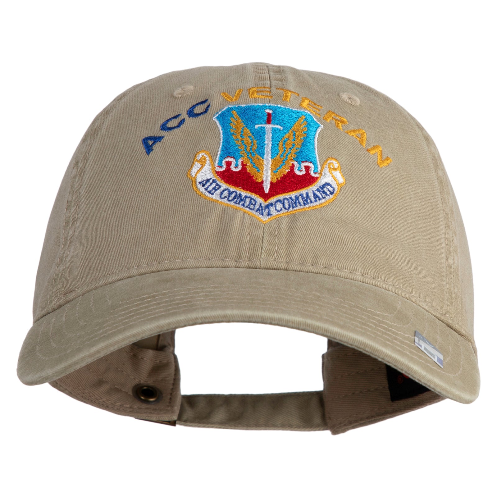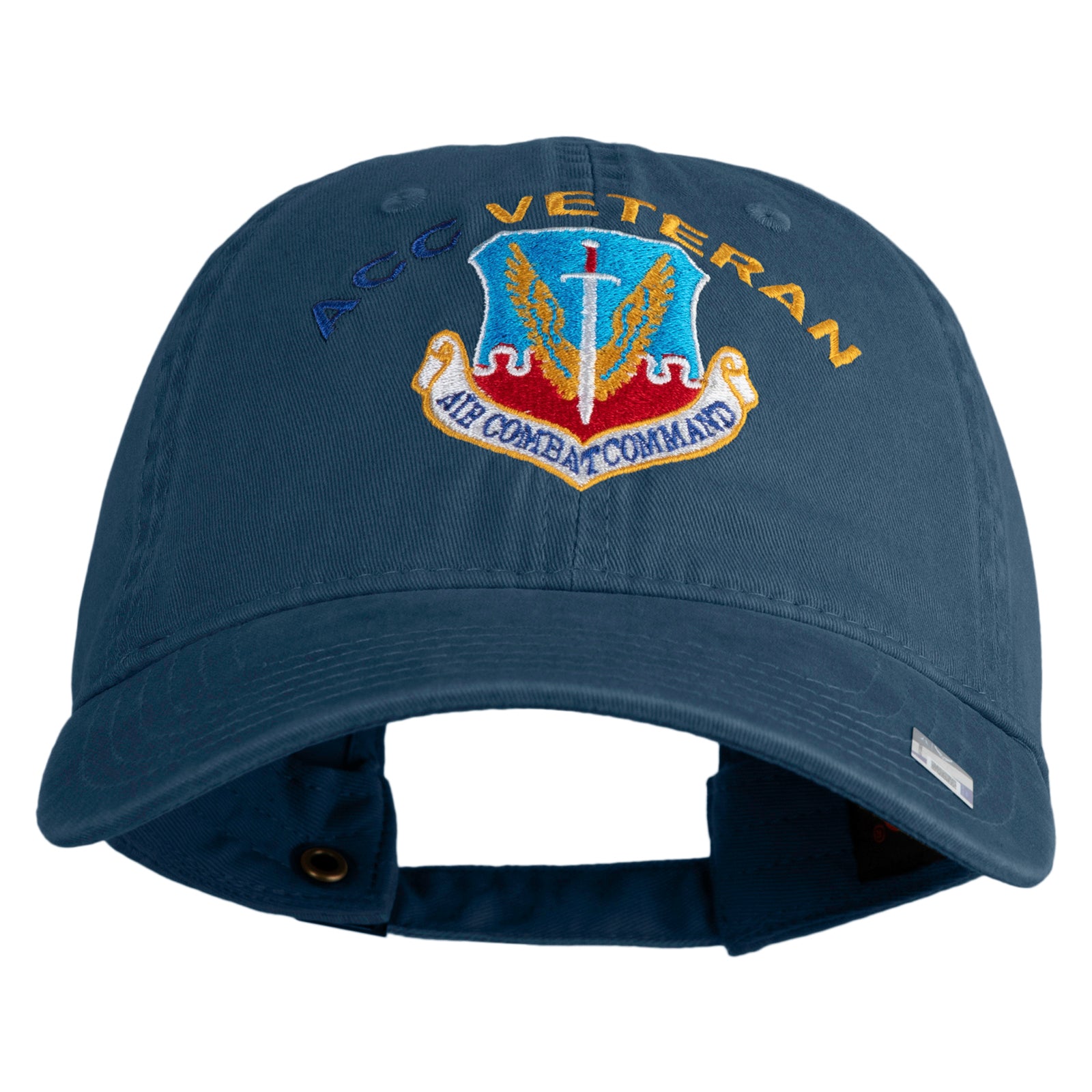 Title, Air Combat Command Veteran Embroidered Washed Solid Pigment Dyed Cotton Twill Brass Buckle Cap