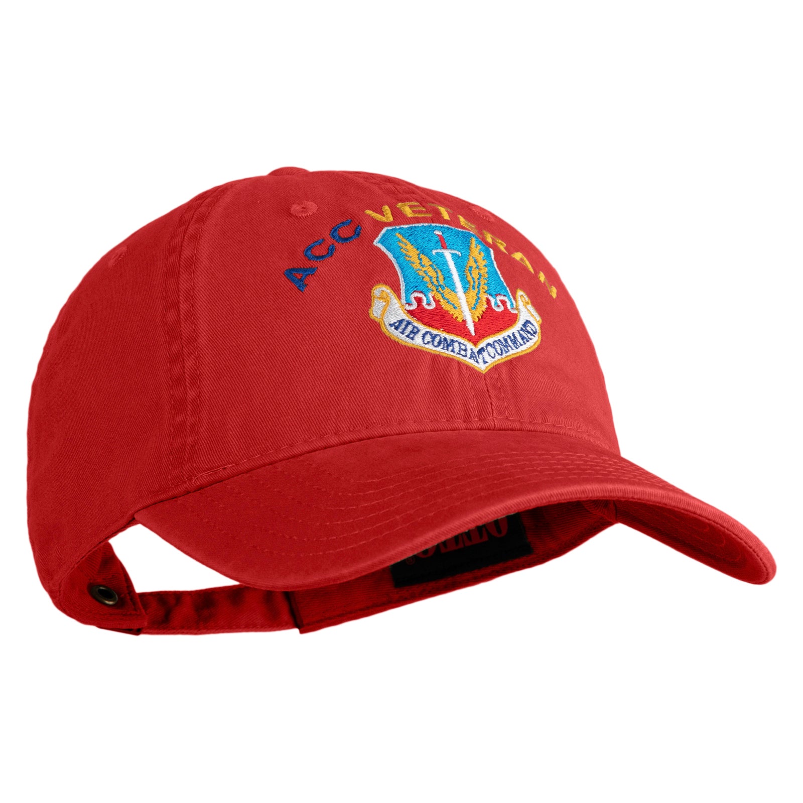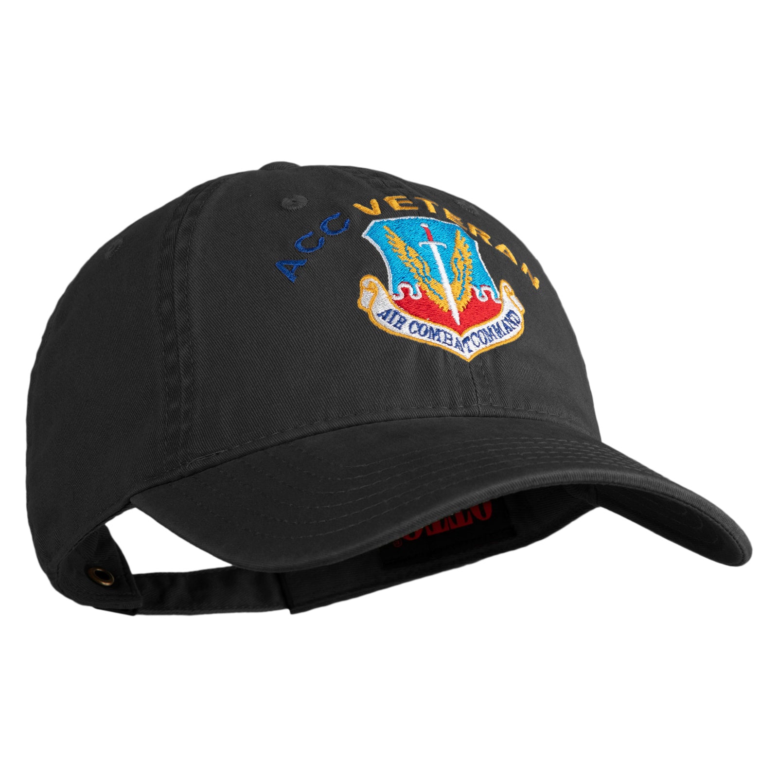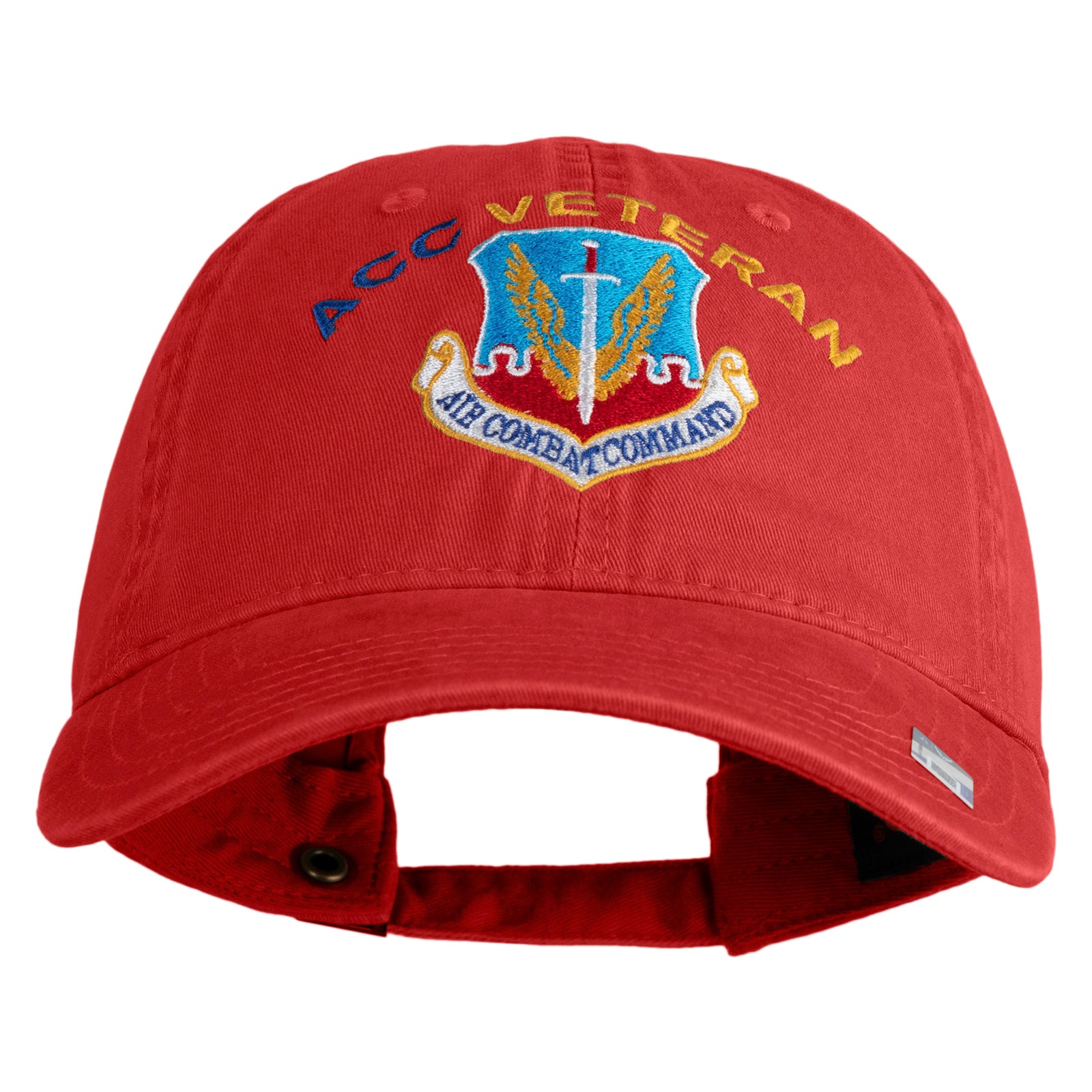 Title, Air Combat Command Veteran Embroidered Washed Solid Pigment Dyed Cotton Twill Brass Buckle Cap