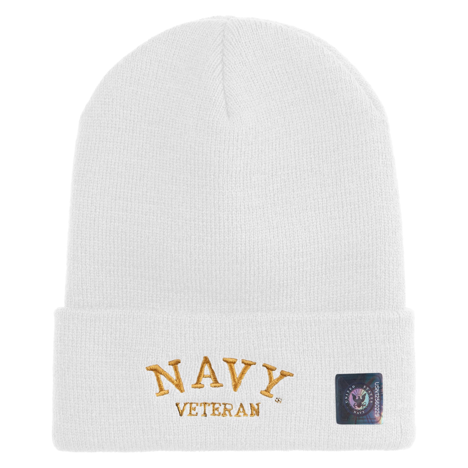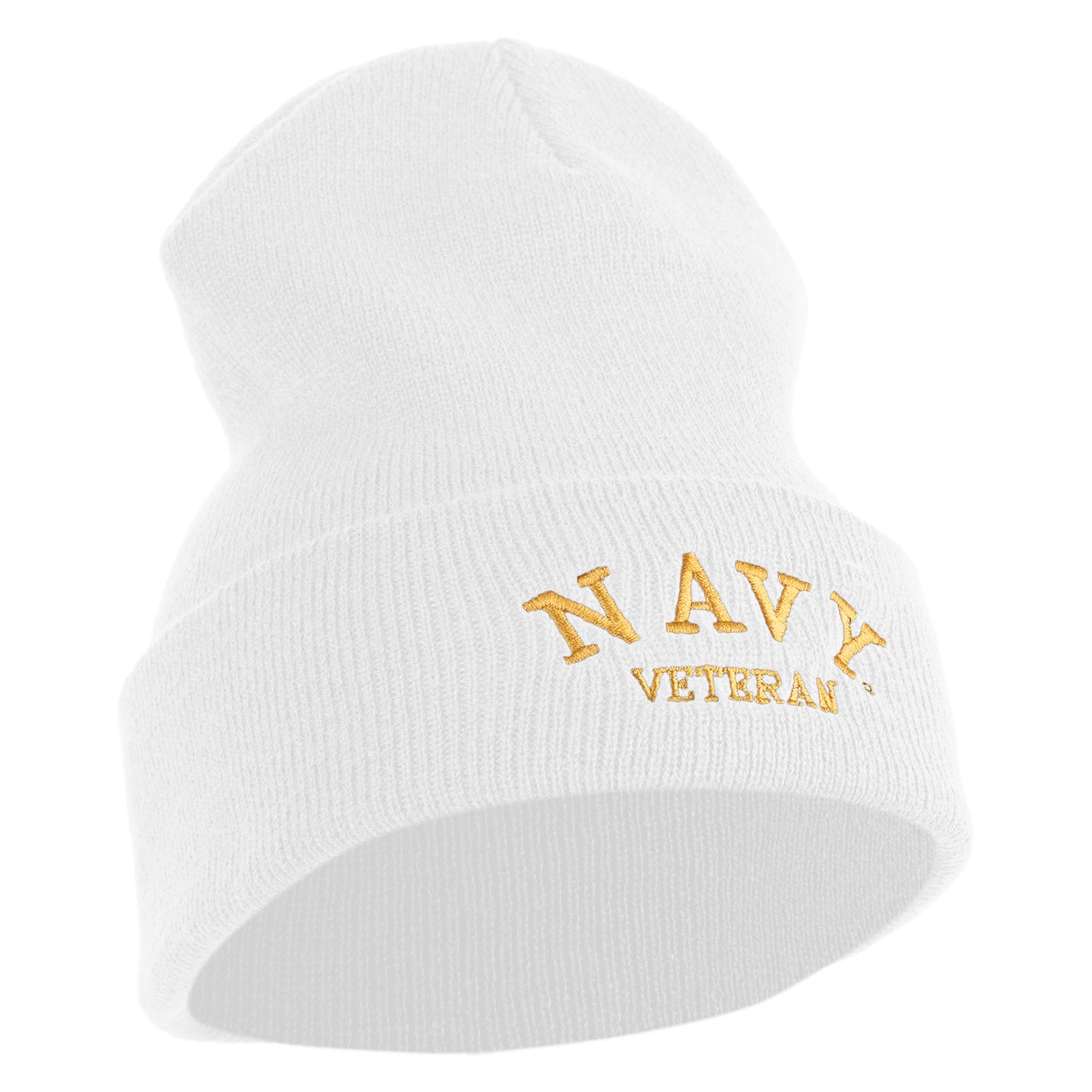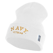 Navy Veteran Letters Embroidered 12 inch Cuffed Knit YP Long Beanie - White OSFM