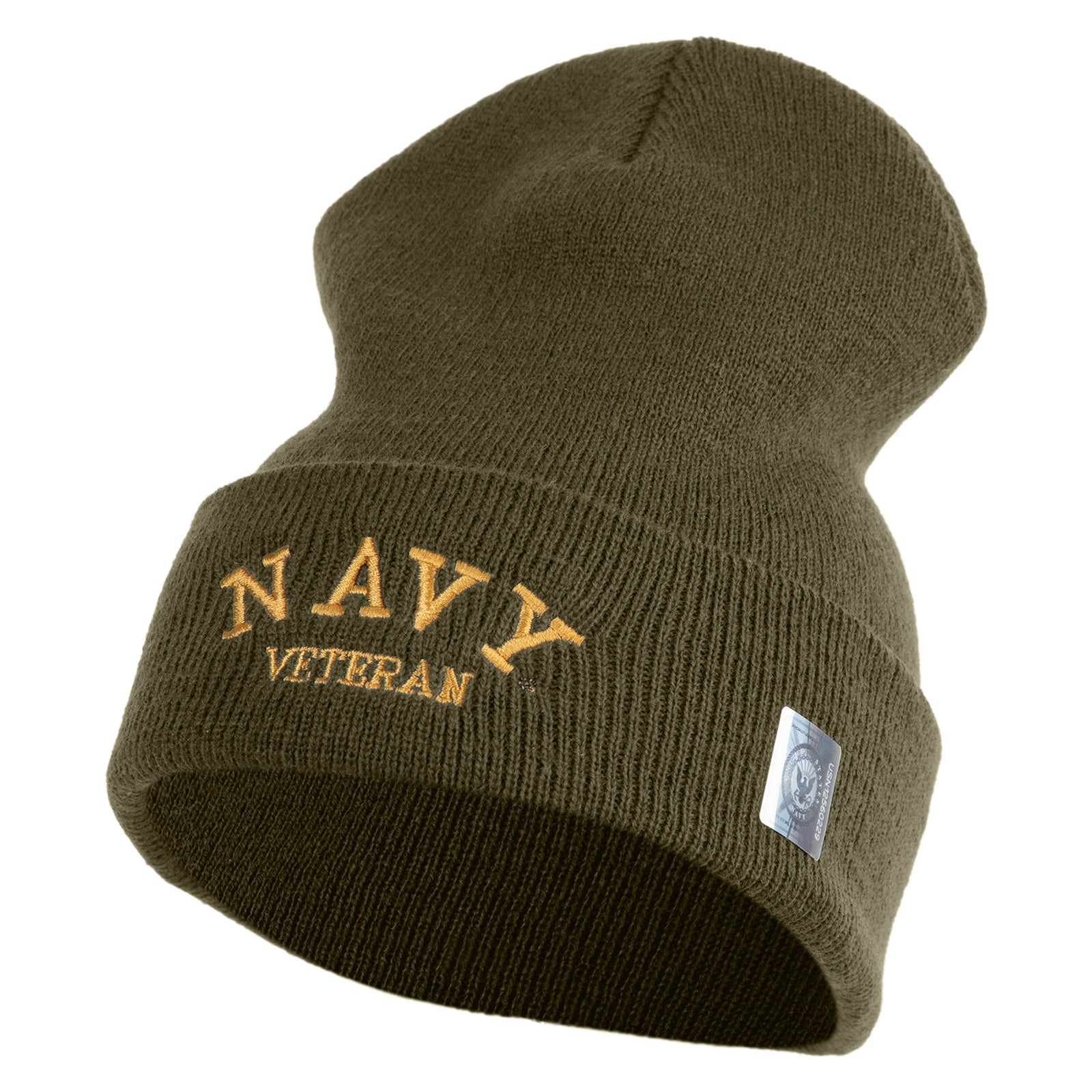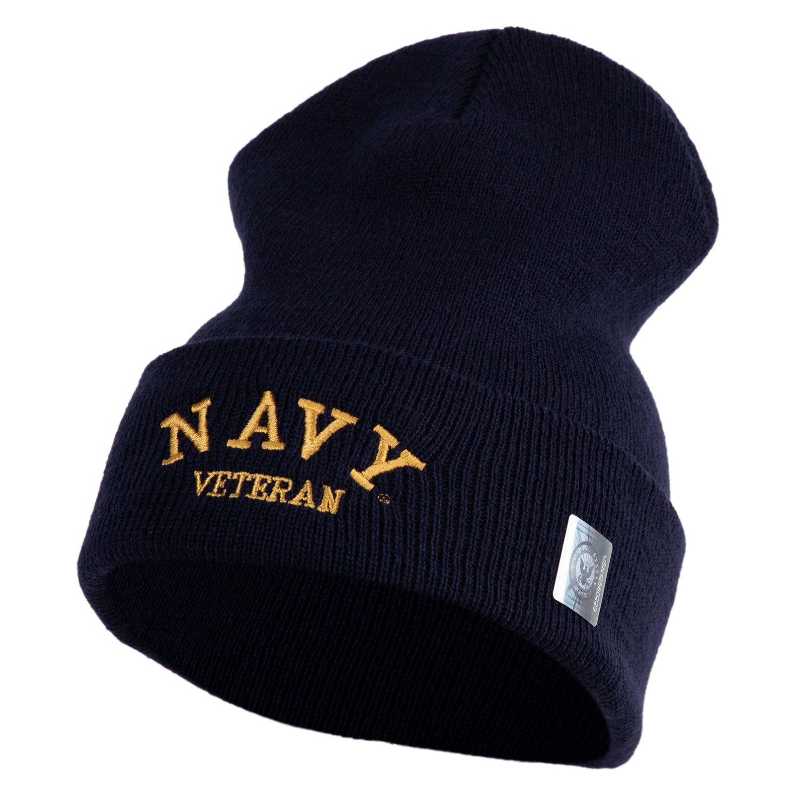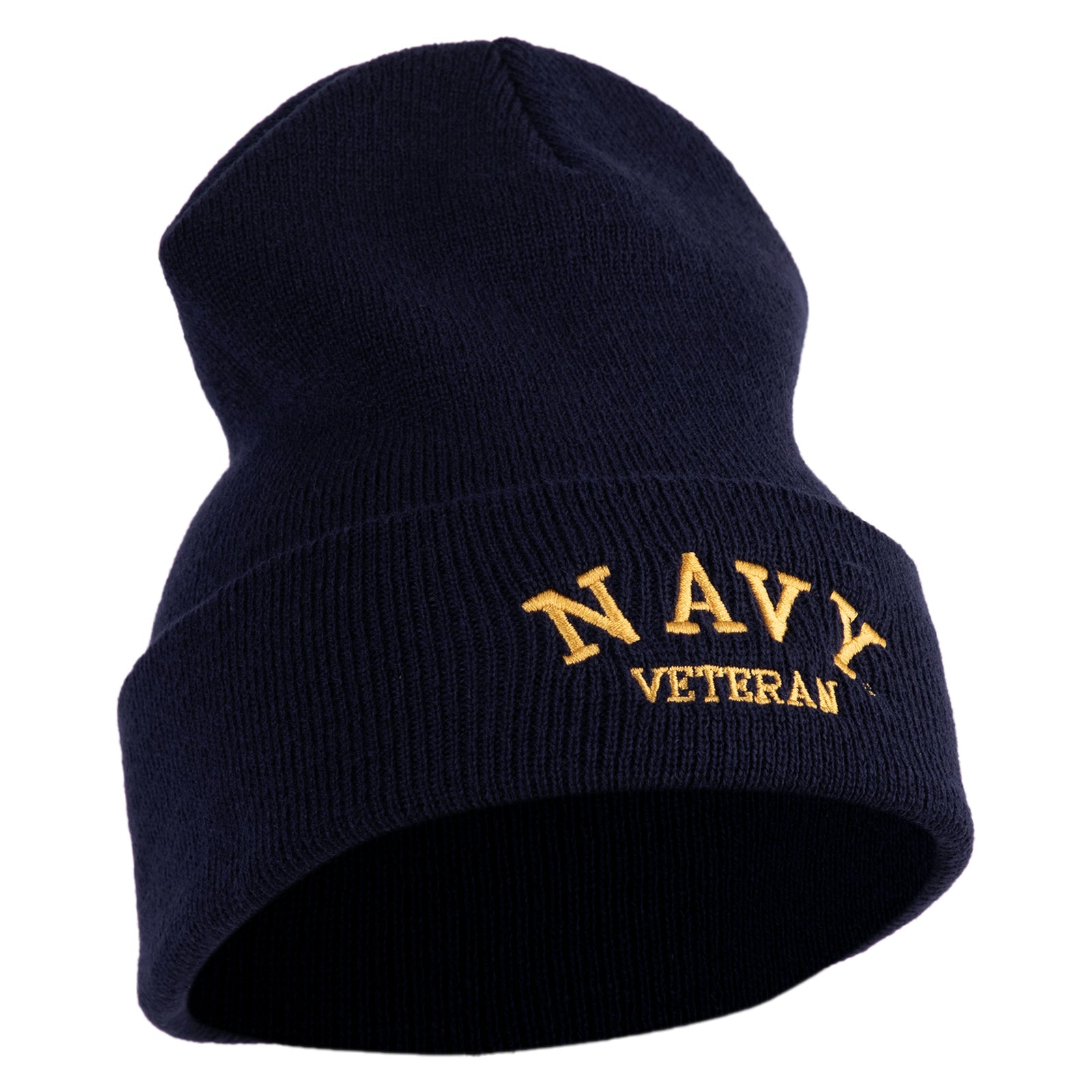 Navy Veteran Letters Embroidered 12 inch Cuffed Knit YP Long Beanie