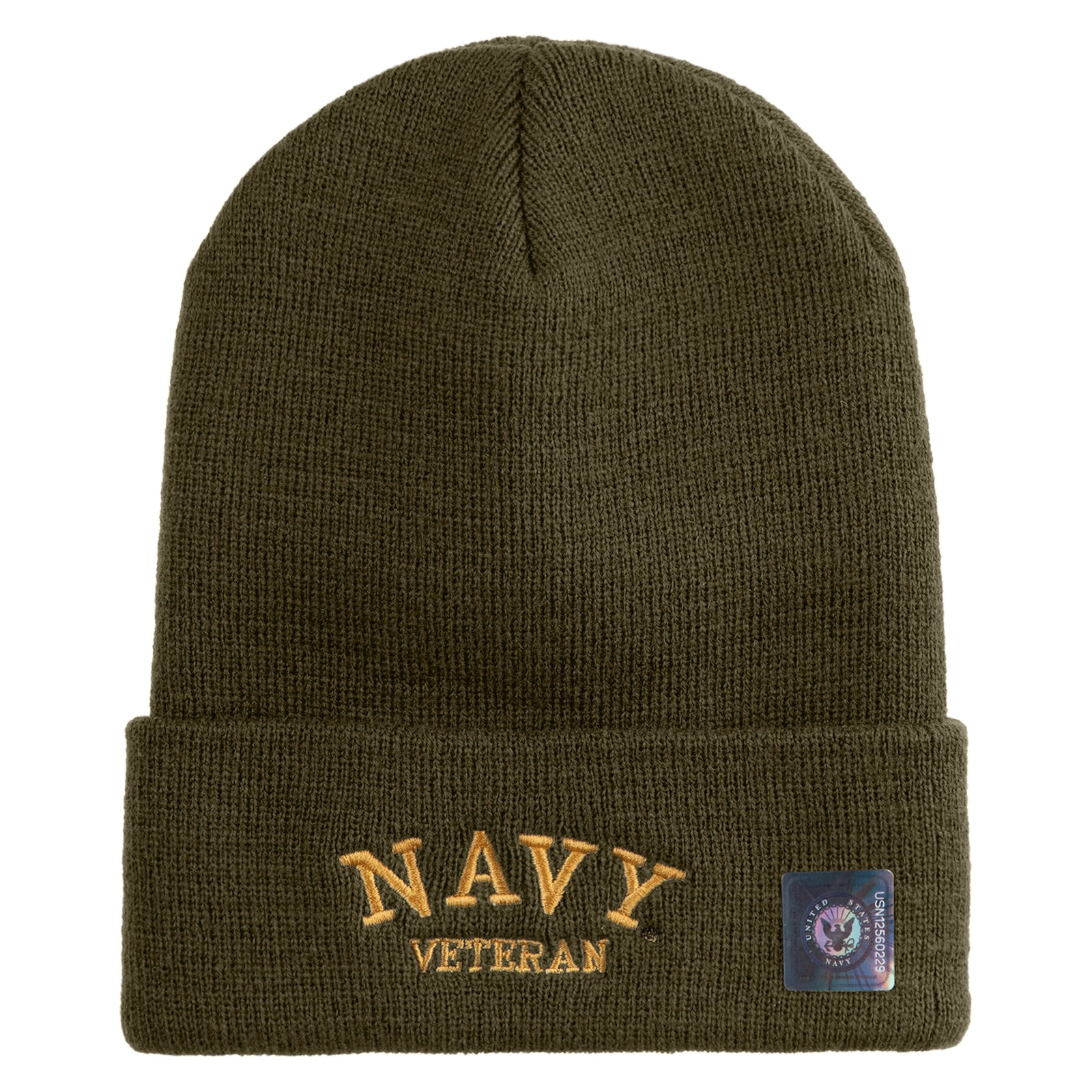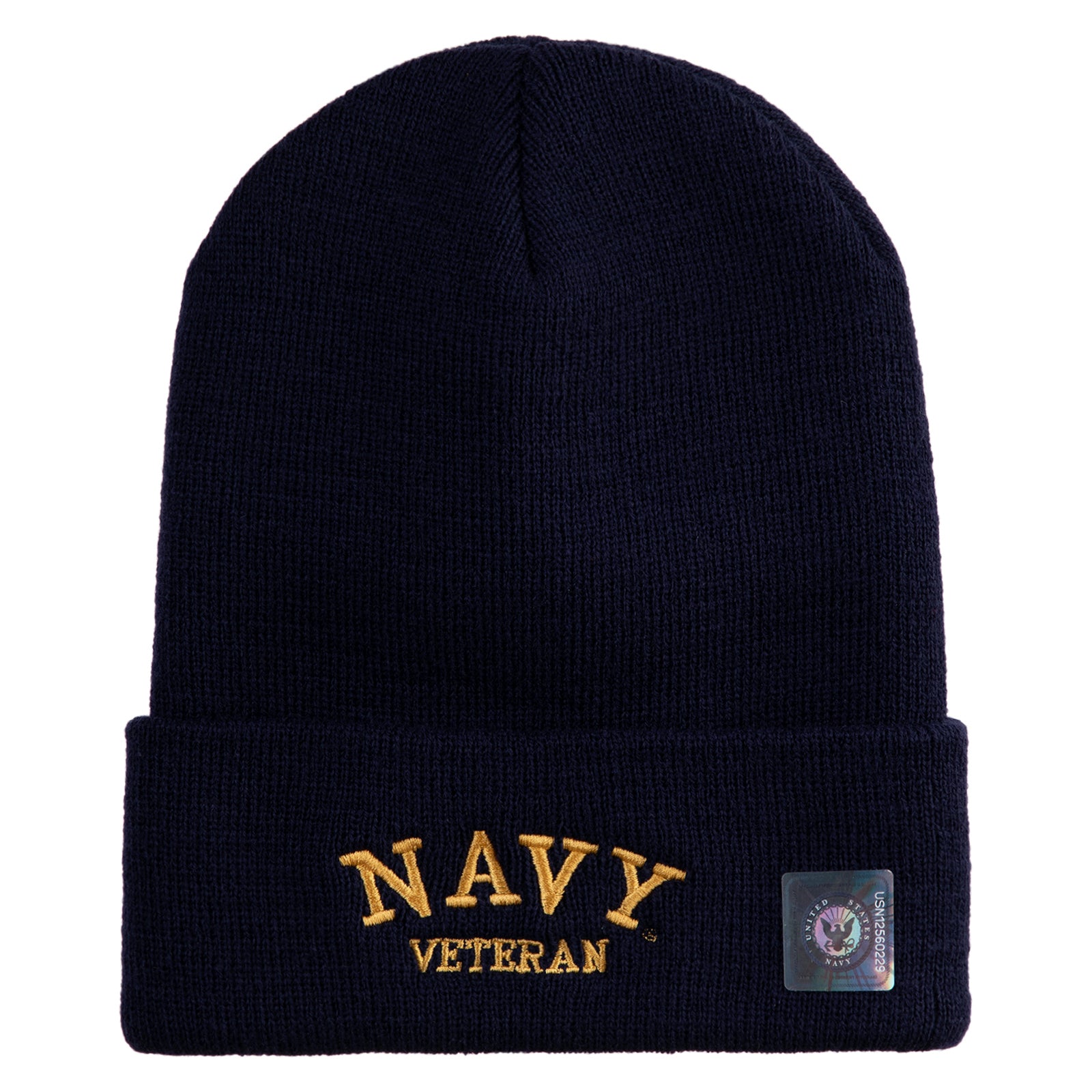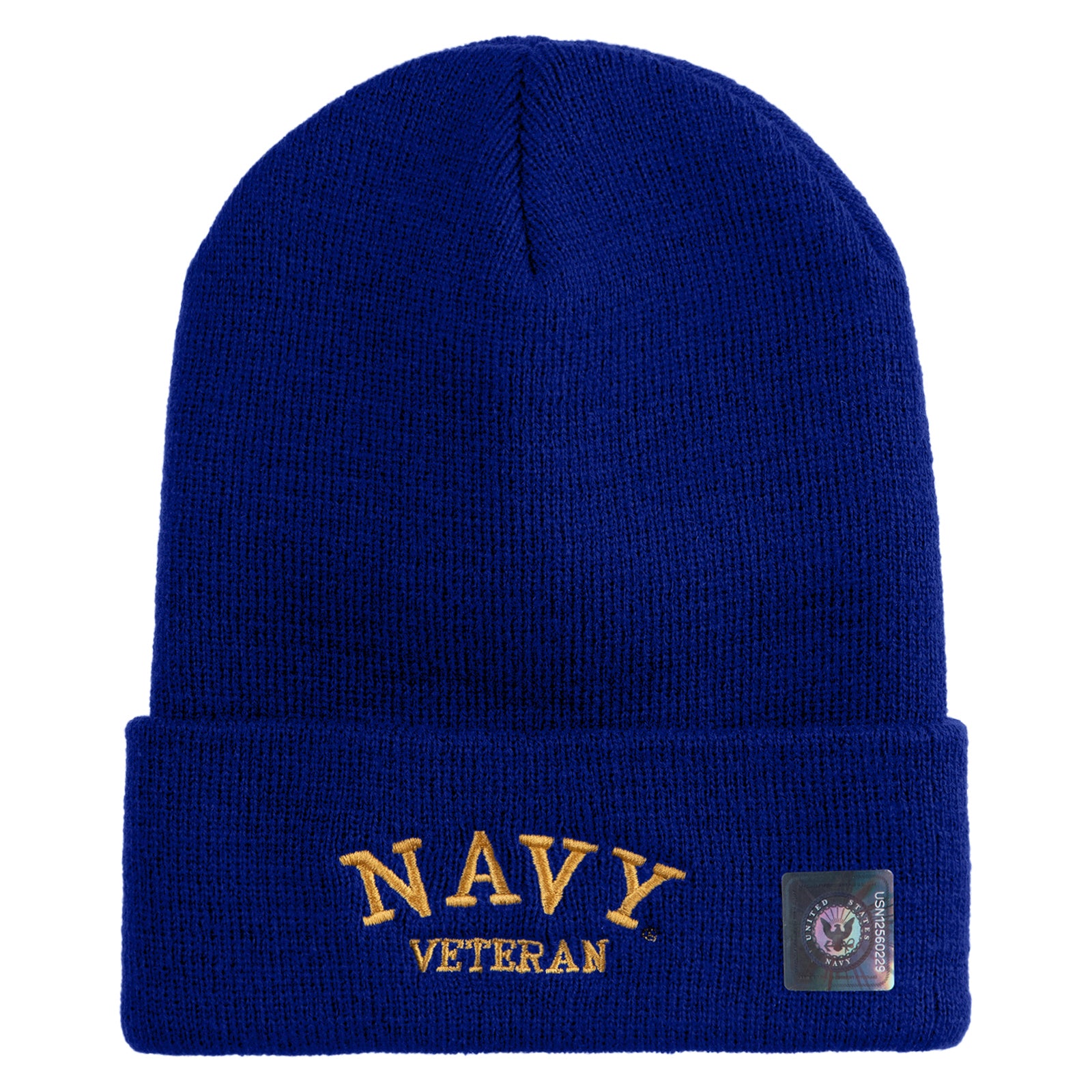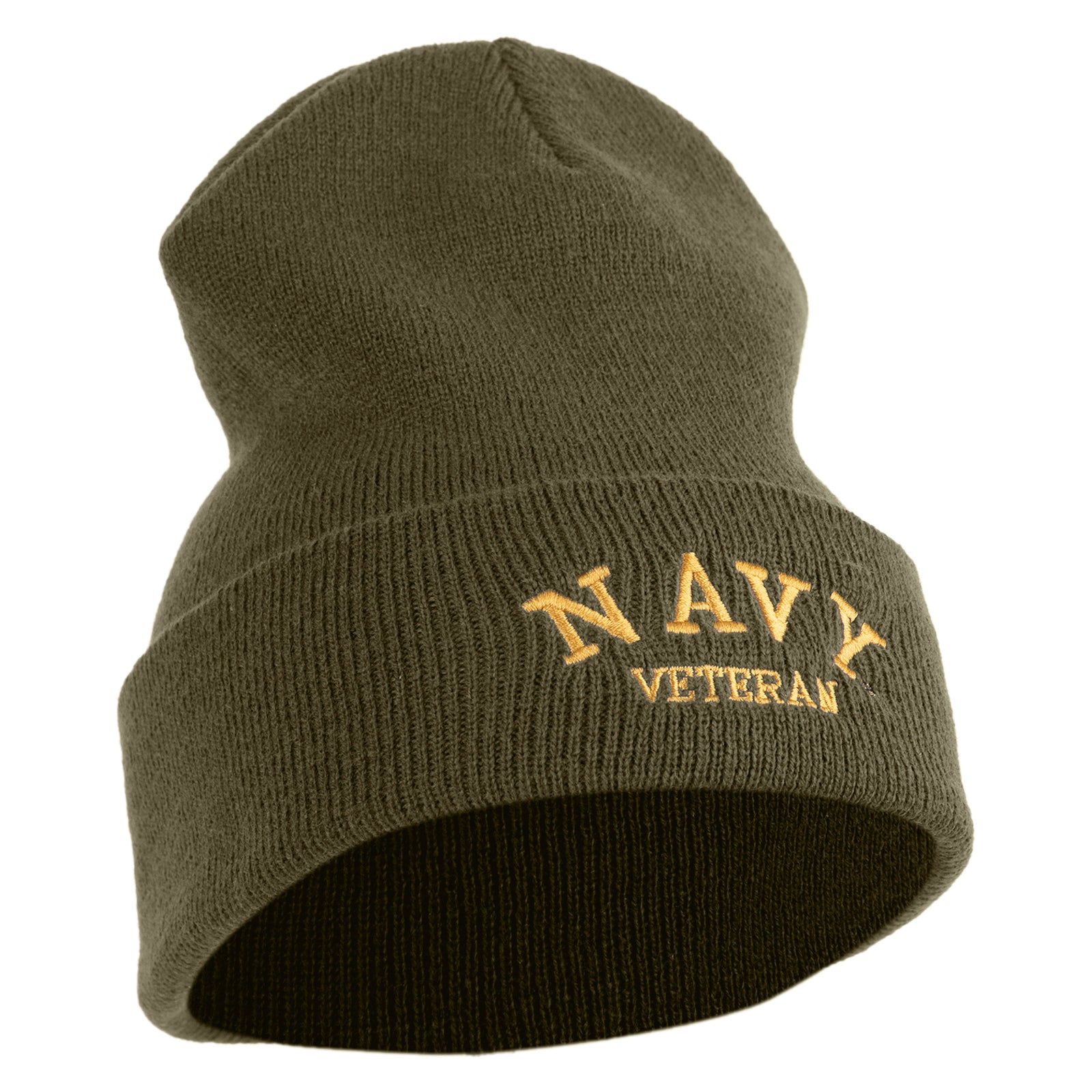 Navy Veteran Letters Embroidered 12 inch Cuffed Knit YP Long Beanie