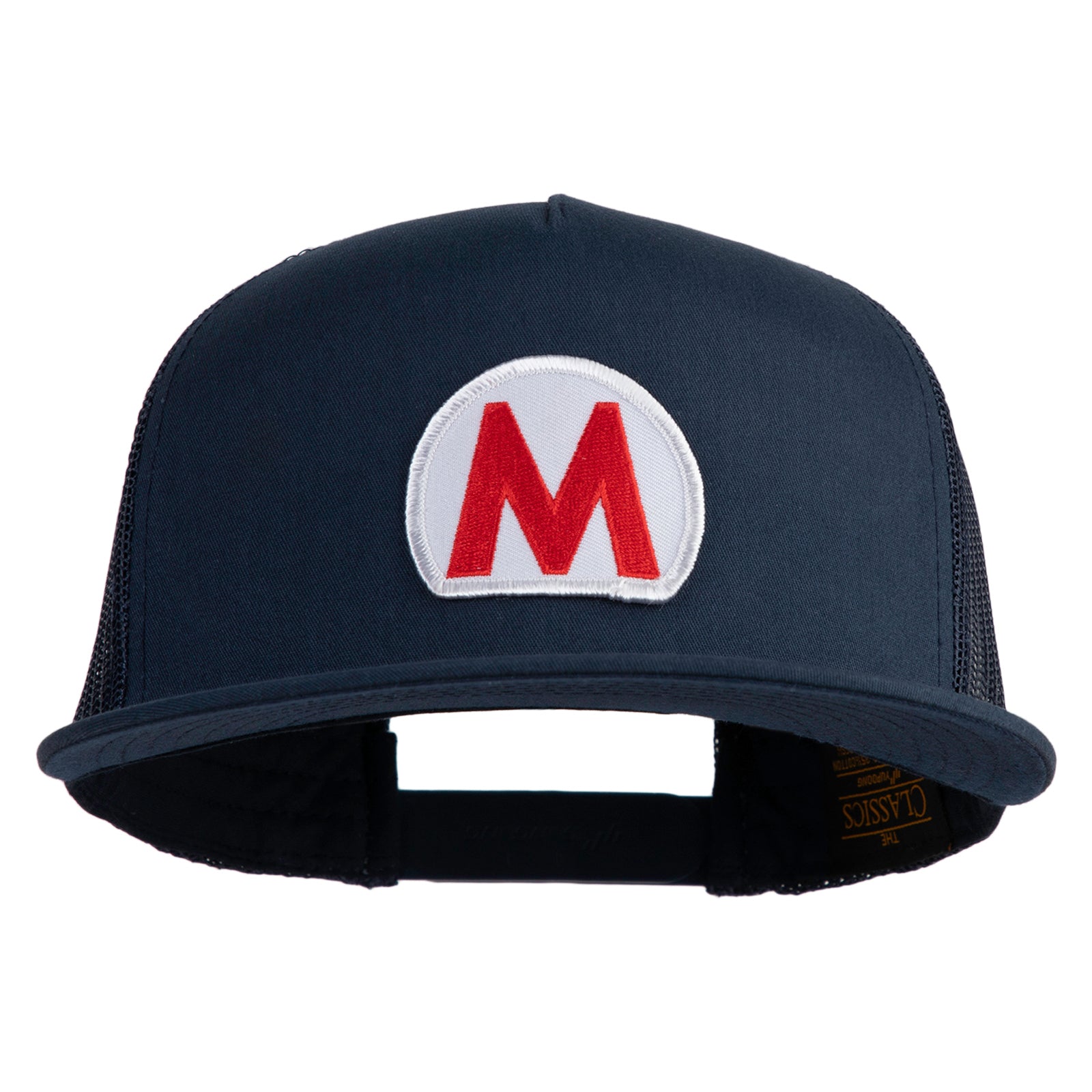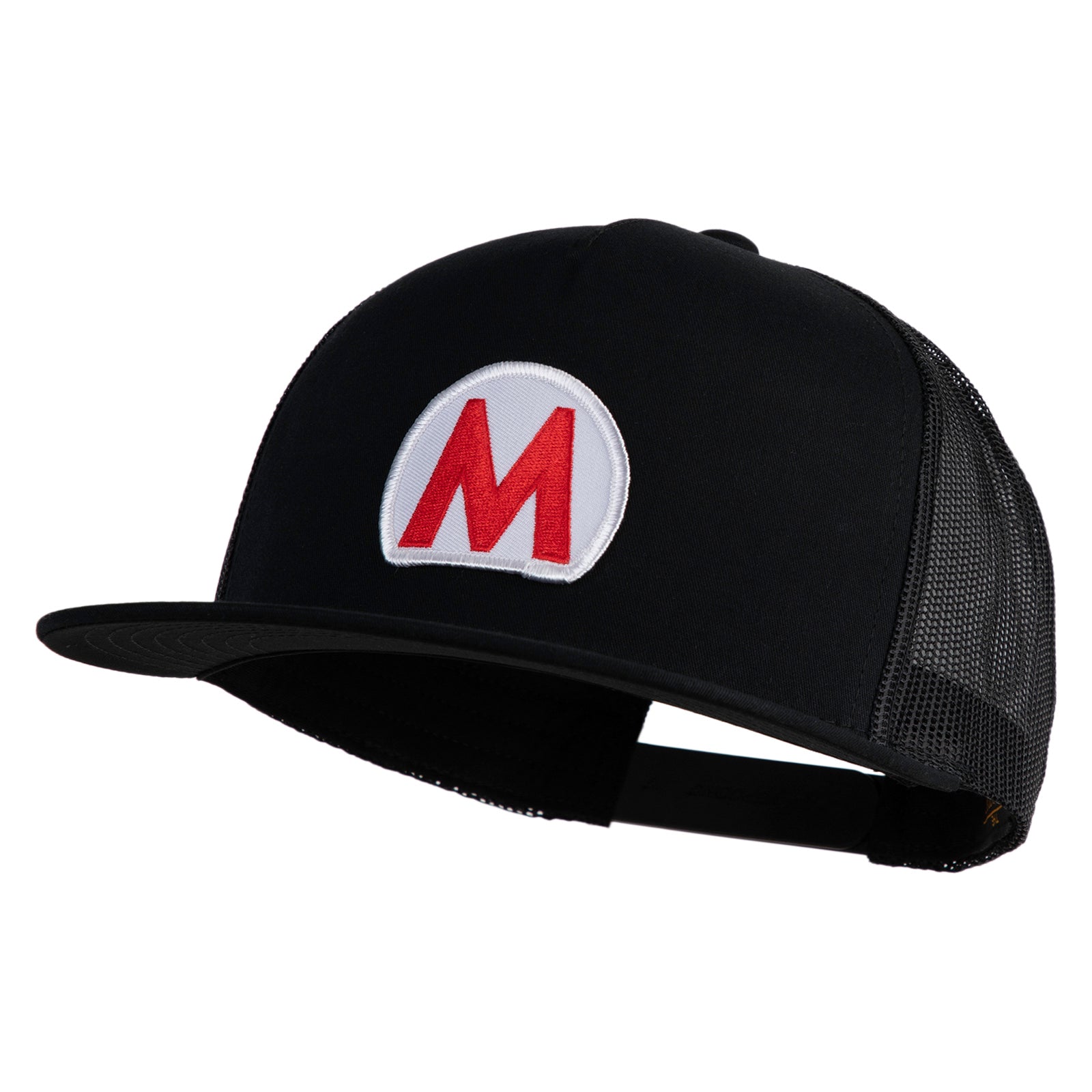 Mario World Logo Circle Patched 5 Panel Mesh Trucker Snapback Cap
