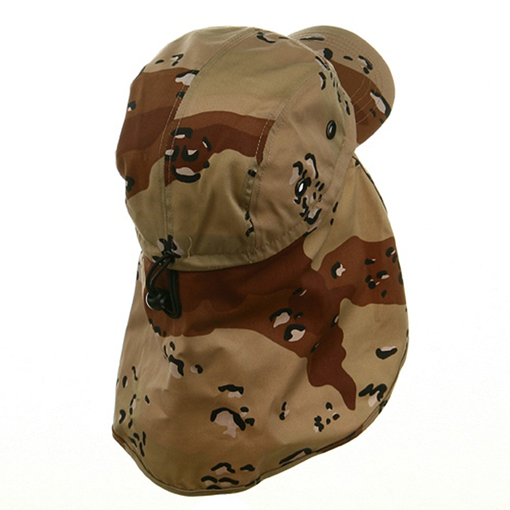 Design Features, The crown features 5 Panels, with an attached 7 1/2" long fabric flap.