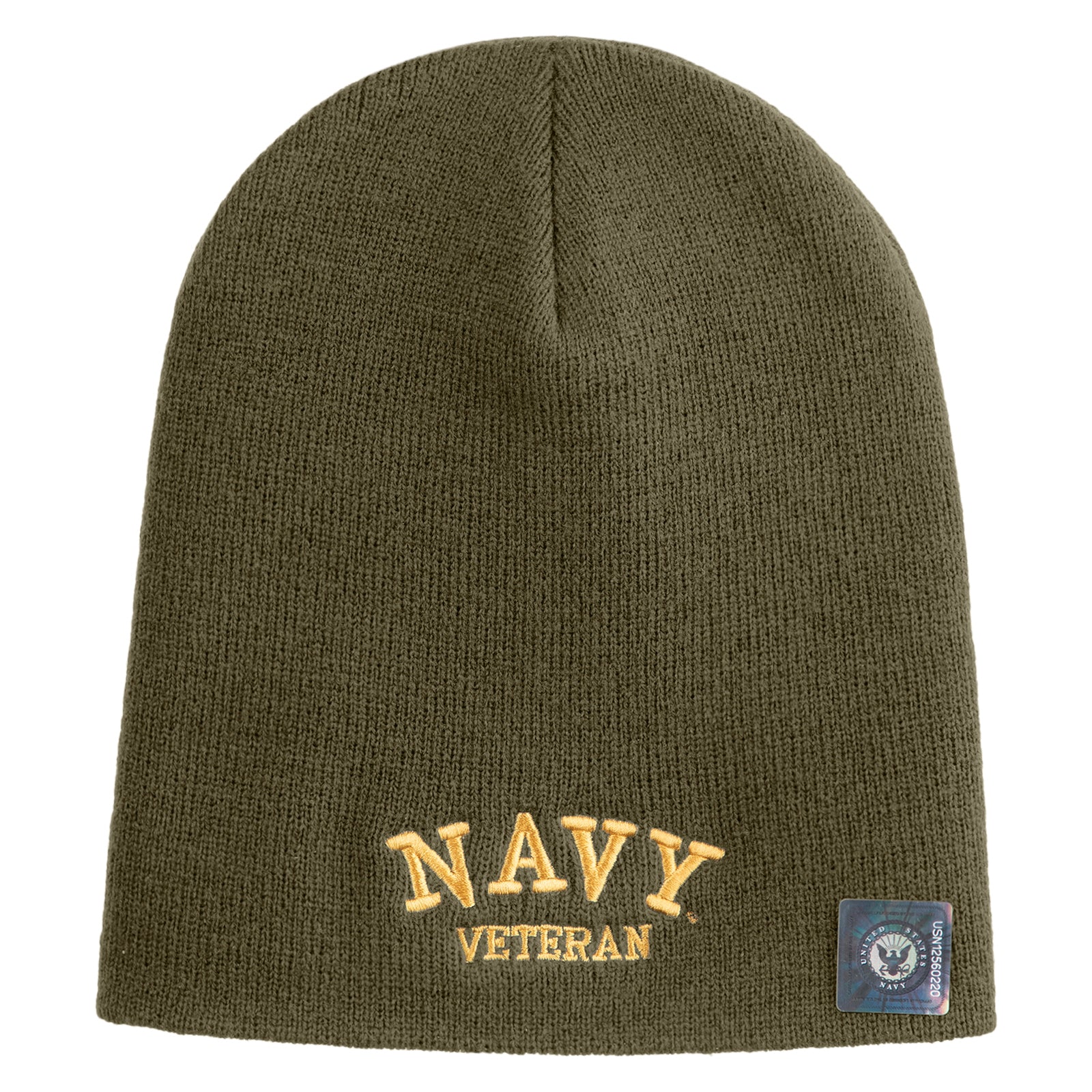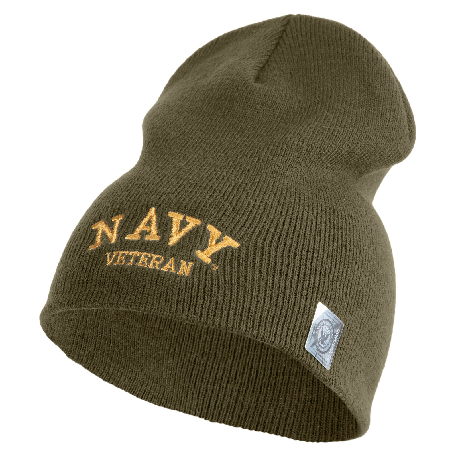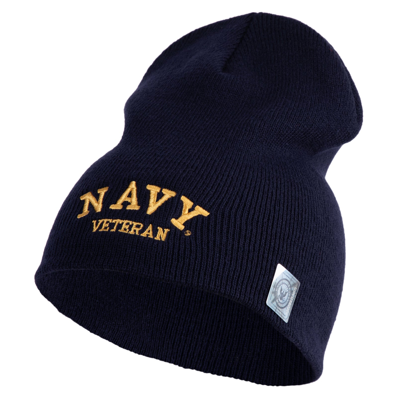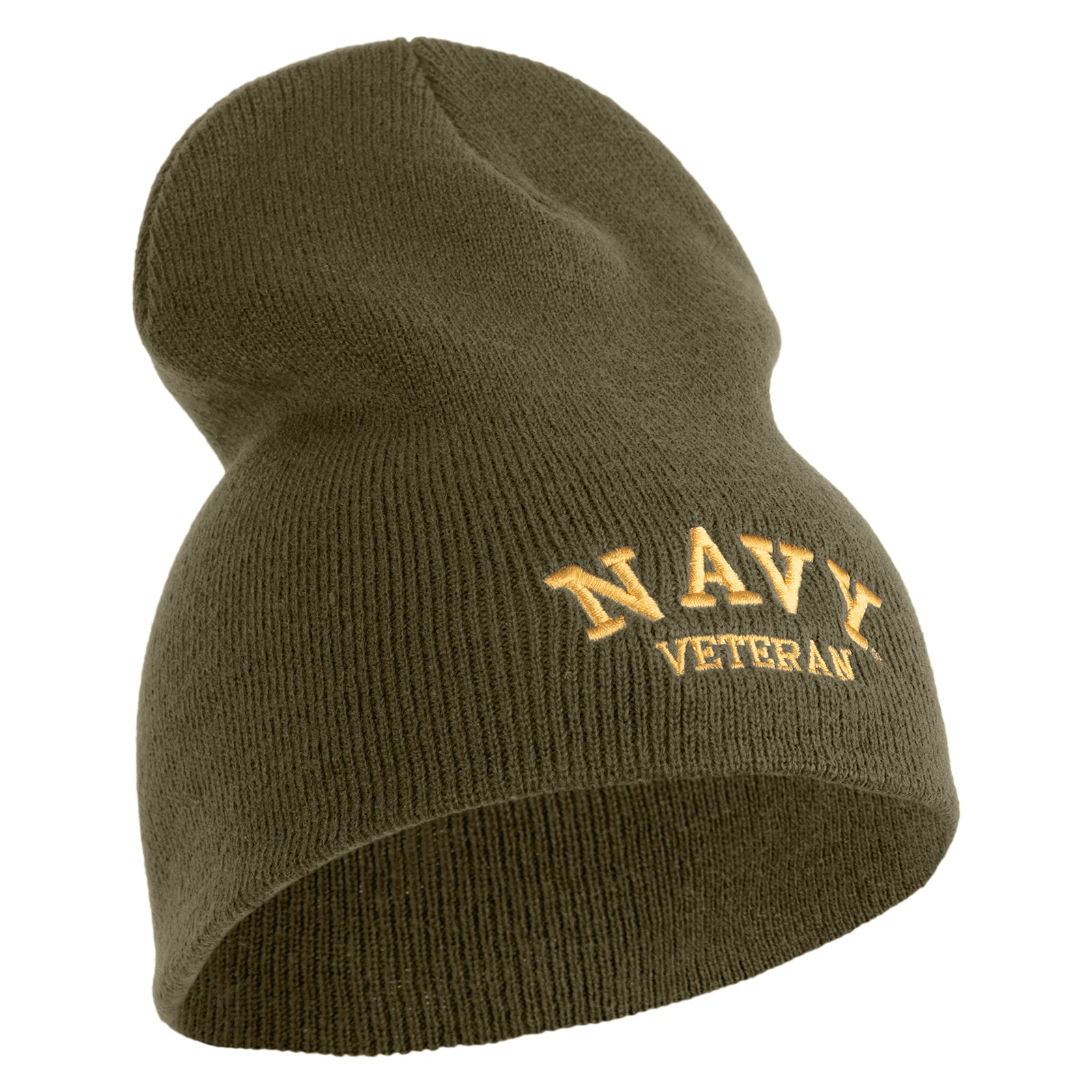 Navy Veteran Letters Symbol Embroidered Heavyweight Classic Knit YP Short Beanie