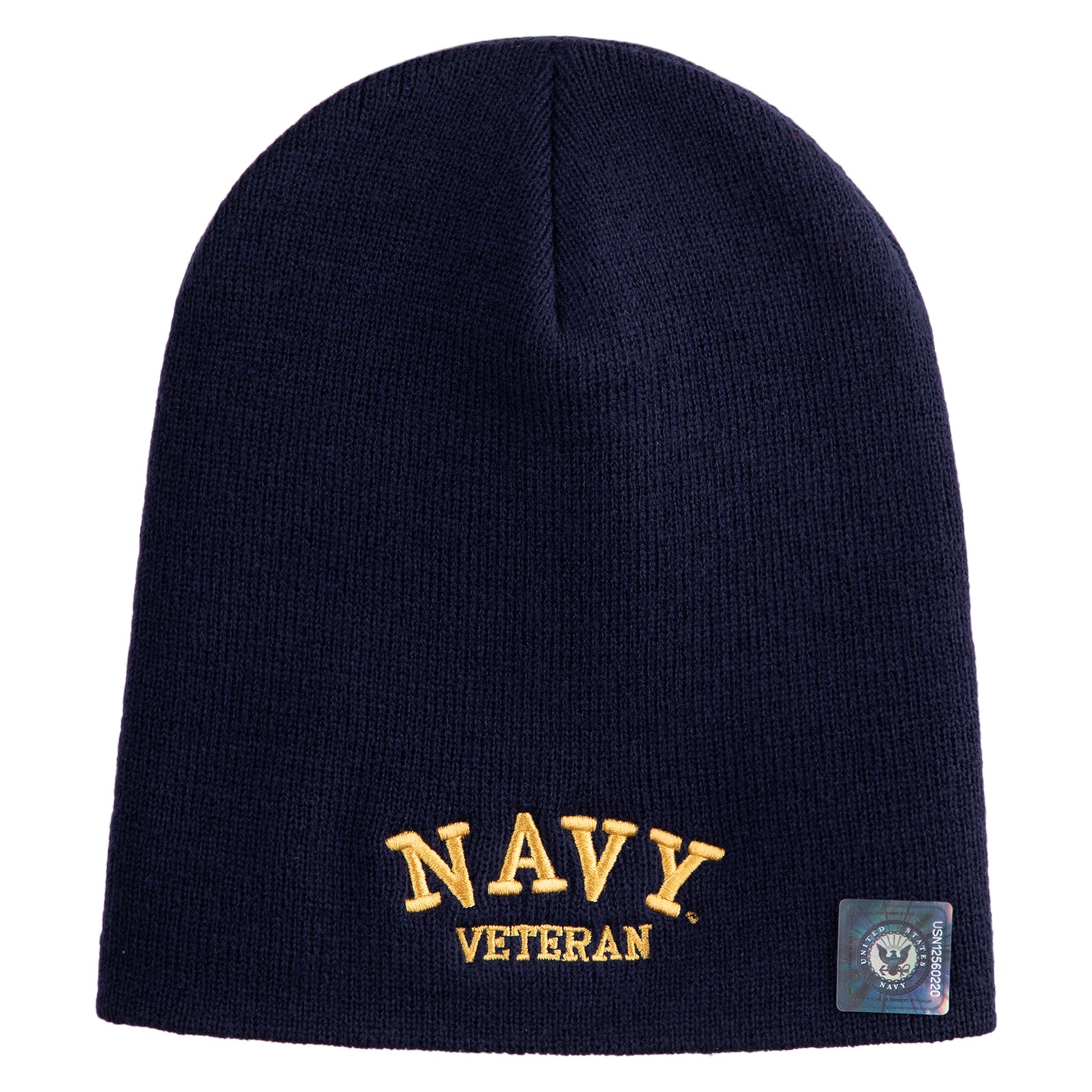 Title, Navy Veteran Letters Symbol Embroidered Heavyweight Classic Knit YP Short Beanie