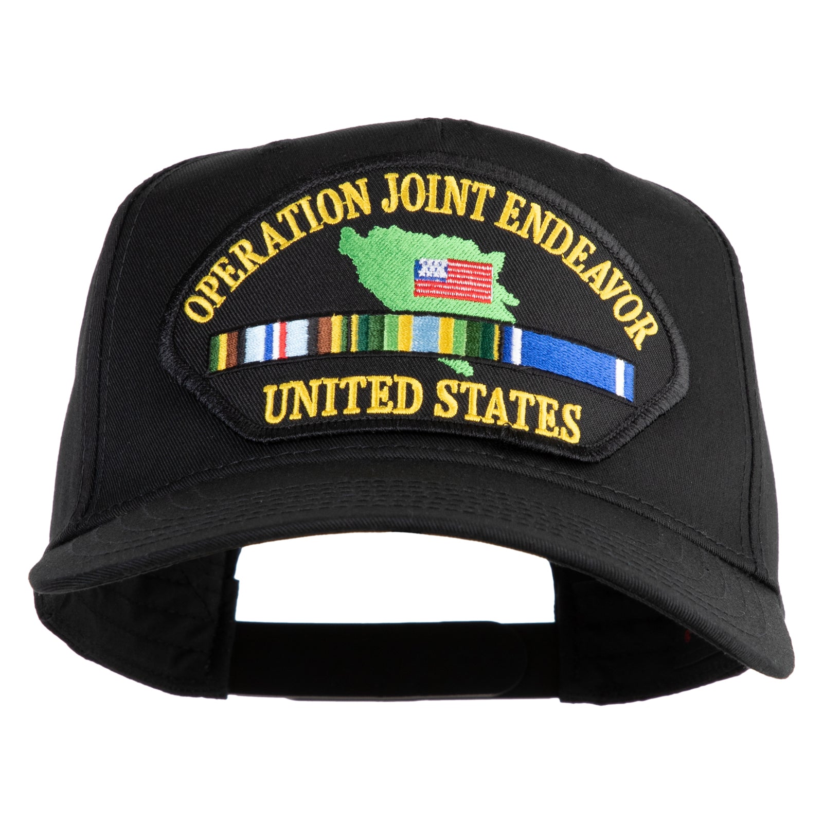 Operation Joint Endeavor United States Patched Solid Cotton Twill 5 Panel Prostyle Snap Cap - Black OSFM