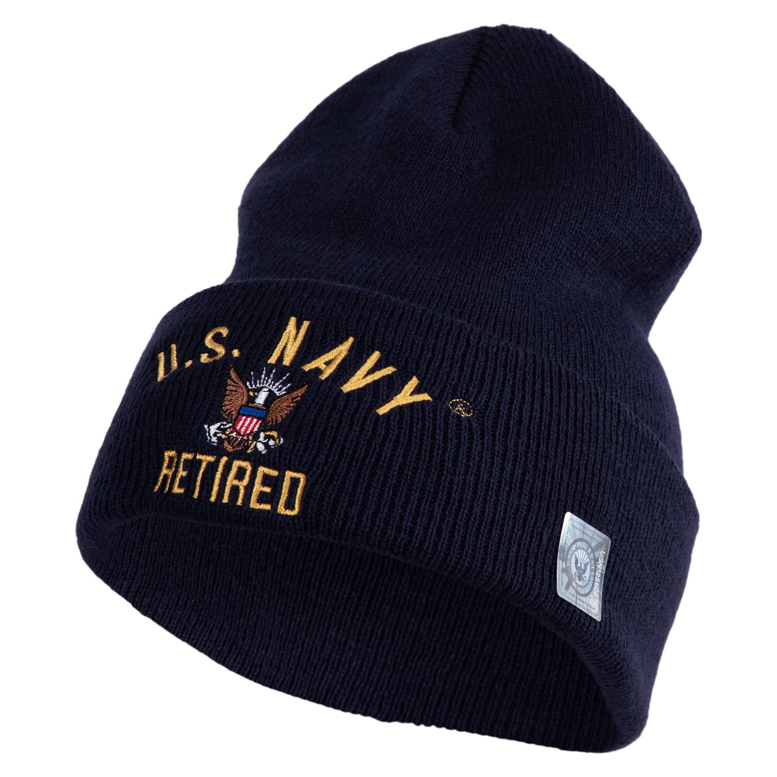 US Navy Retired Military Embroidered 12 inch Cuffed Knit Long Beanie - Navy OSFM