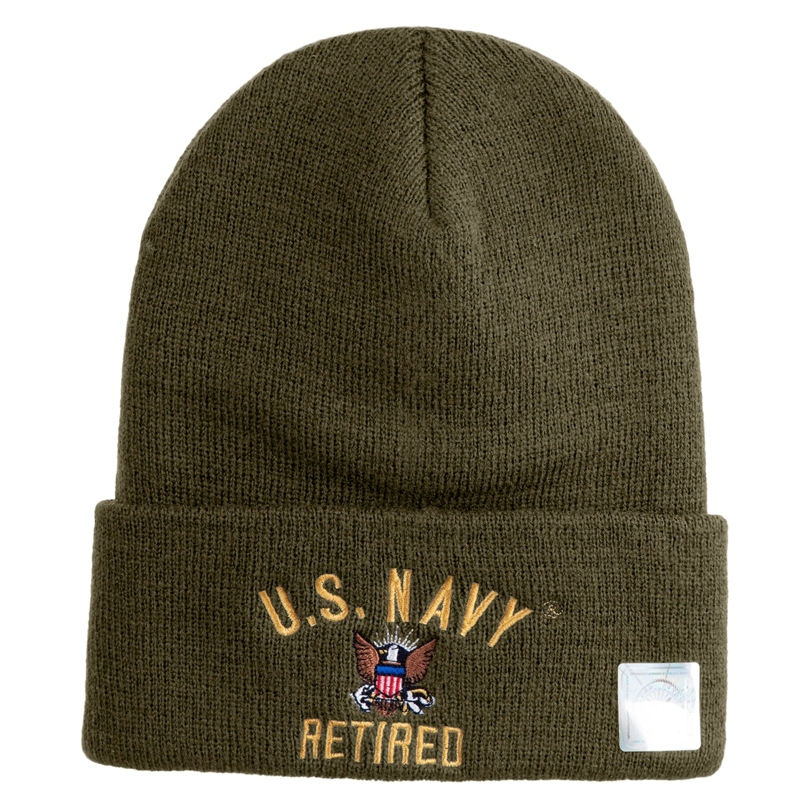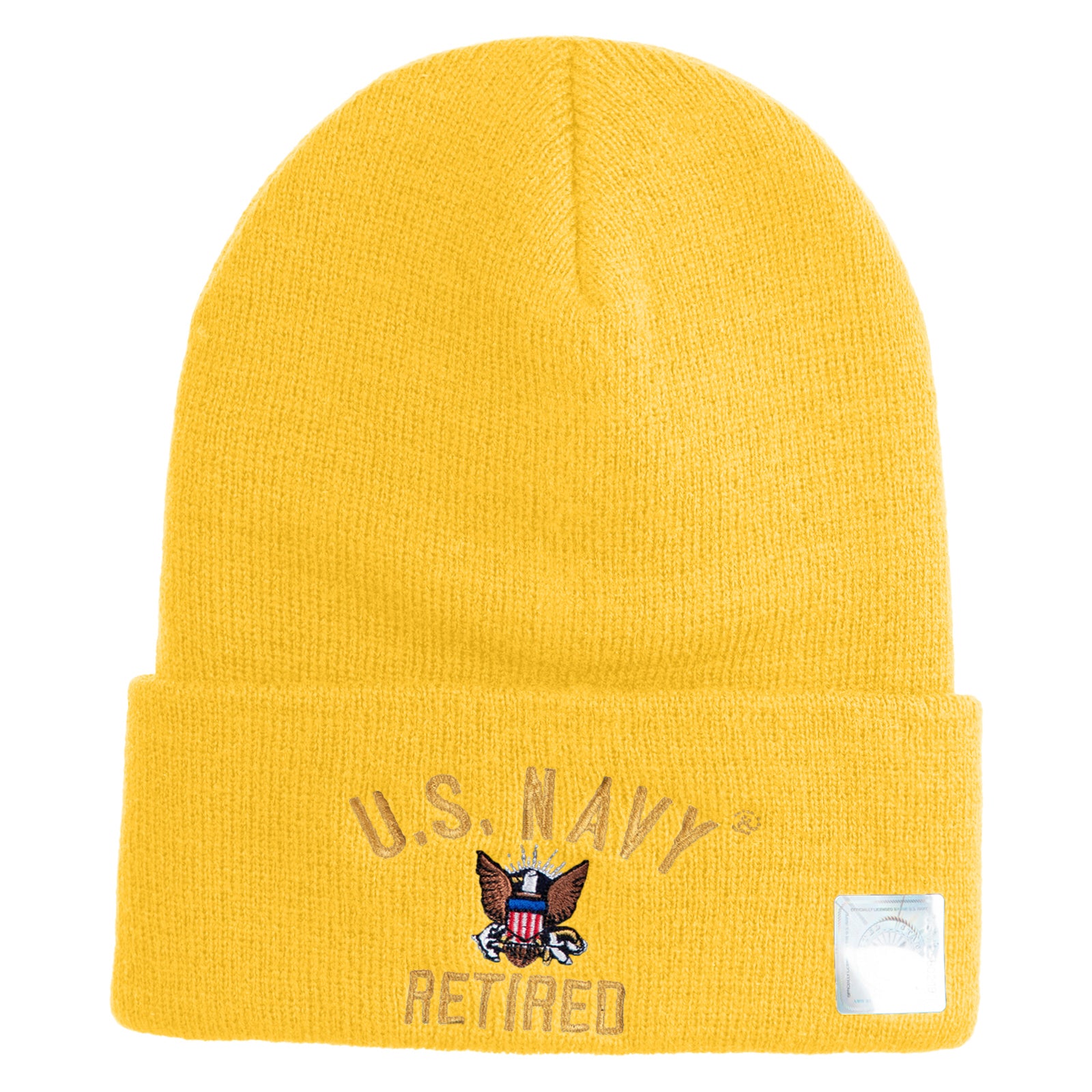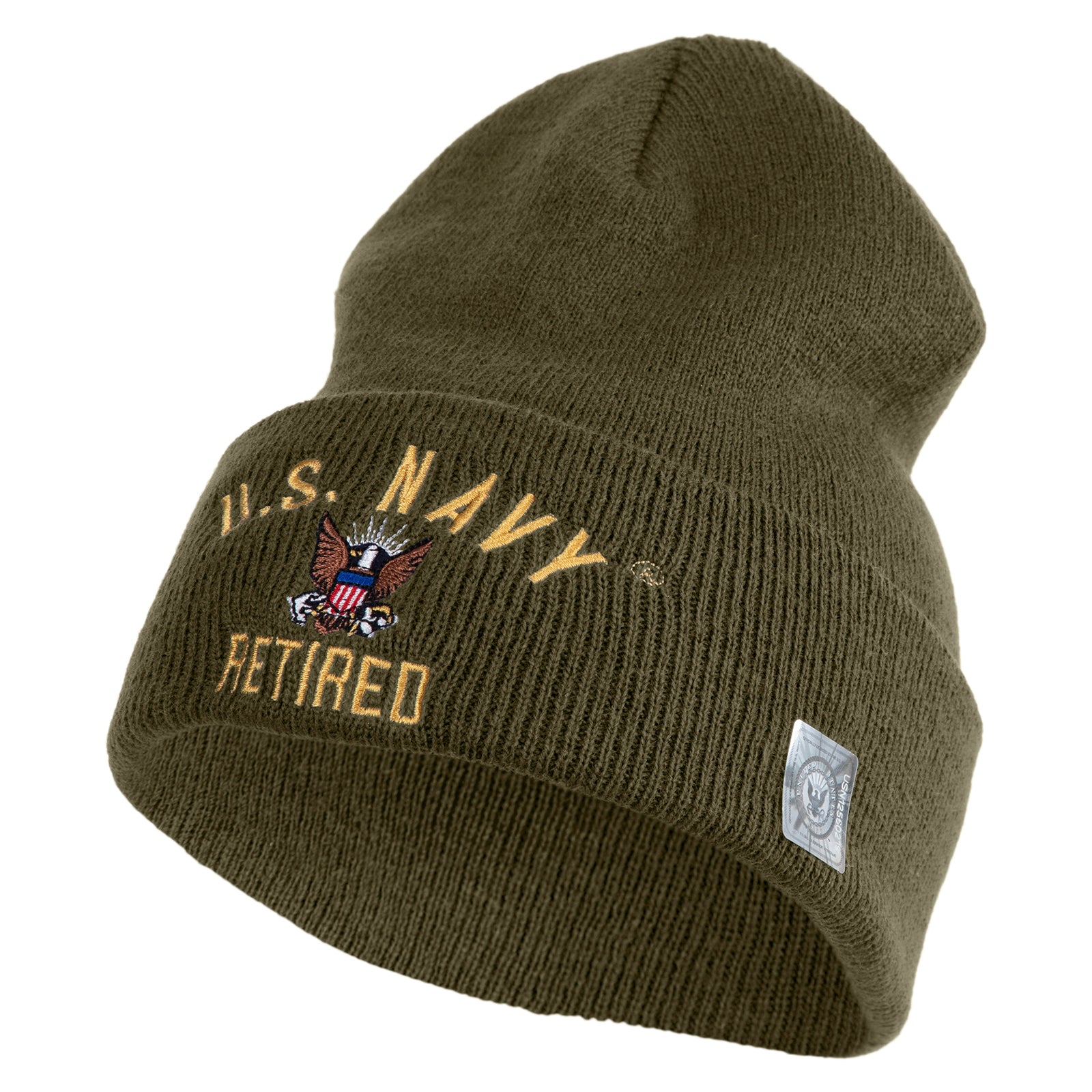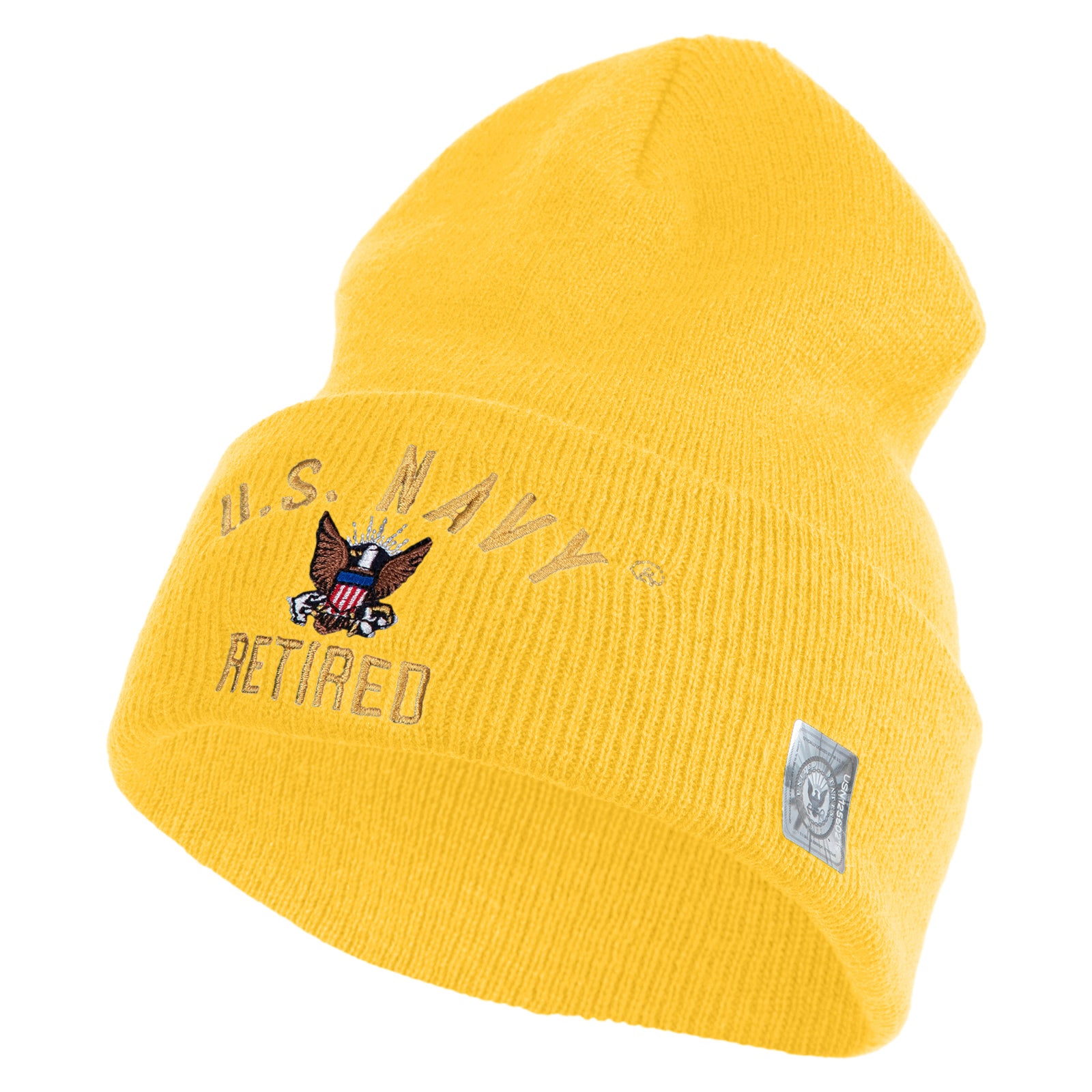 Title, US Navy Retired Military Embroidered 12 inch Cuffed Knit YP Long Beanie