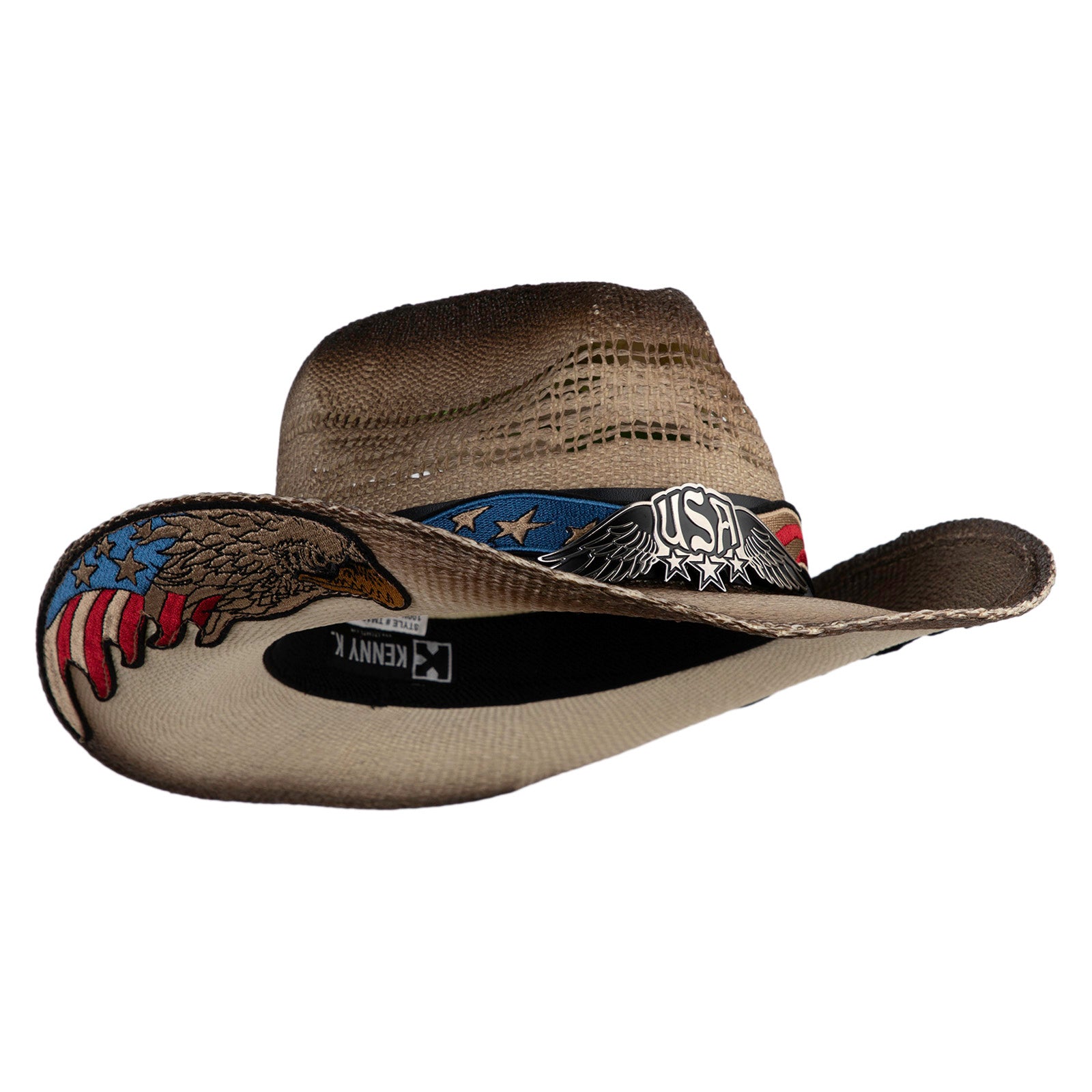 UPF 50+ Western Style USA Wing Hat with Embroidered Bald Eagle - USA-Eagle-Flag S