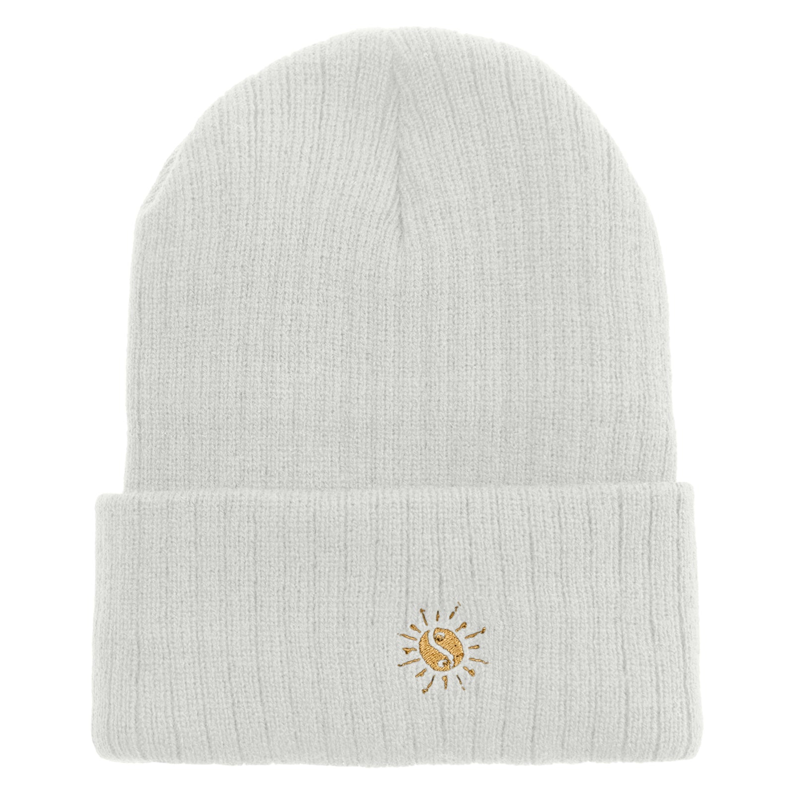 Product Origin, Made in USA China Ying Yang Symbol Embroidered Heavy Ribbed Cuff Beanie