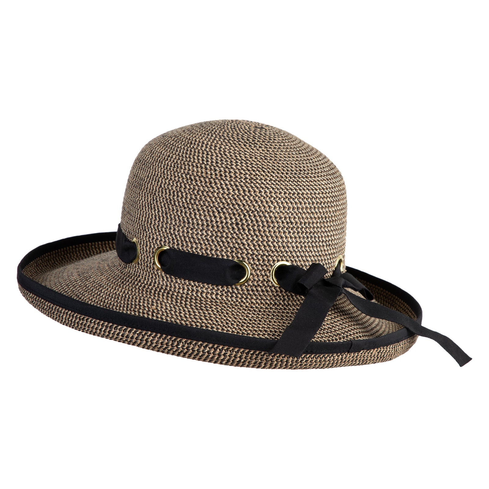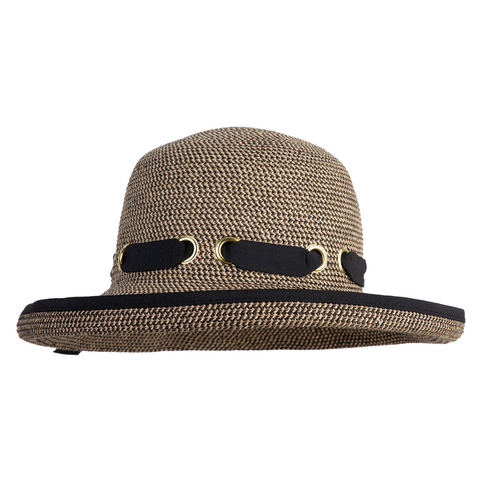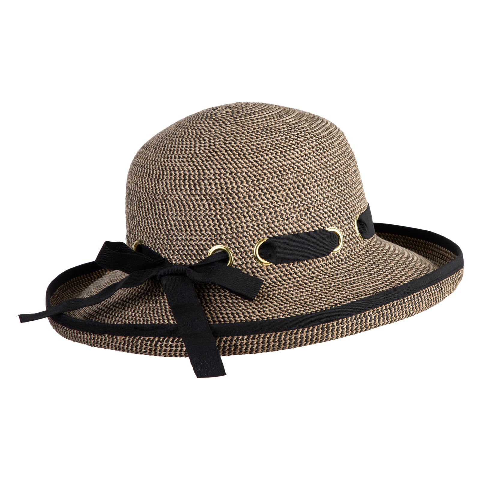UPF 50+ Women's Braid Gromet Tie Roll Up Brim Hat - Black Tweed OSFM