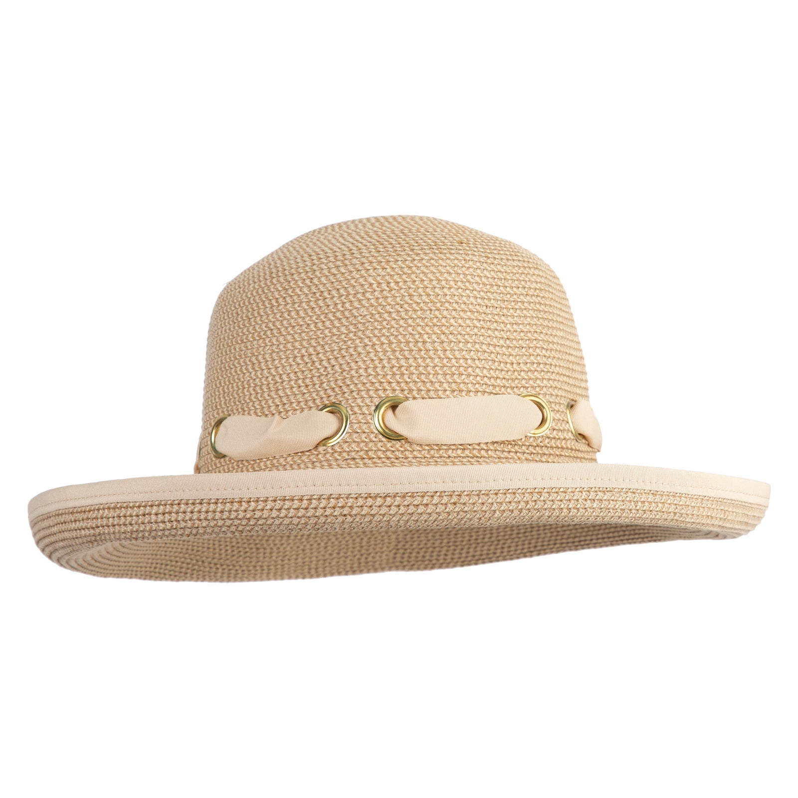 Title, UPF 50+ Women's Braid Gromet Tie Roll Up Brim Hat