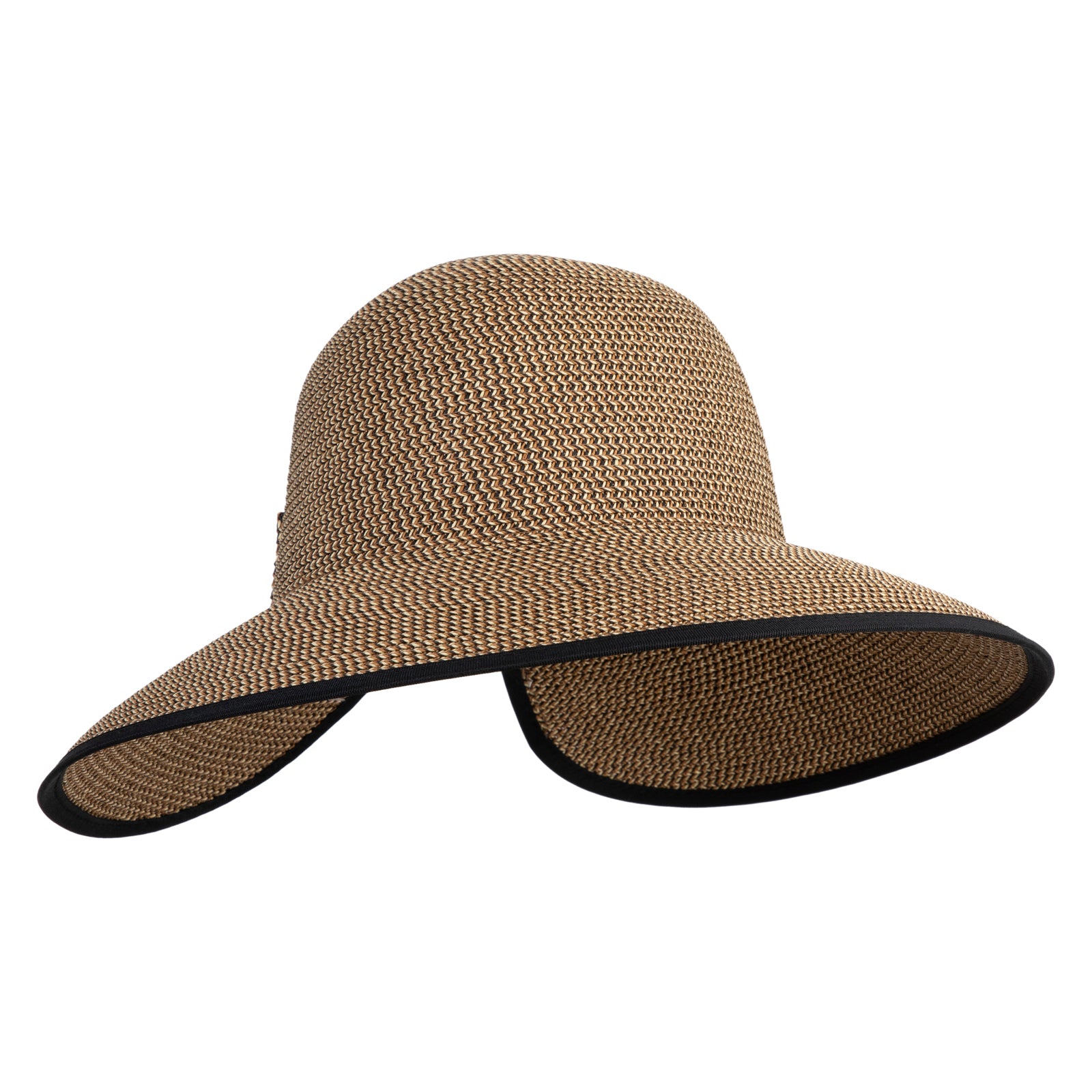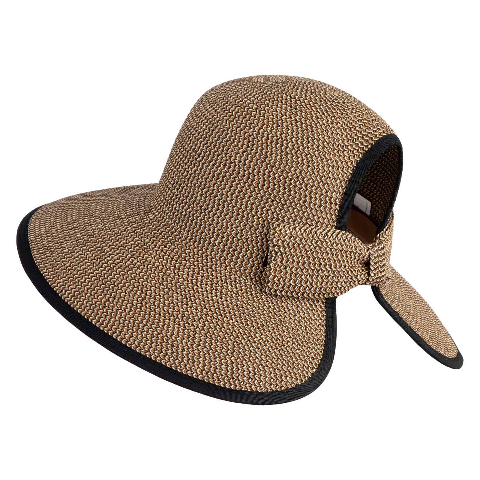 UPF 50+ Women's Open Back 3.5" Wide Brim Hat - Black Tweed OSFM