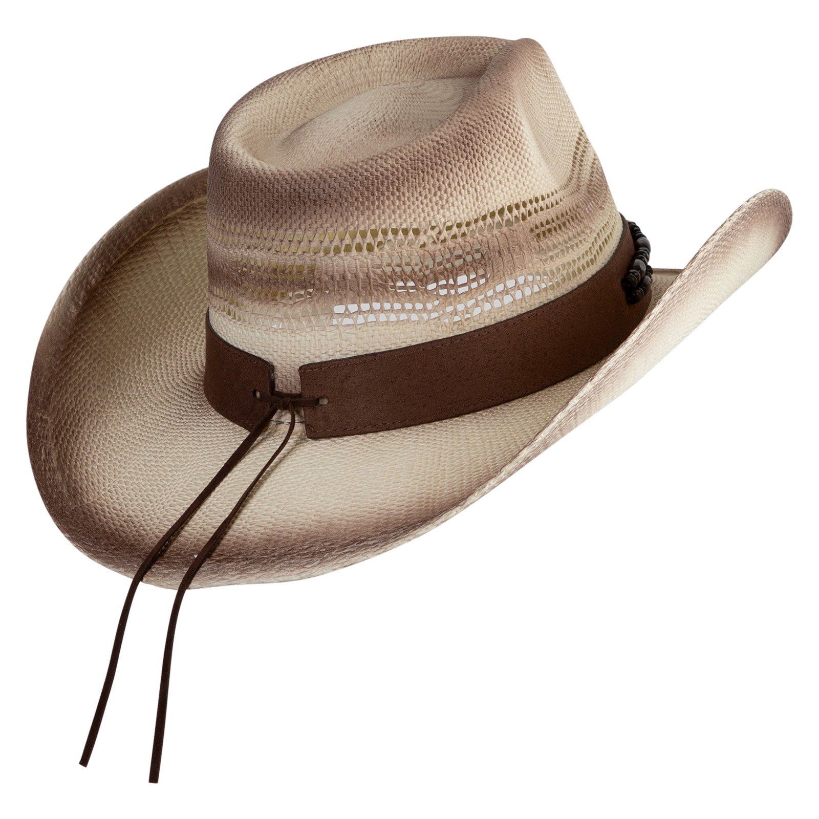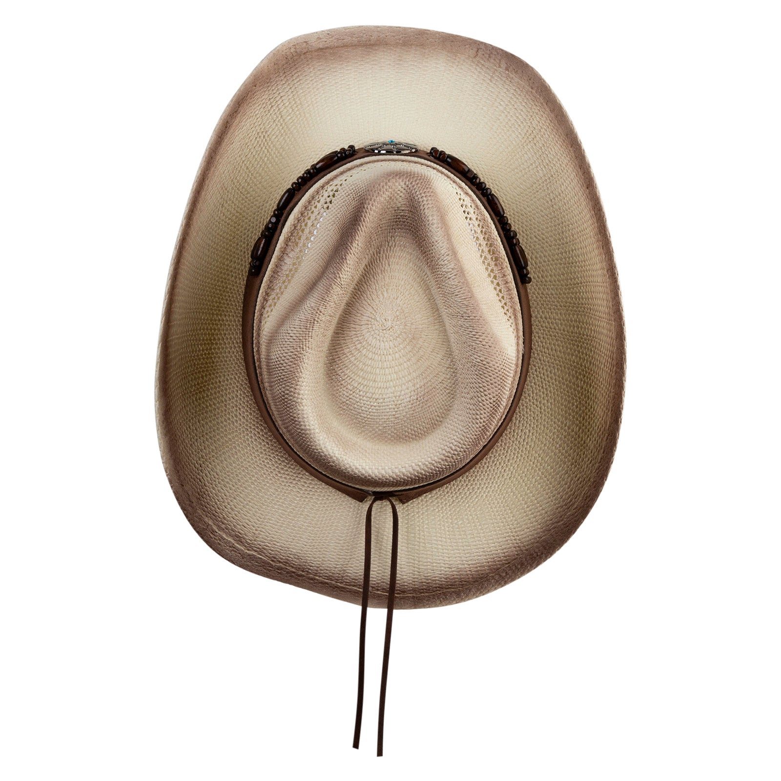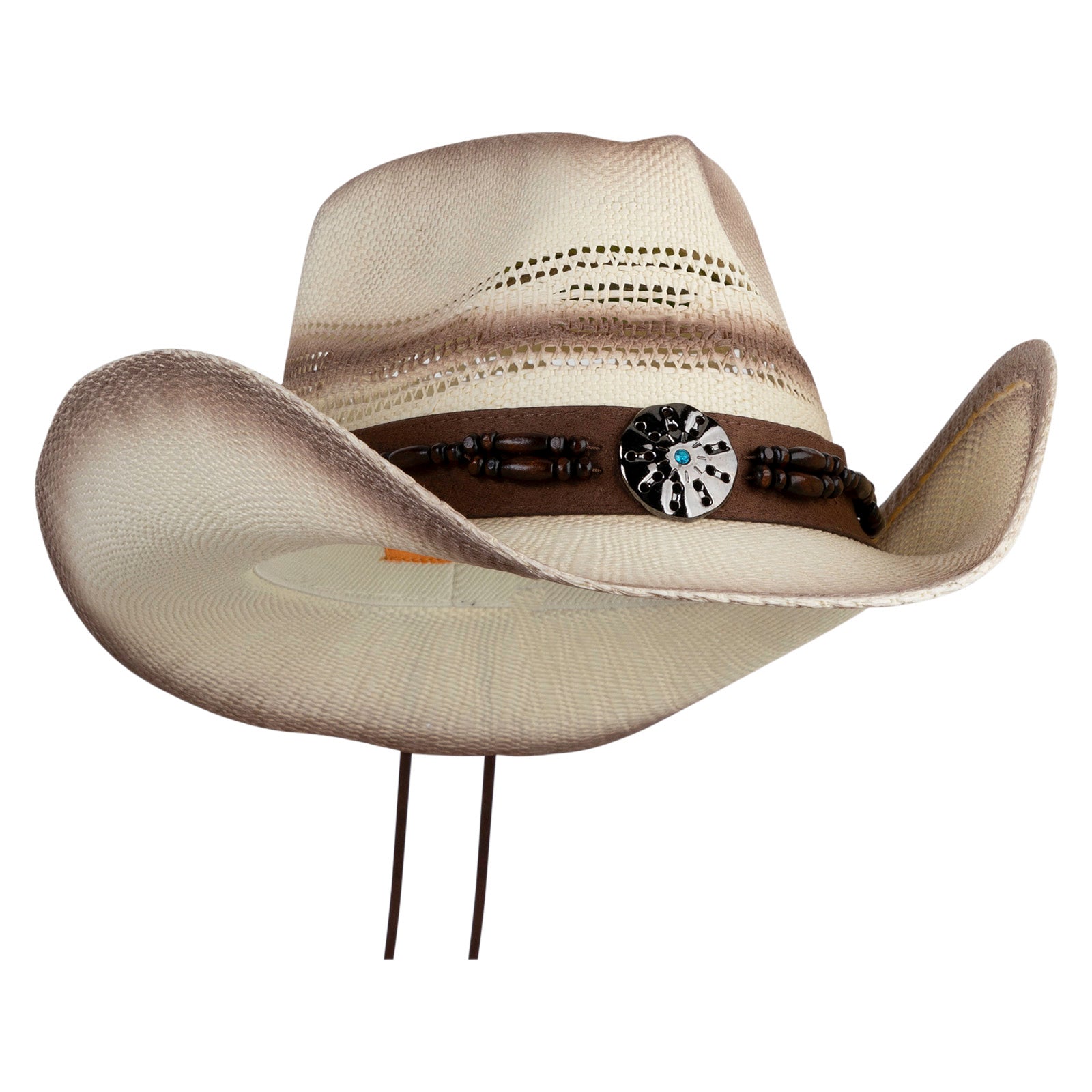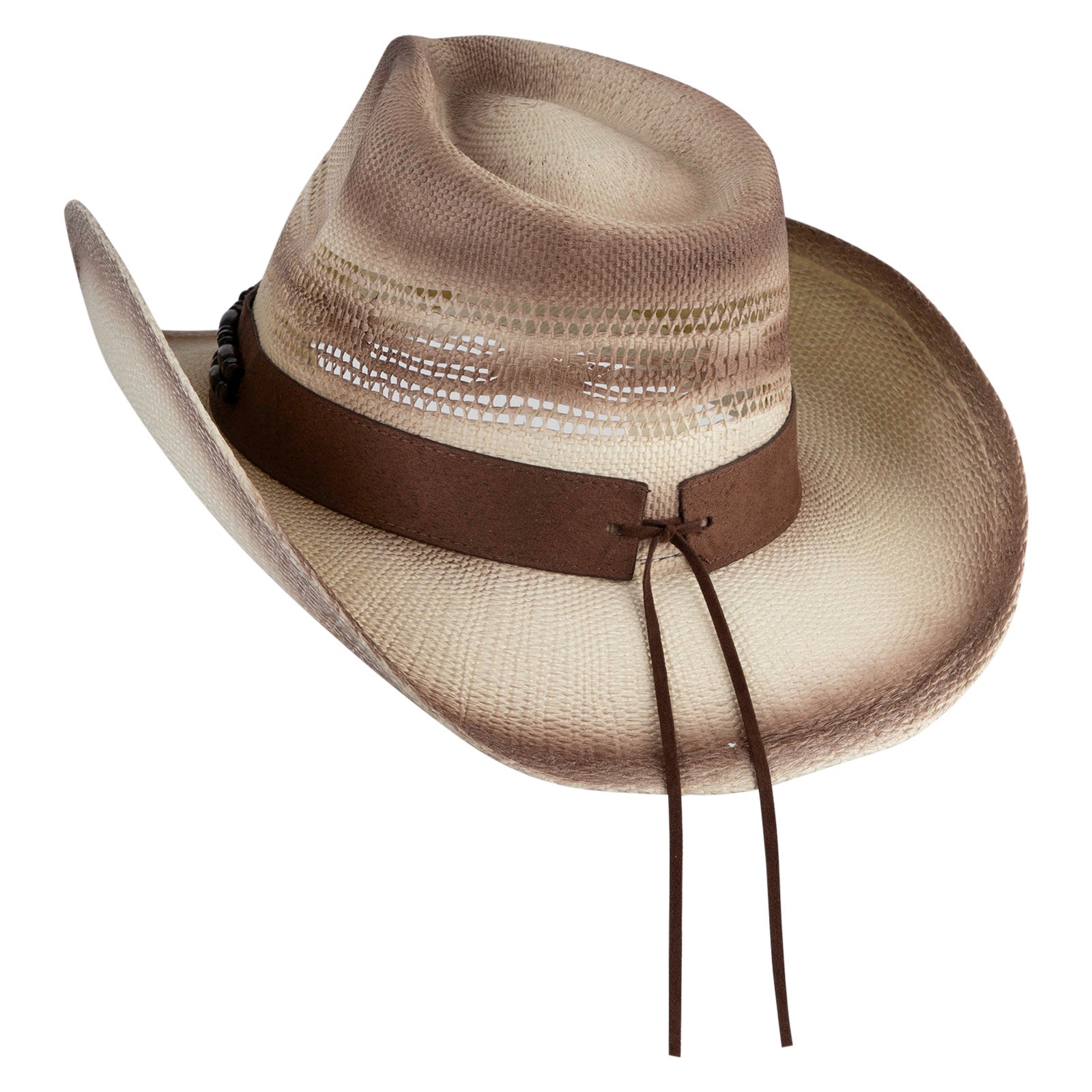 UPF 50+ Natural Straw Stained Cowboy Hat with Wood Bead Band
