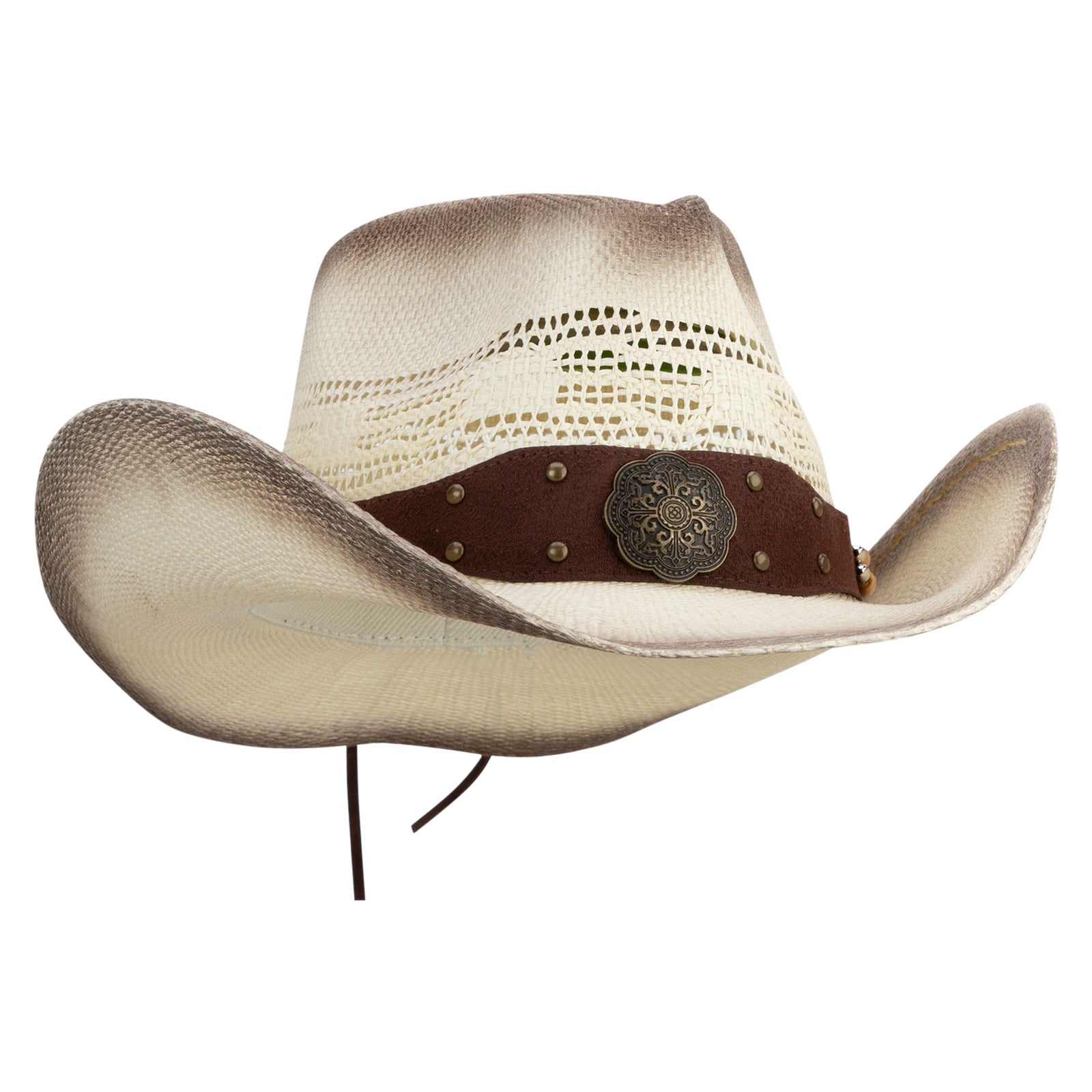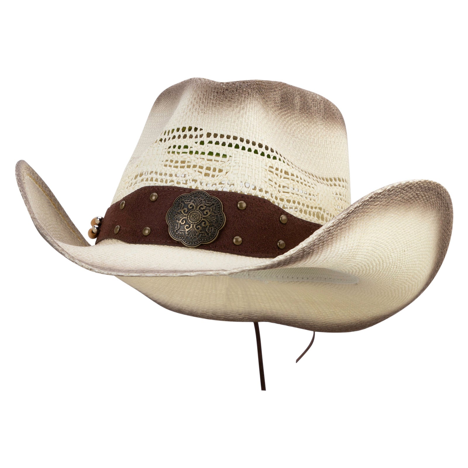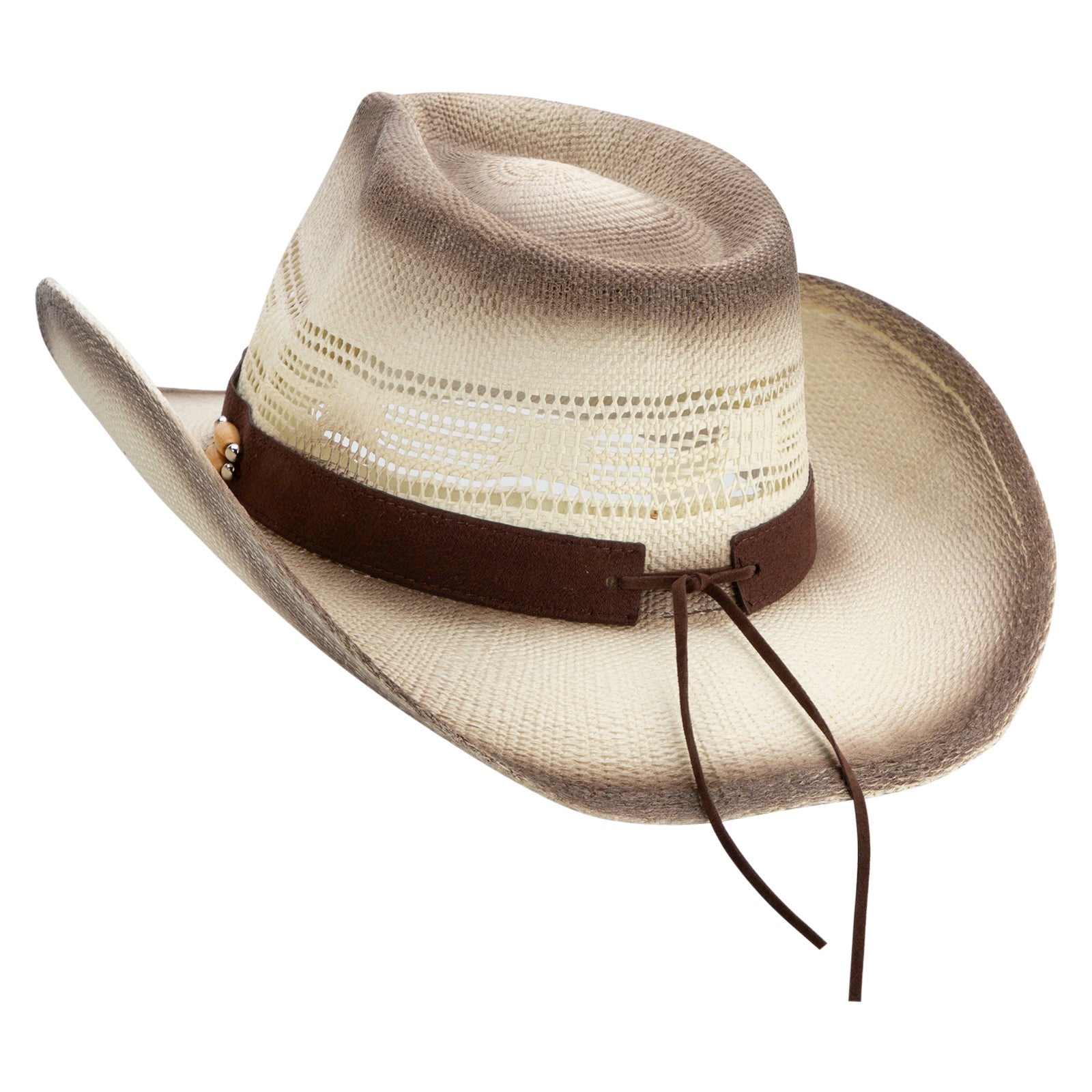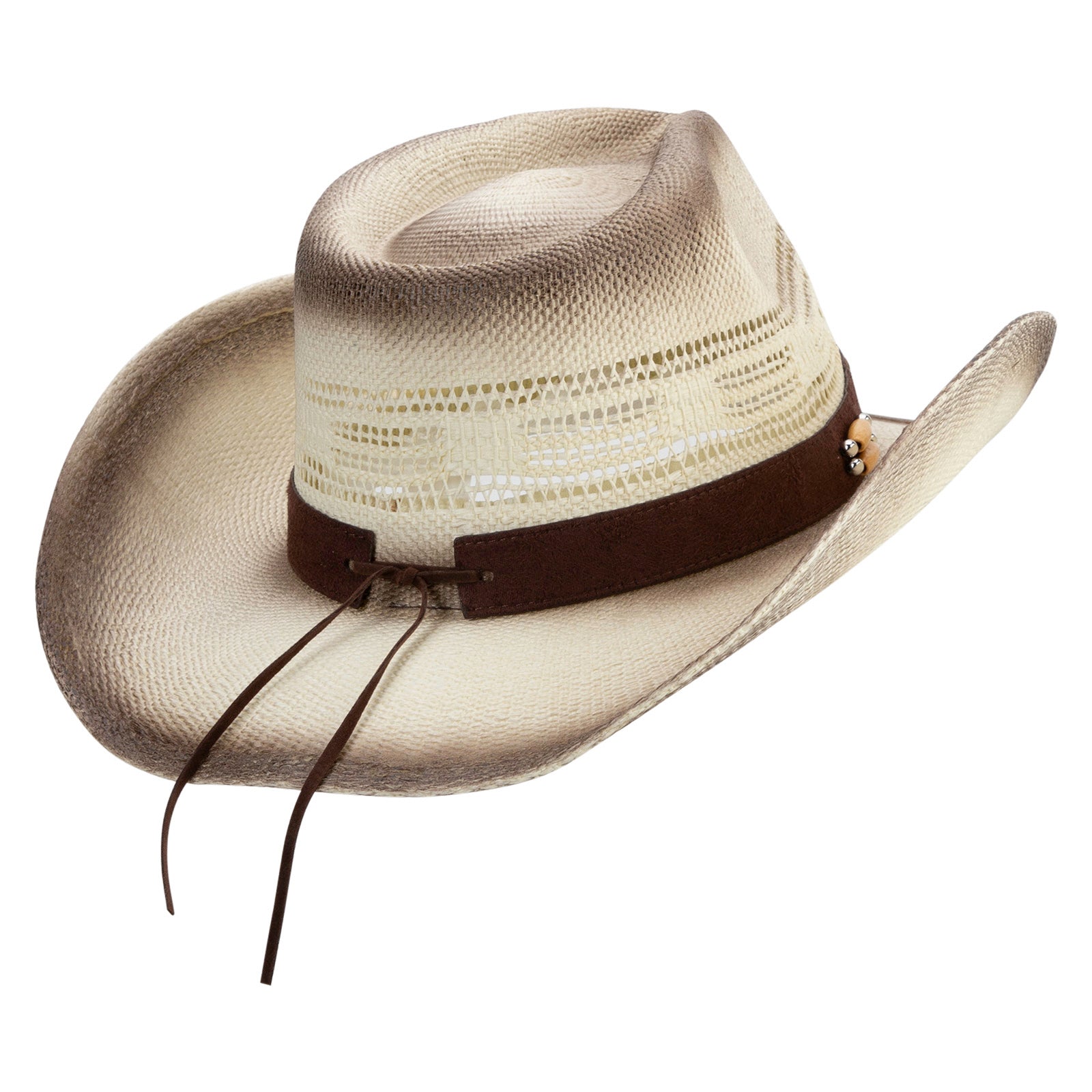 UPF 50+ Natural Straw Stained Cowboy Hat with Wood Bead Band
