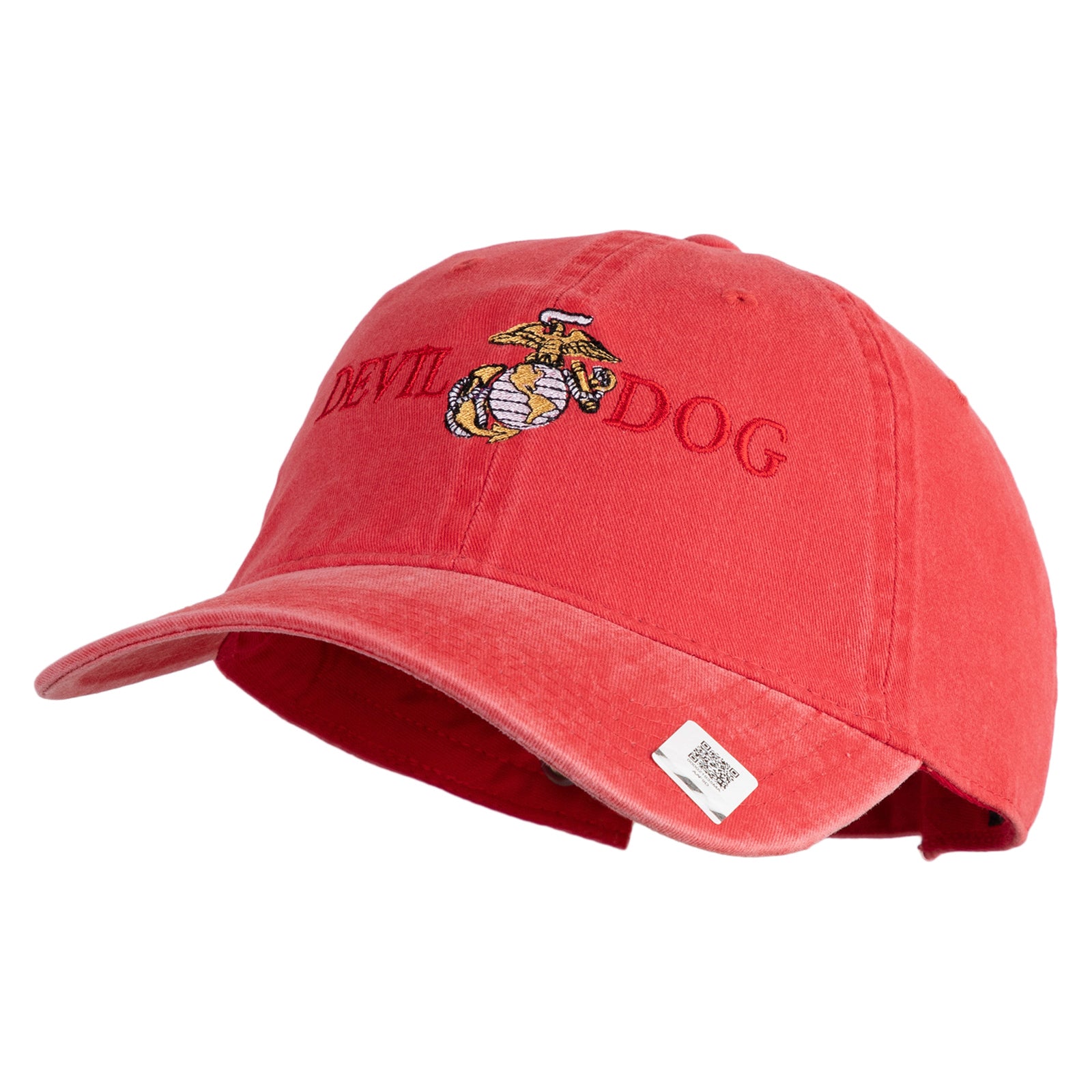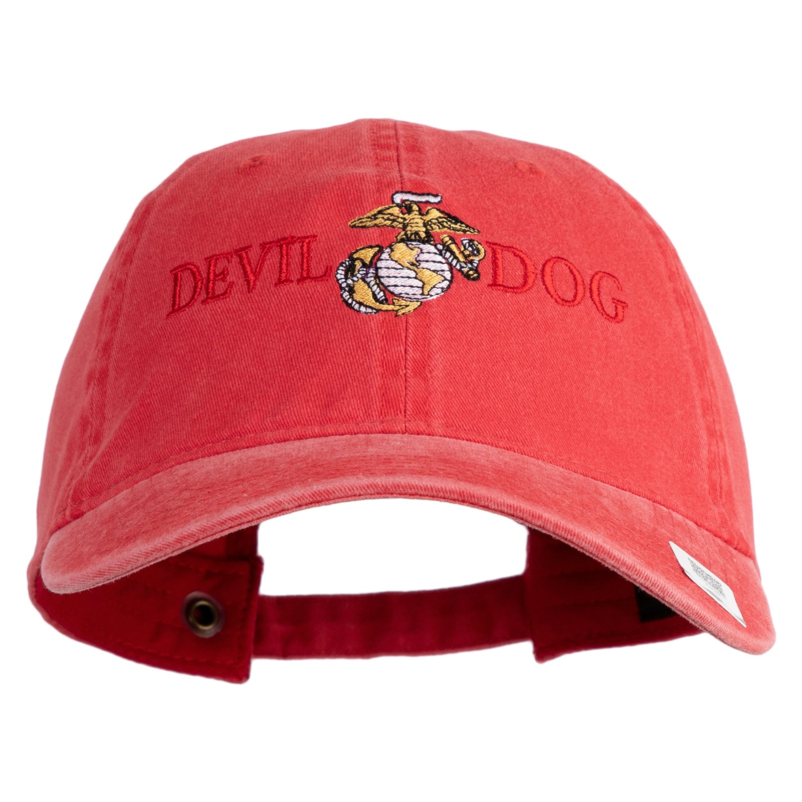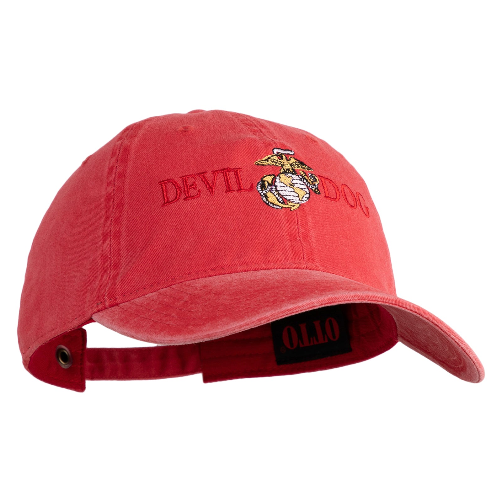 Devil Dog Embroidered Washed Solid Pigment Dyed Cotton Twill Brass Buckle Cap - Red OSFM