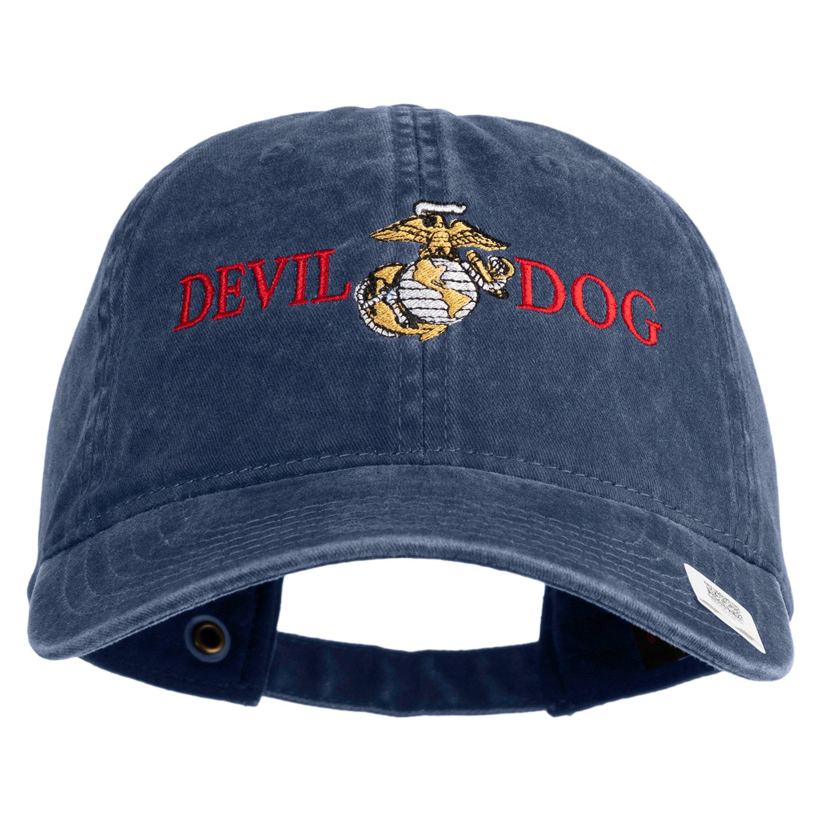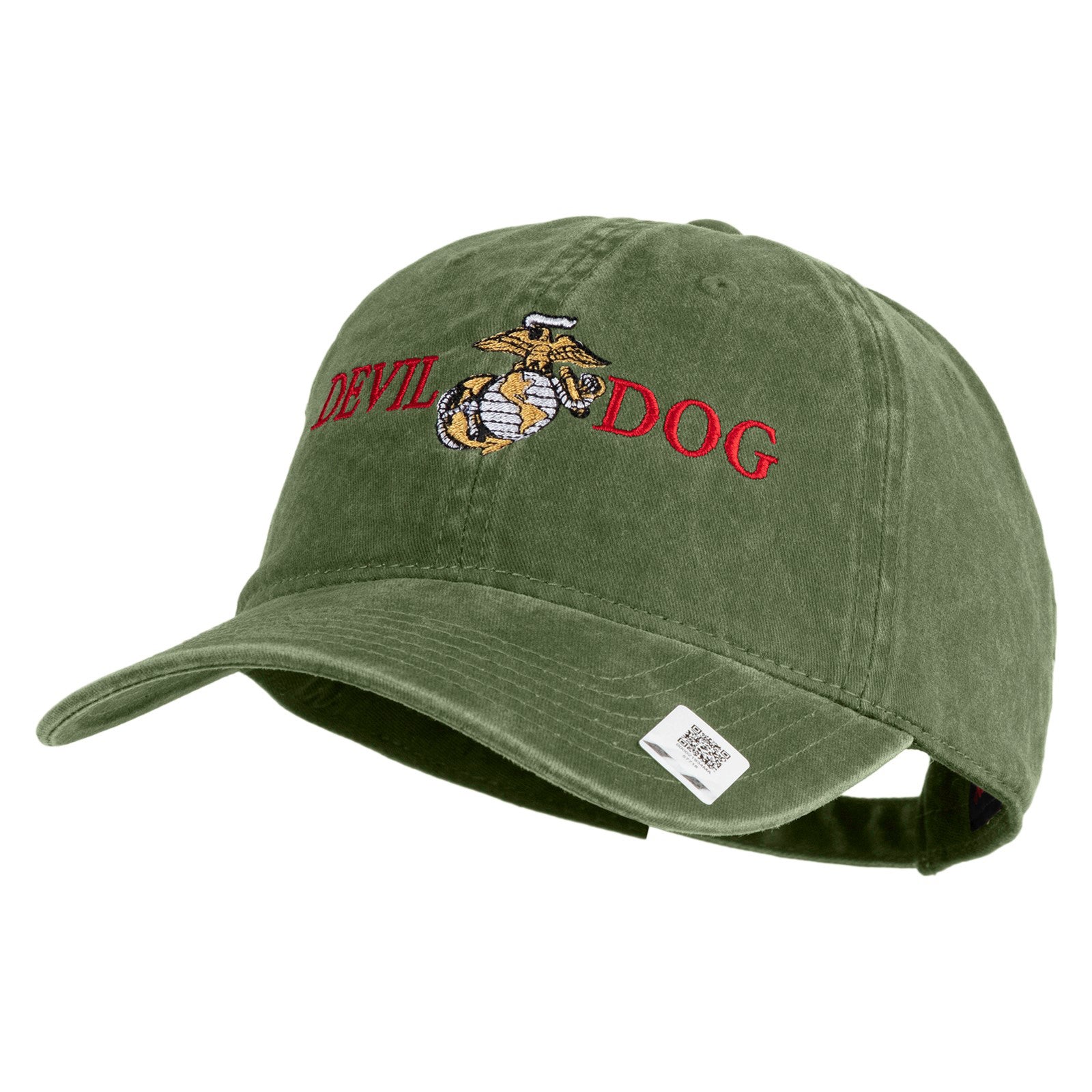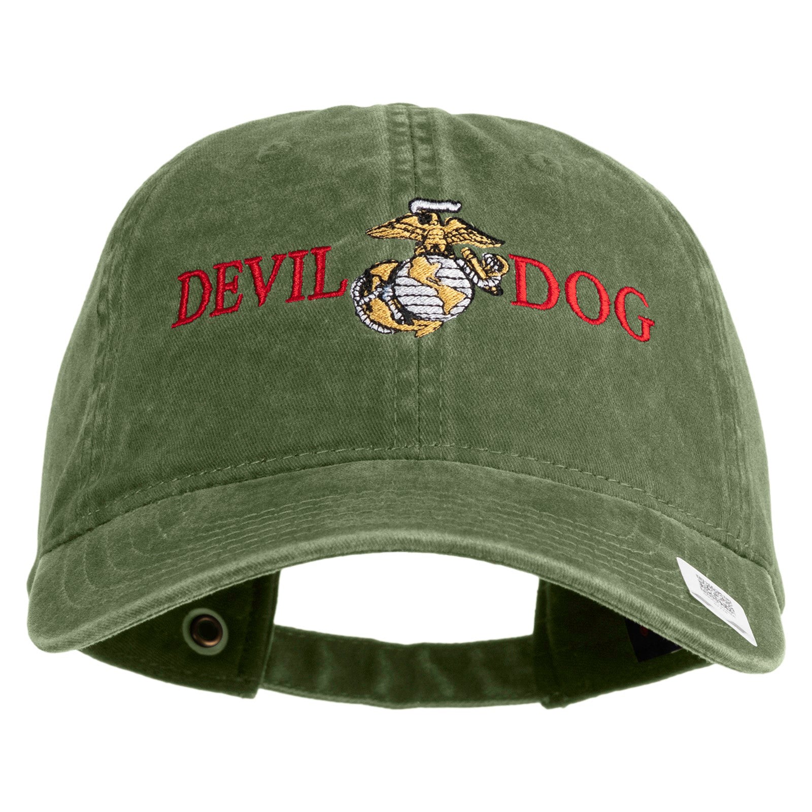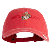 Devil Dog Embroidered Washed Solid Pigment Dyed Cotton Twill Brass Buckle Cap