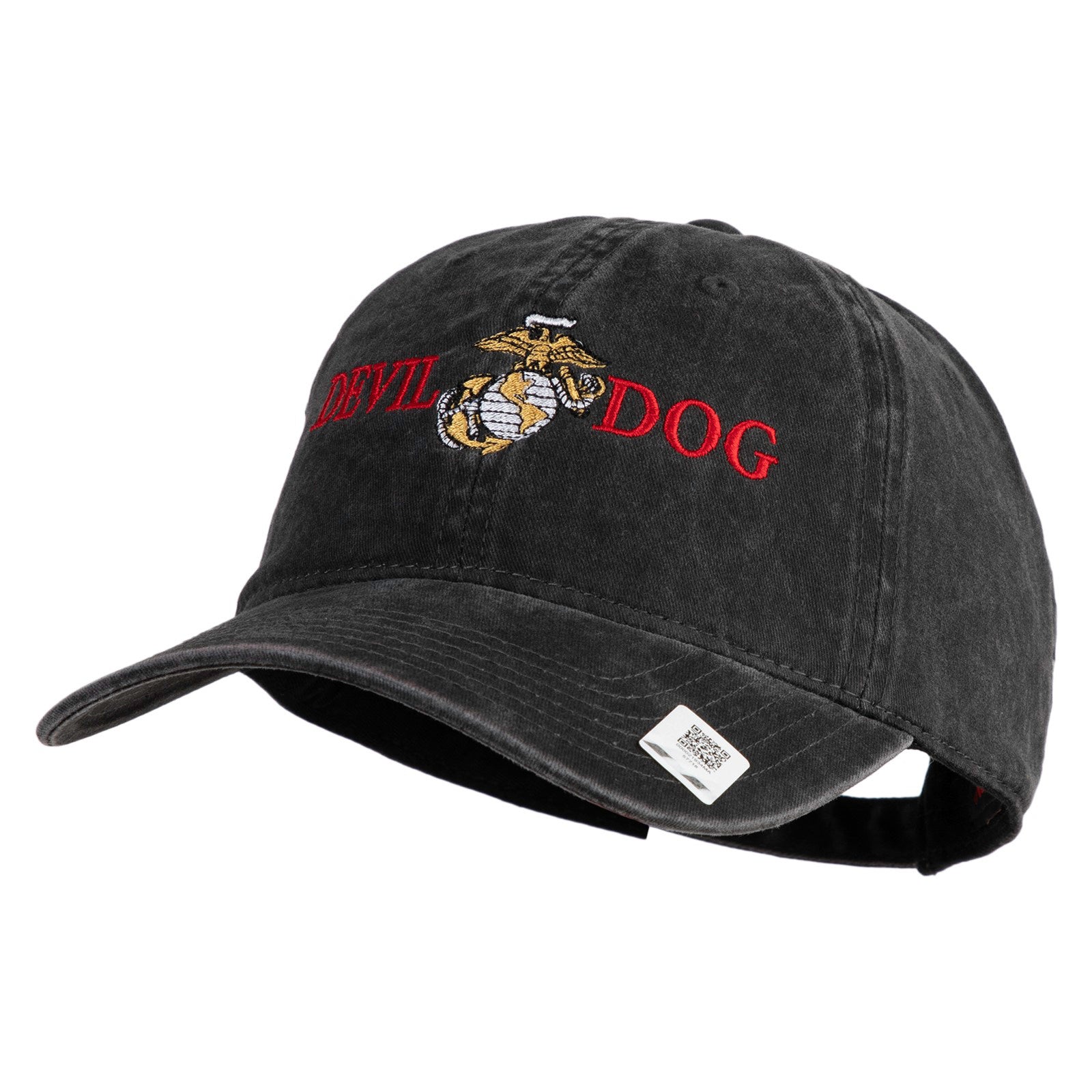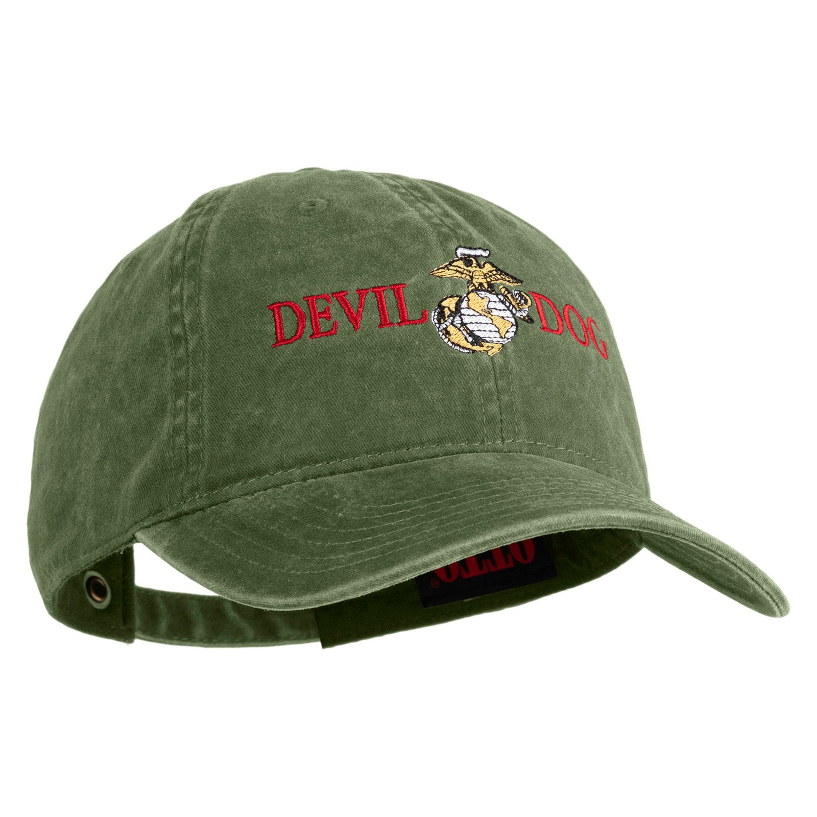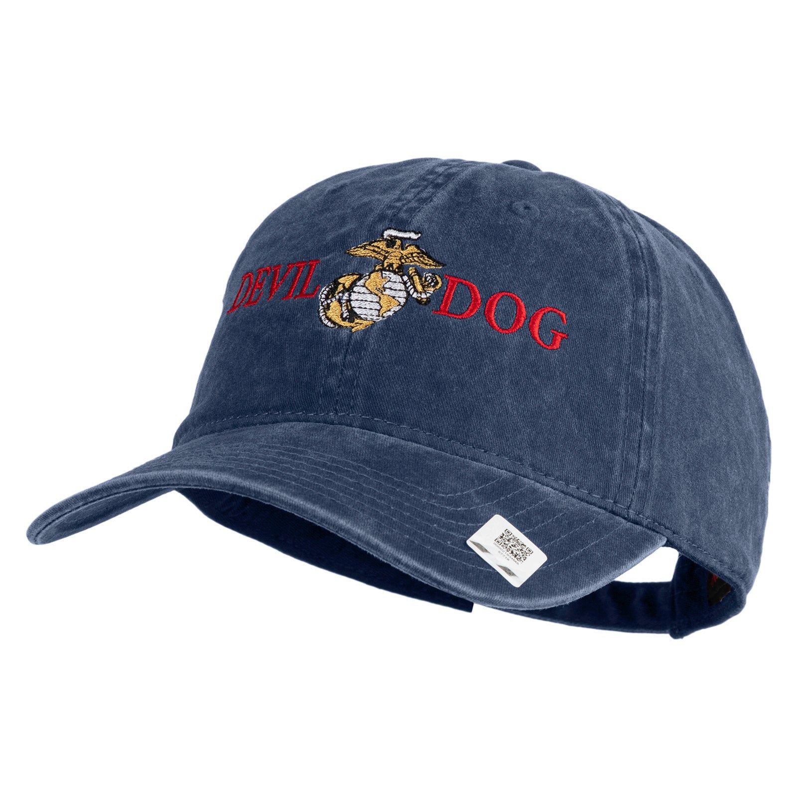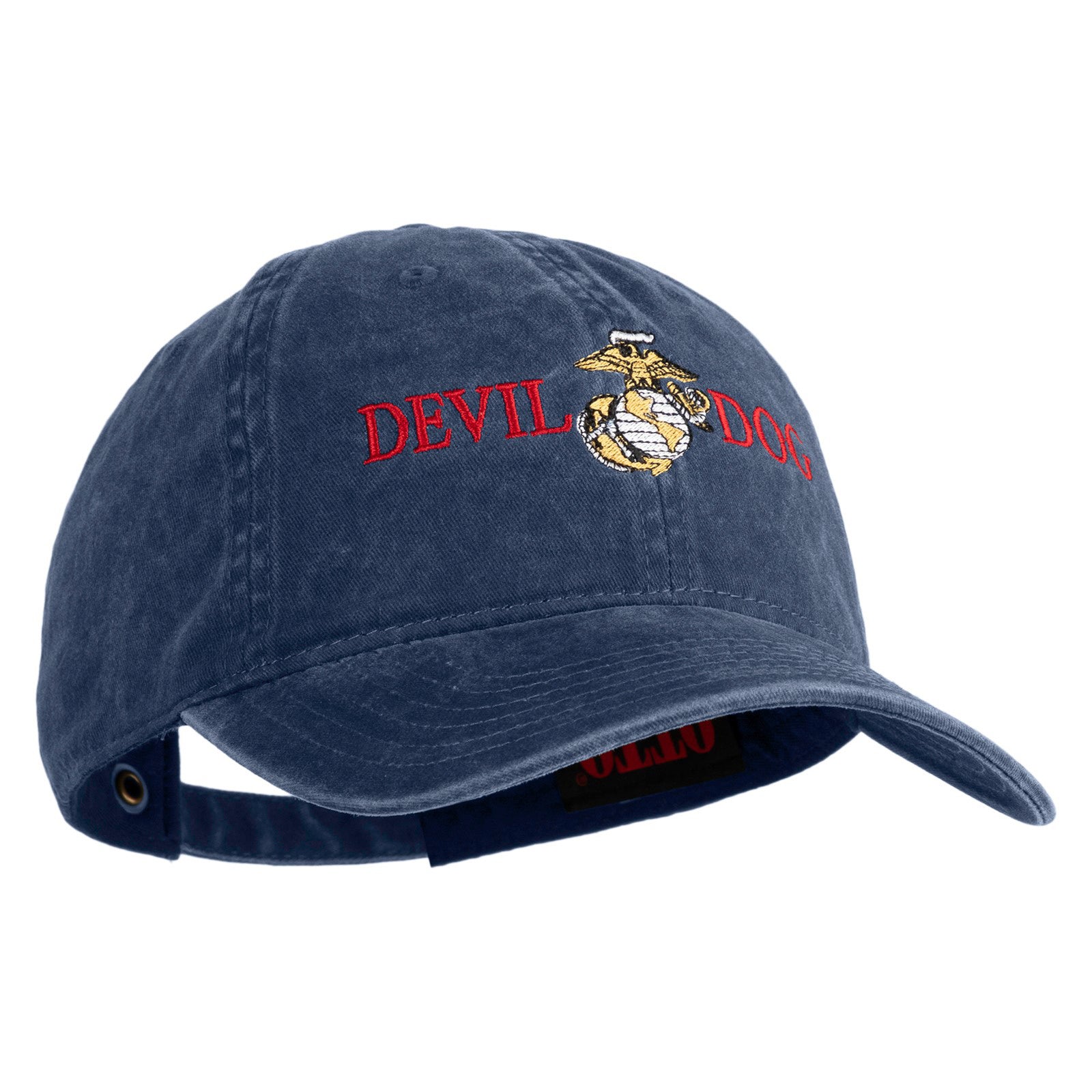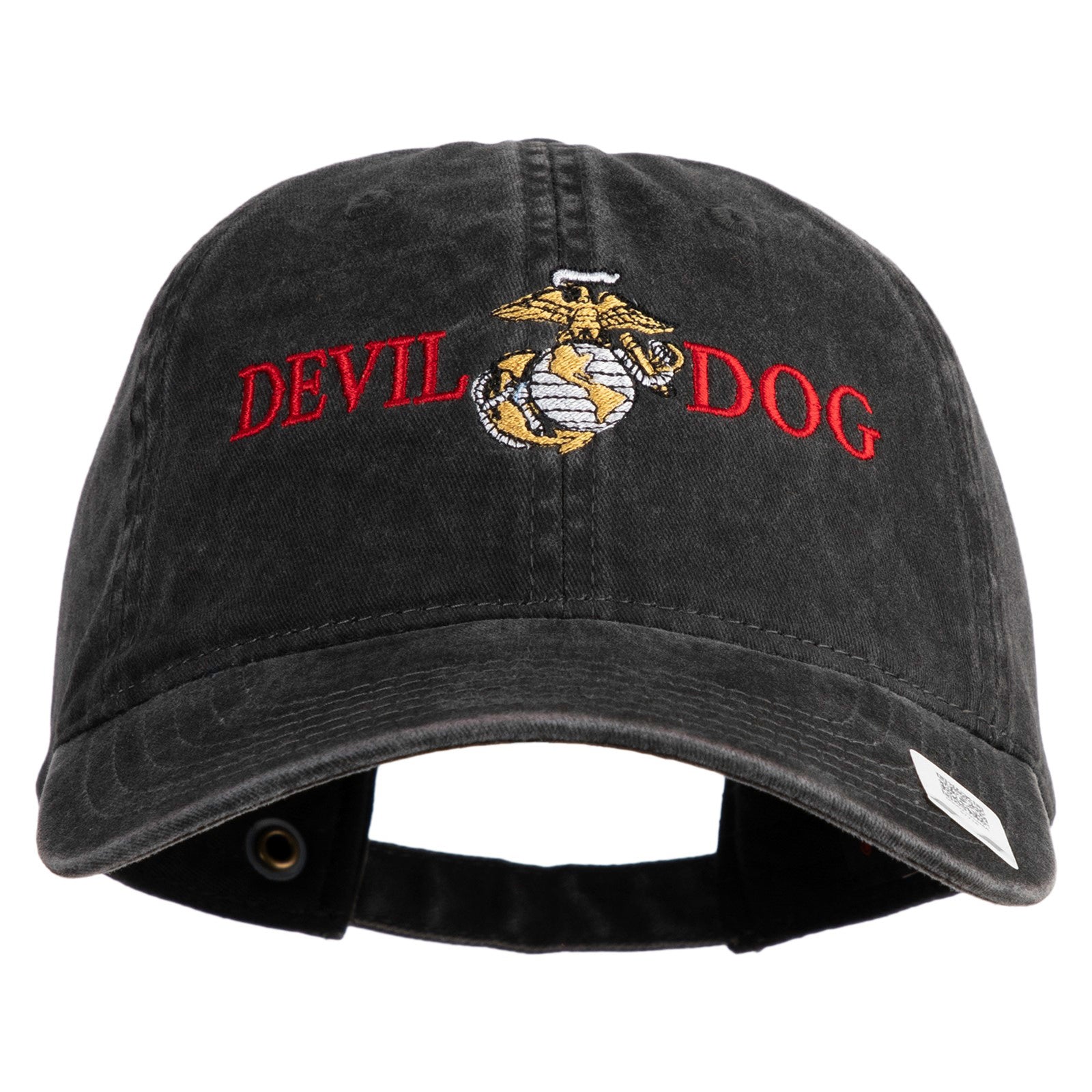Title, Devil Dog Embroidered Washed Solid Pigment Dyed Cotton Twill Brass Buckle Cap