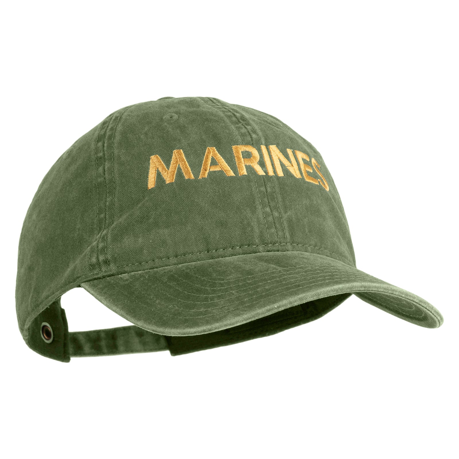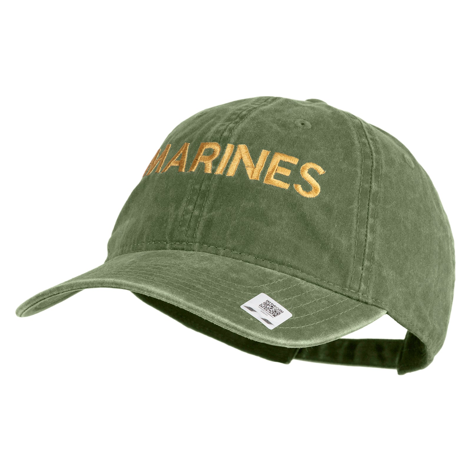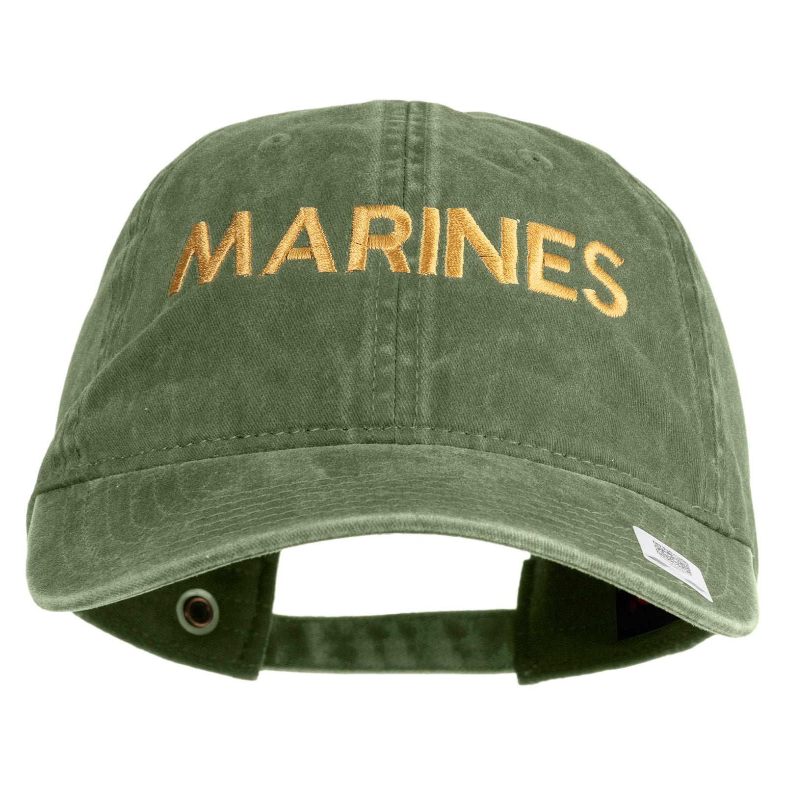 Marines Letter Embroidered Washed Solid Pigment Dyed Cotton Twill Brass Buckle Cap - Olive OSFM