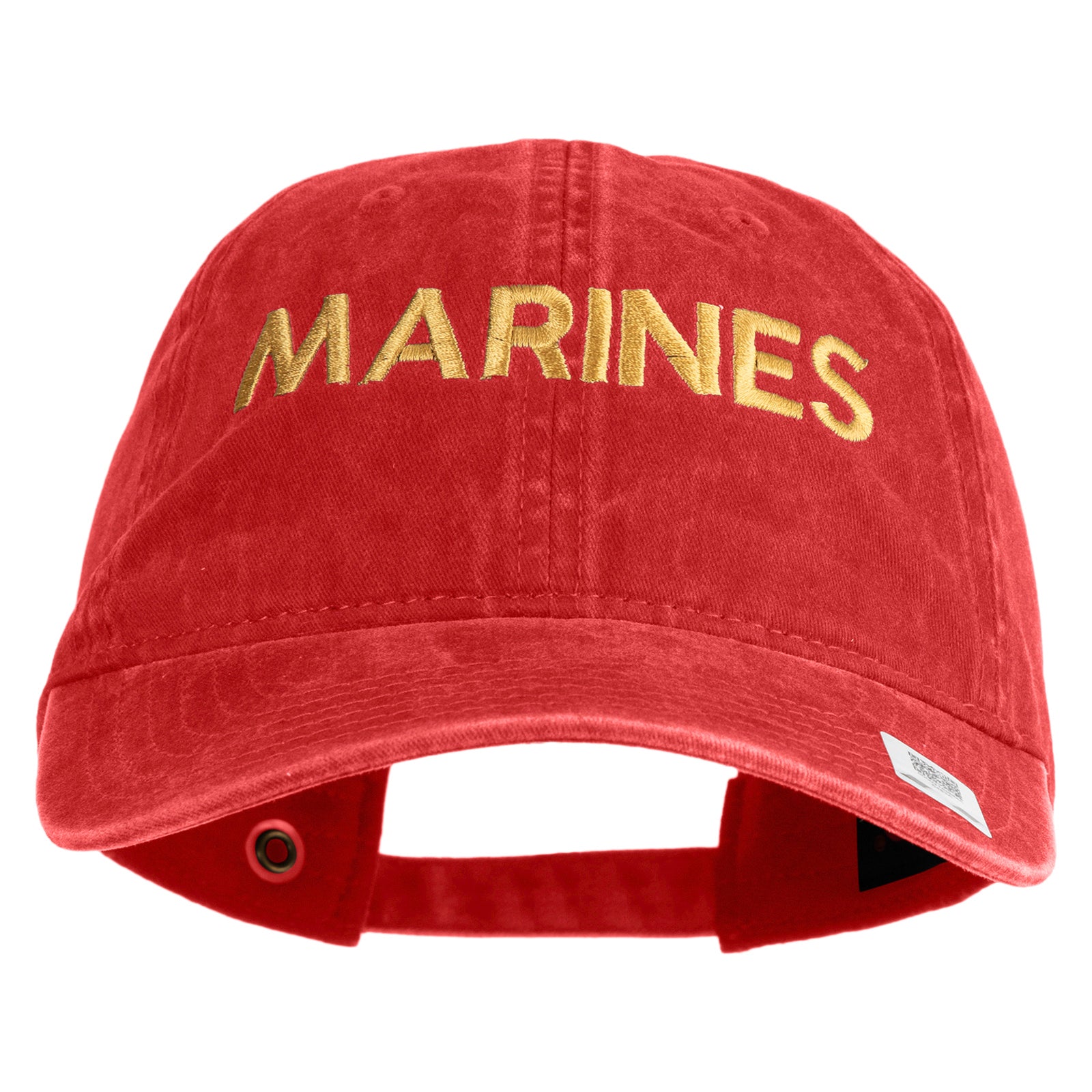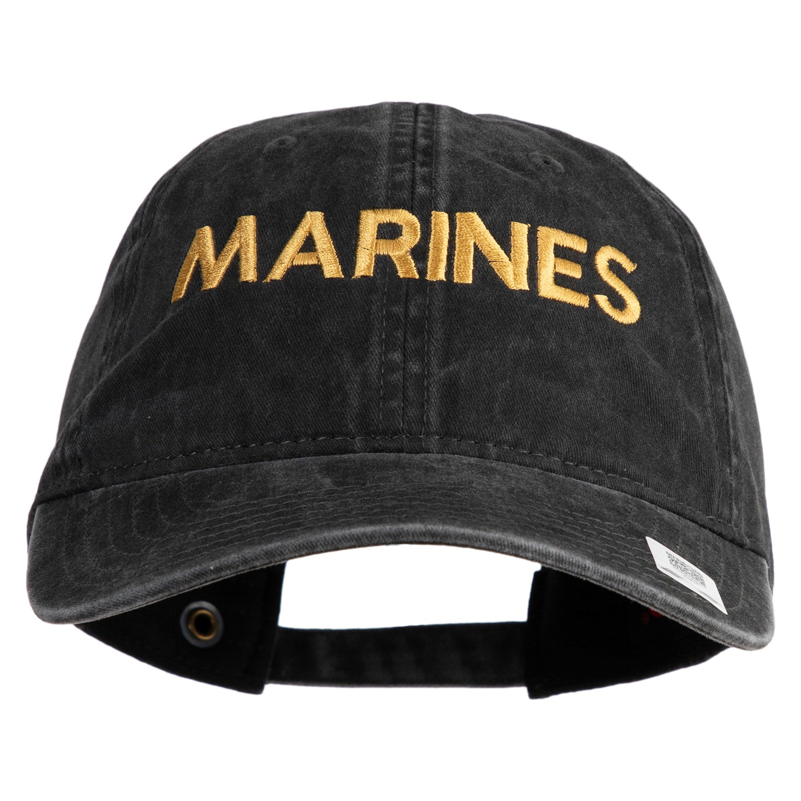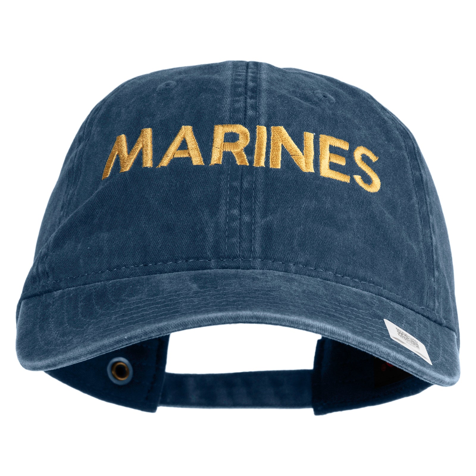 Title, Marines Letter Embroidered Washed Solid Pigment Dyed Cotton Twill Brass Buckle Cap