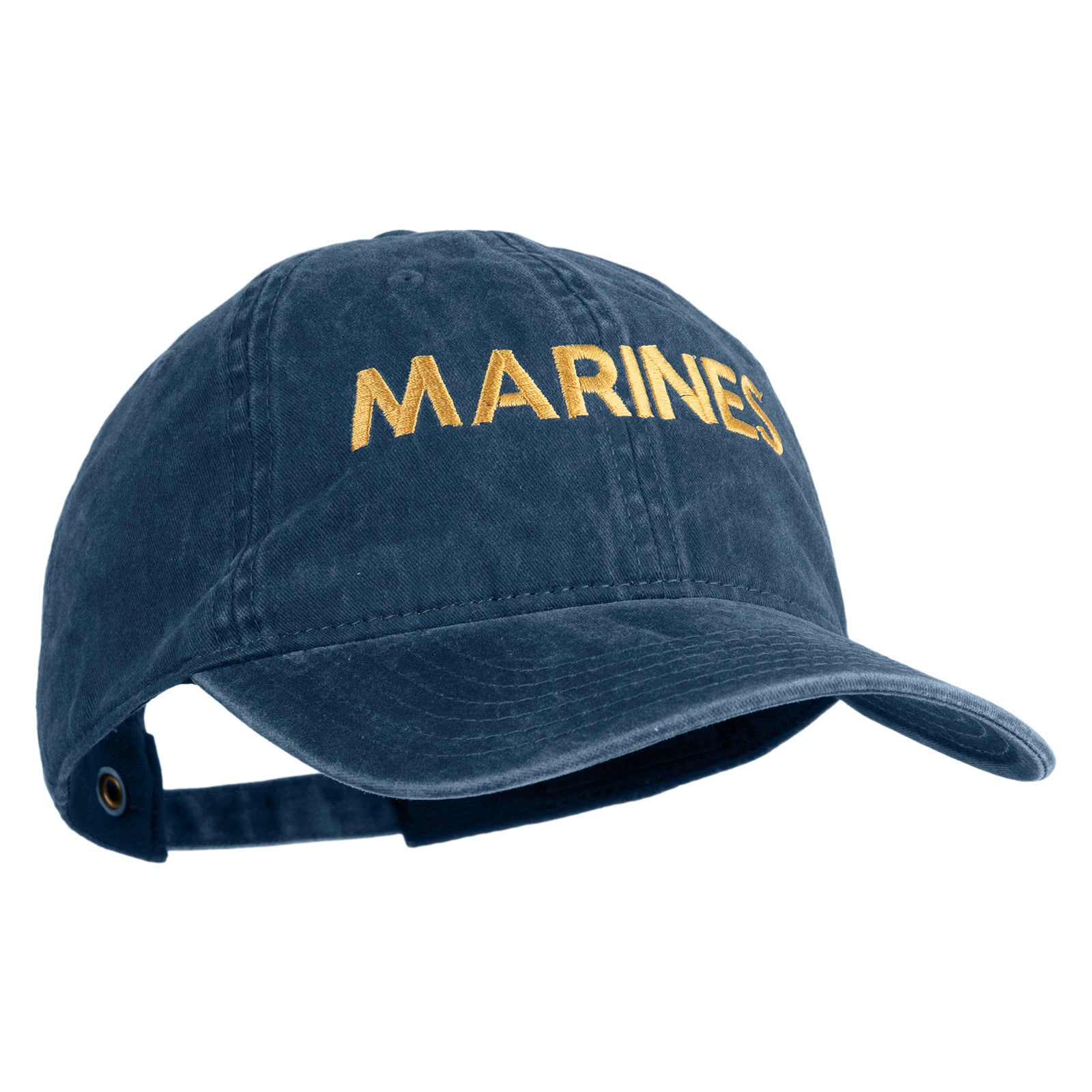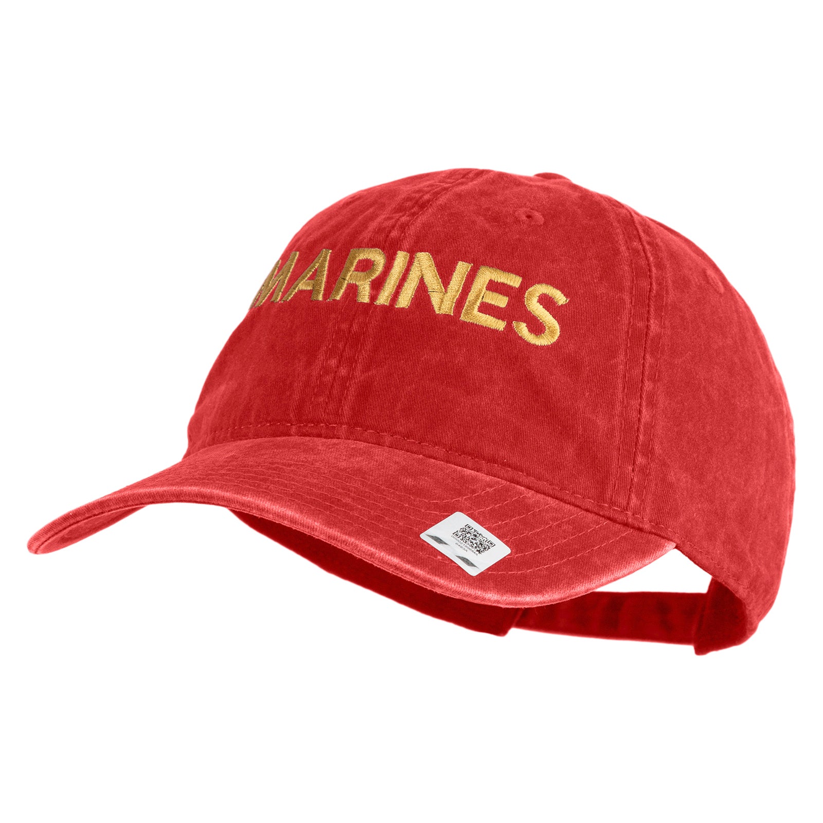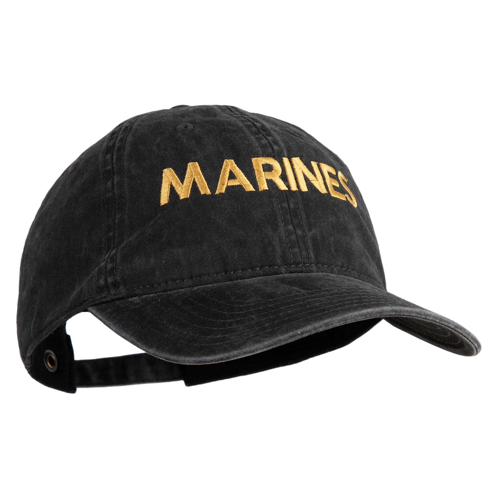 Title, Marines Letter Embroidered Washed Solid Pigment Dyed Cotton Twill Brass Buckle Cap