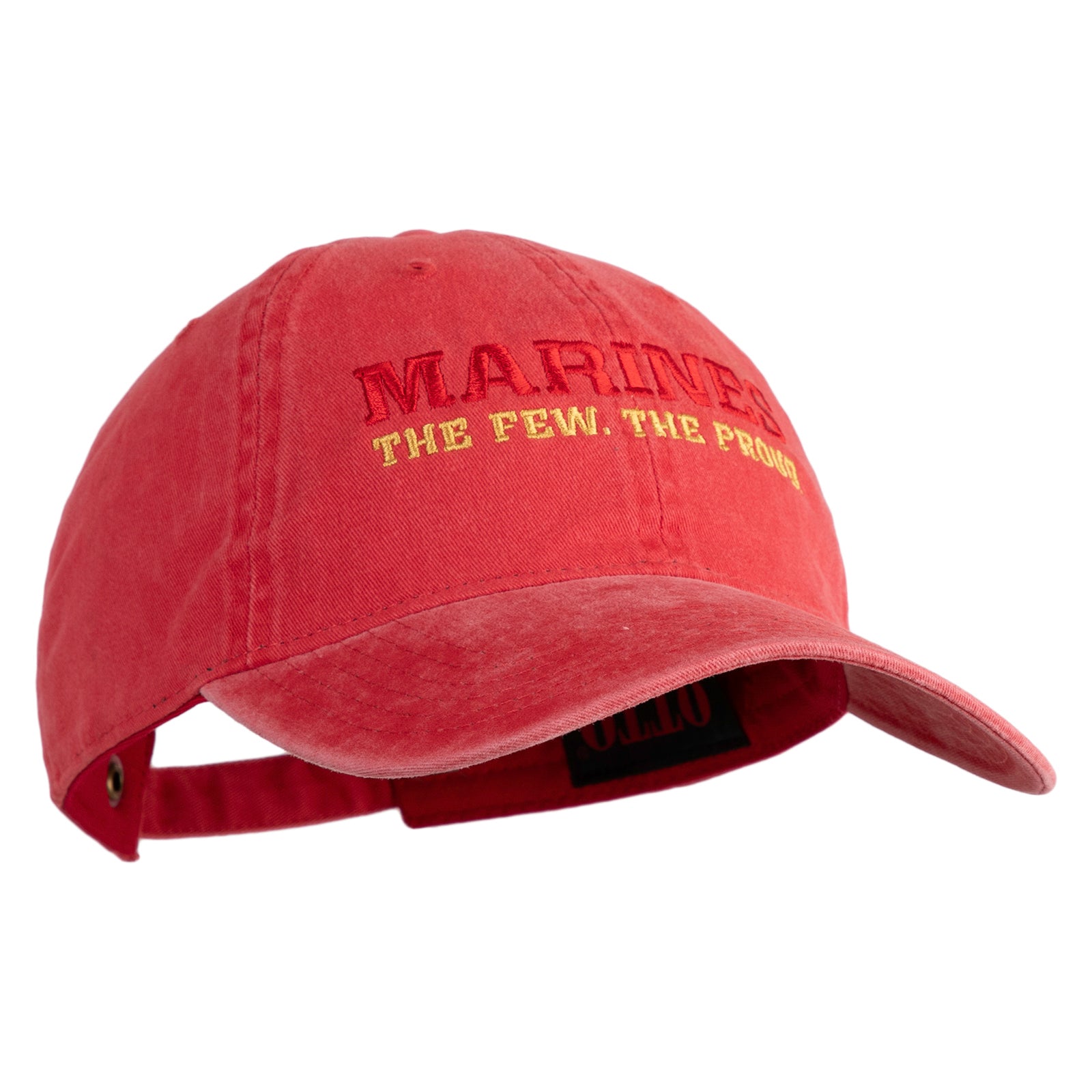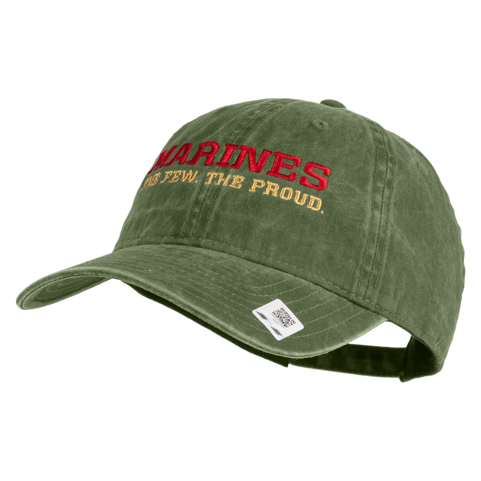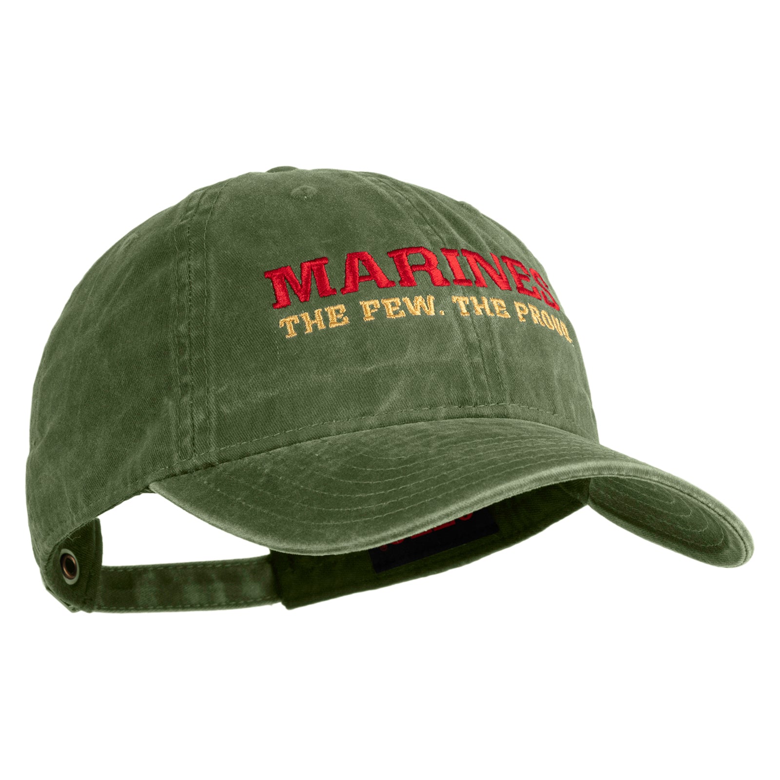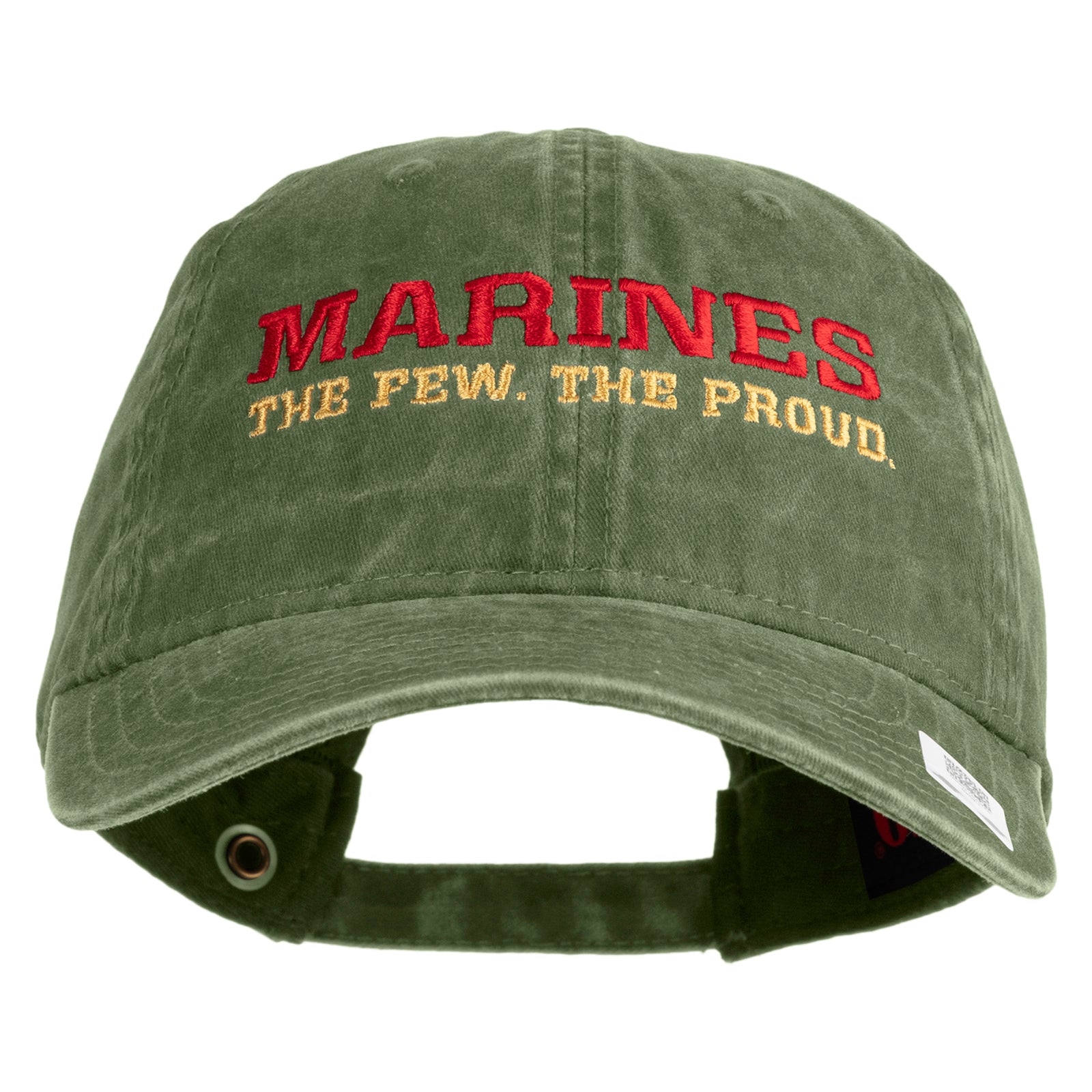Title, Marines The Few The Proud Embroidered Washed Solid Pigment Dyed Cotton Twill Brass Buckle Cap