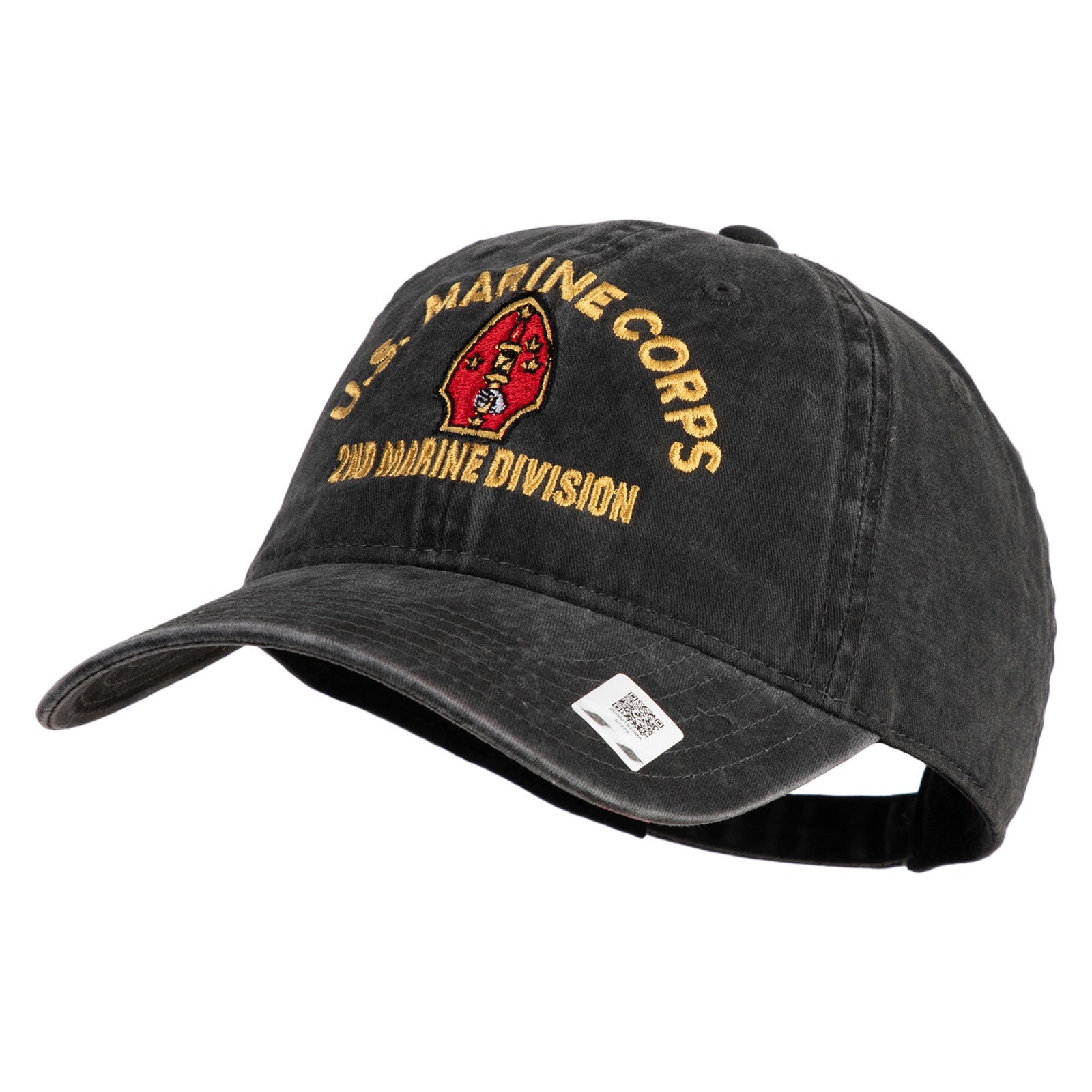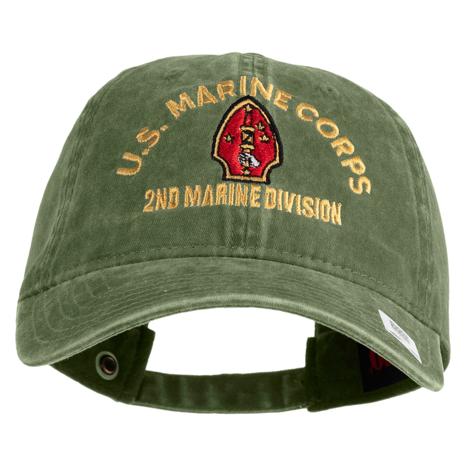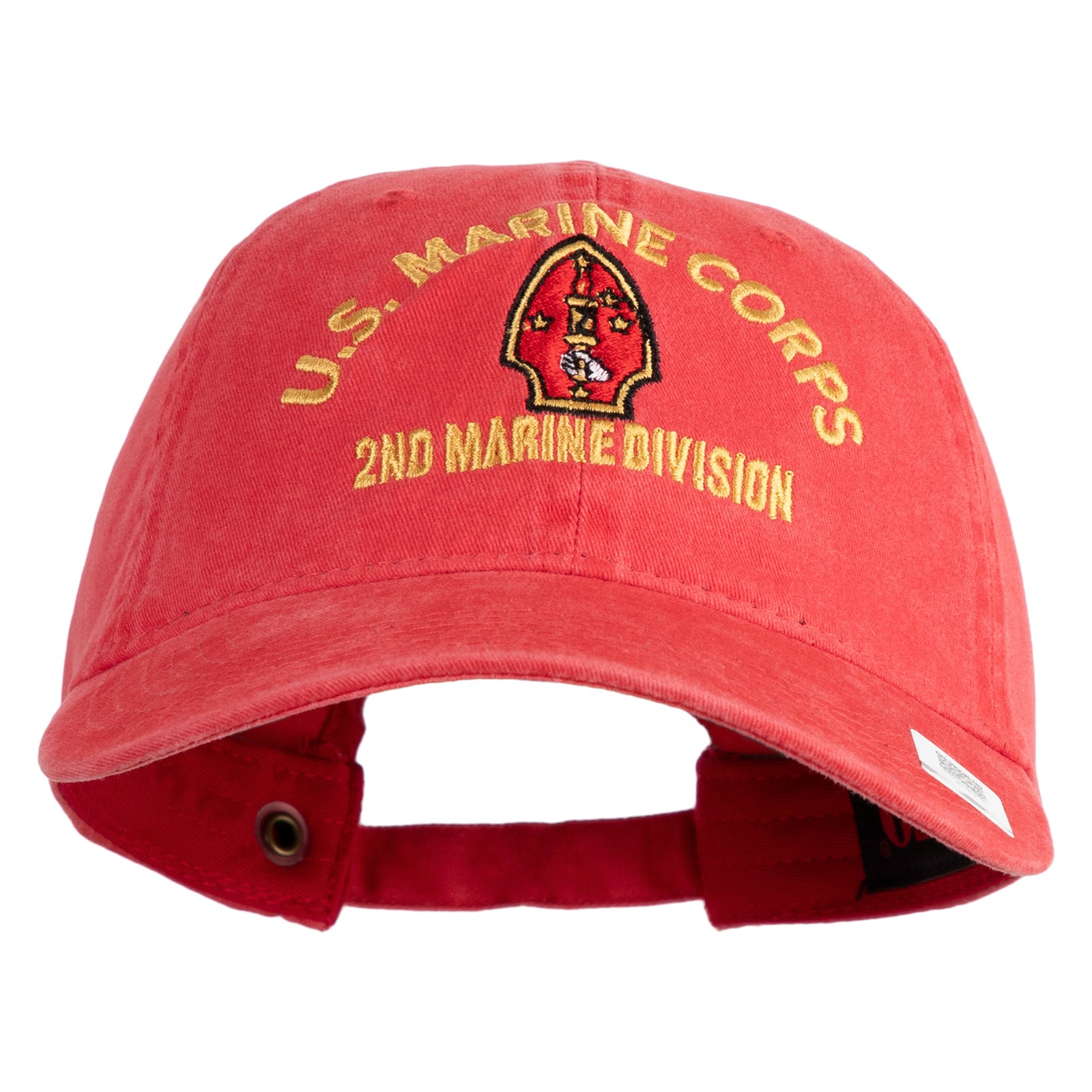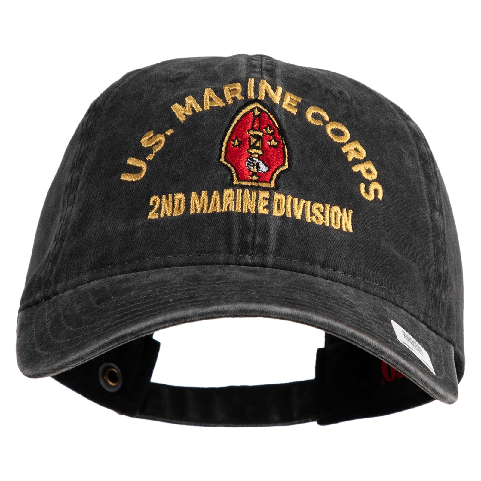 Title, U.S. Marine Corps 2nd Marine Division Embroidered Washed Solid Pigment Dyed Cotton Twill Brass Buckle Cap