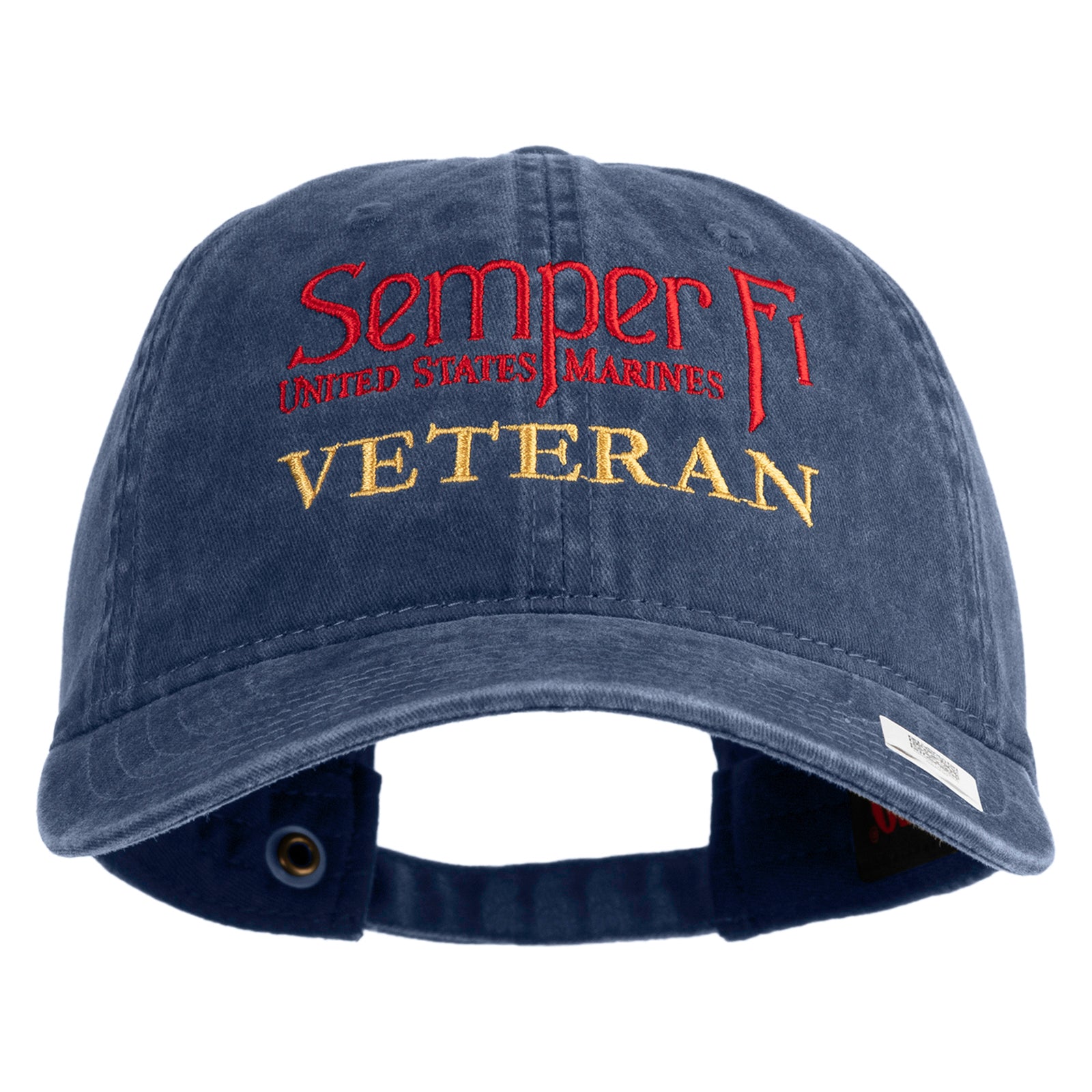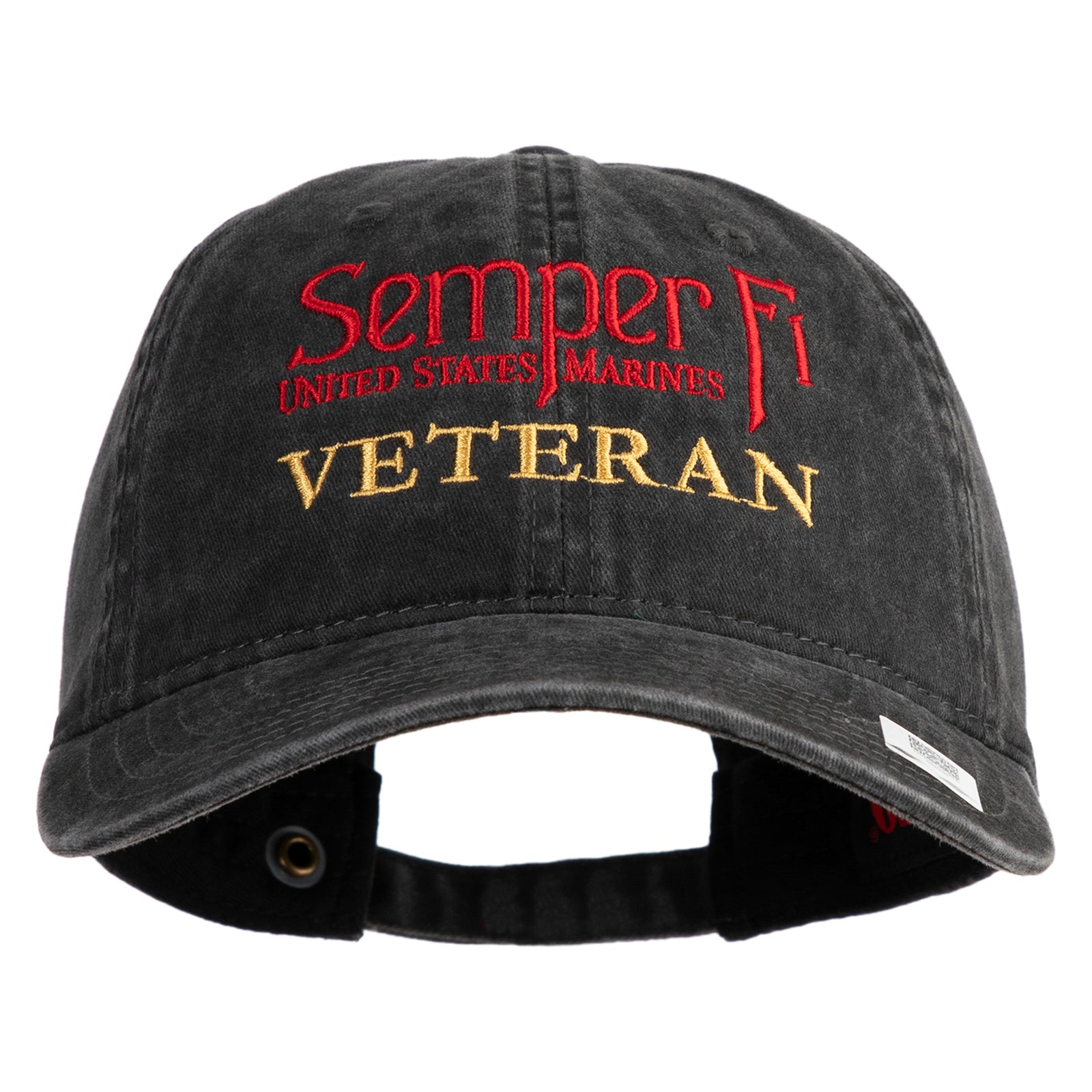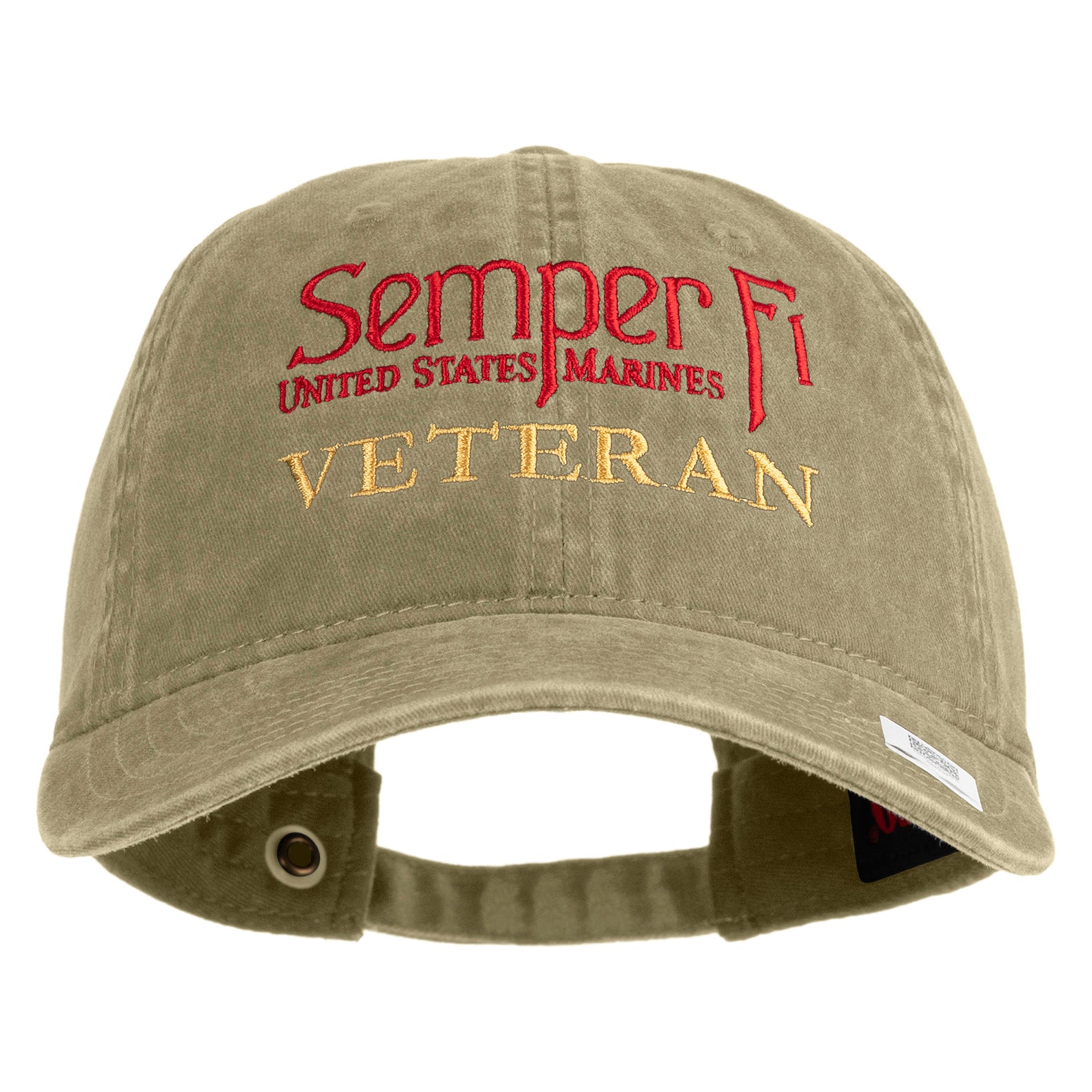 Title, United States Marines Semper Fi Veteran Embroidered Washed Solid Pigment Dyed Cotton Twill Brass Buckle Cap