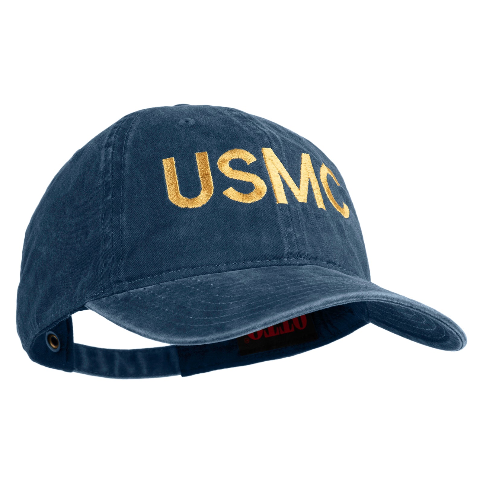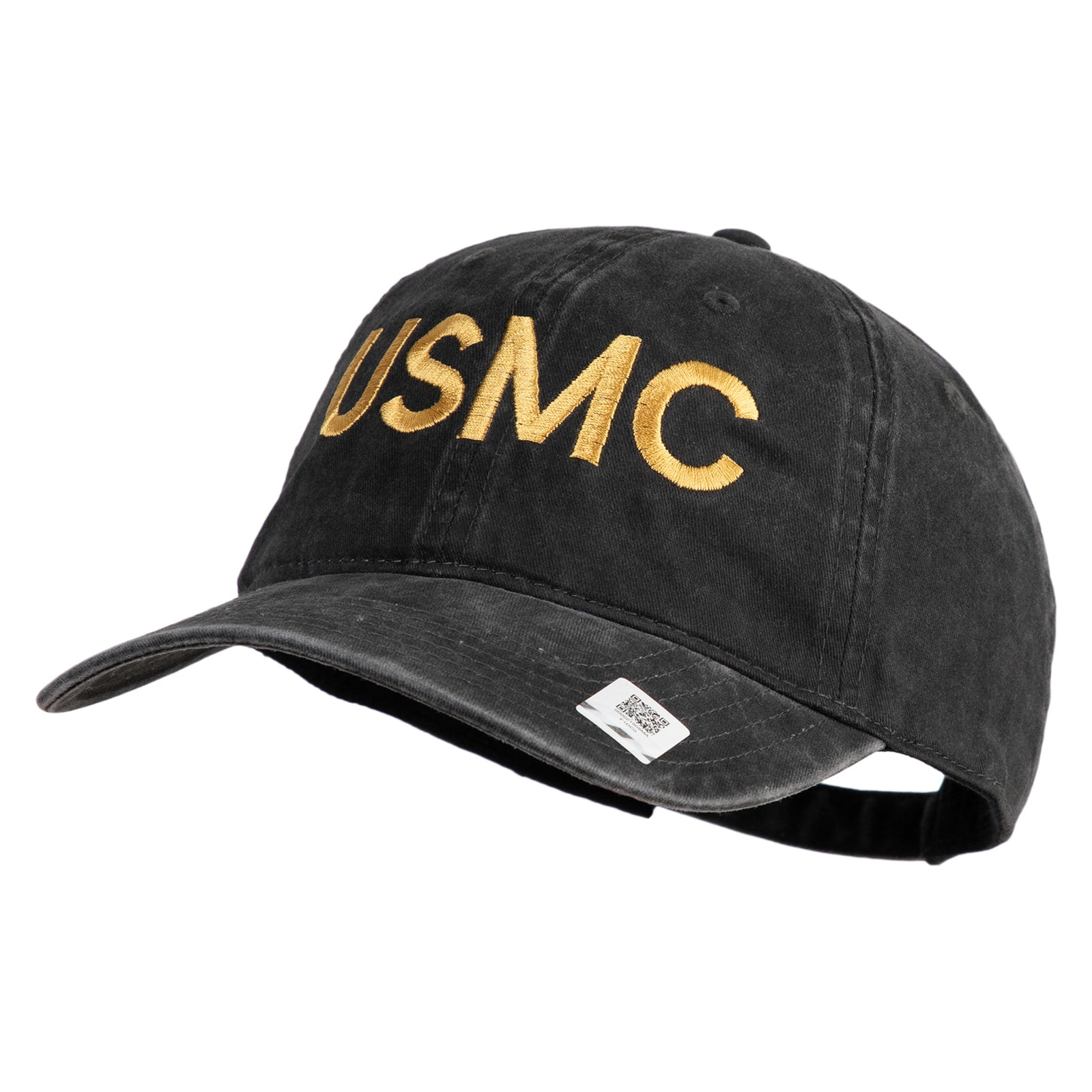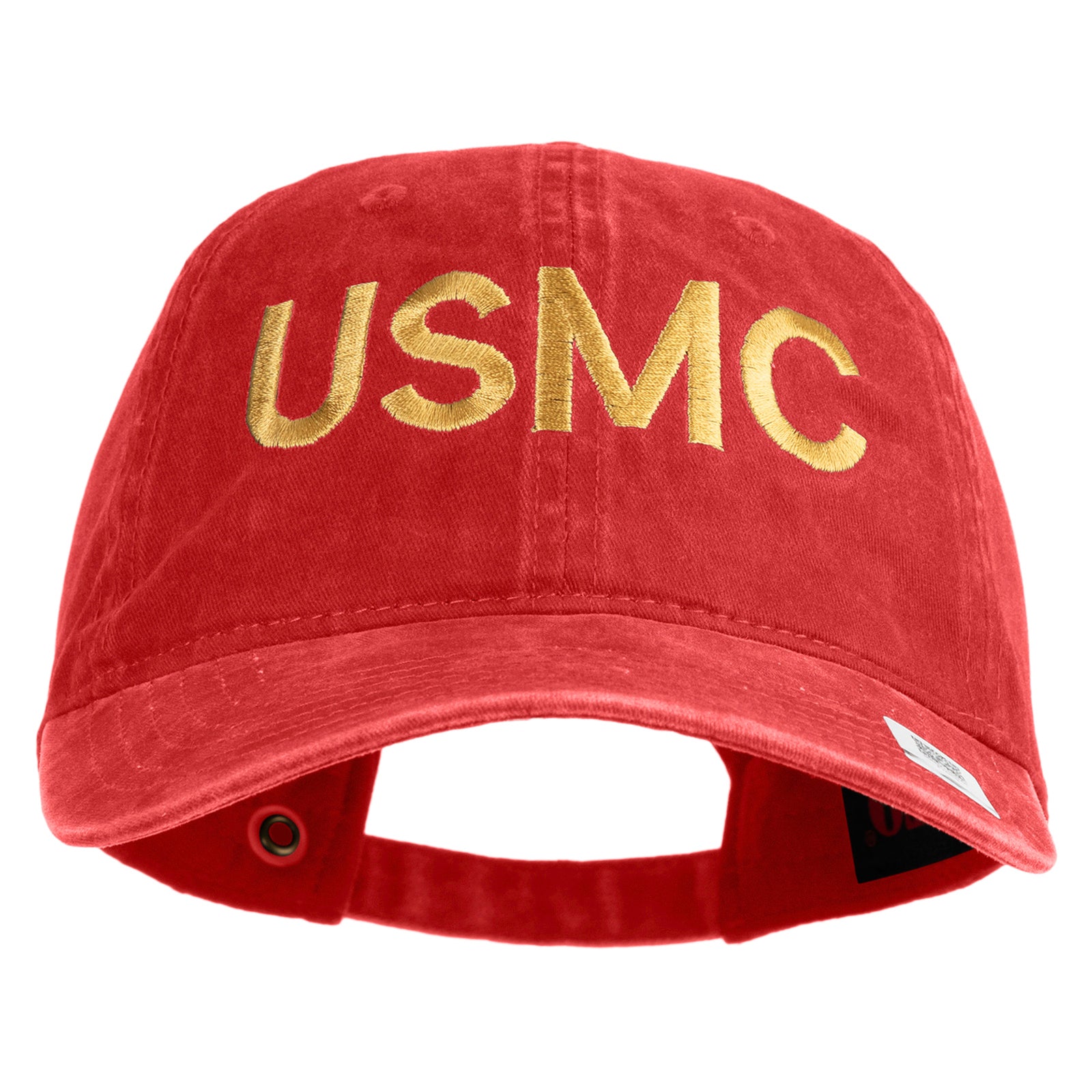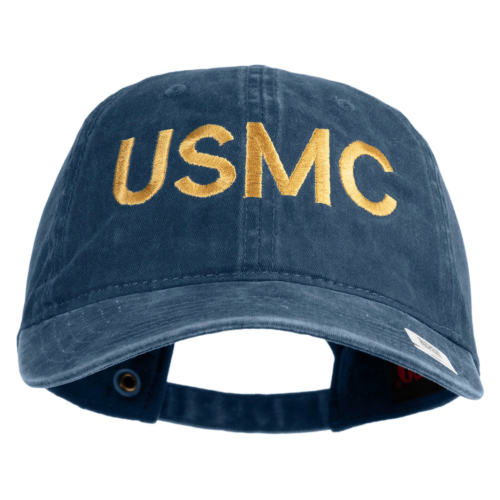 USMC Letter Embroidered Washed Solid Pigment Dyed Cotton Twill Brass Buckle Cap