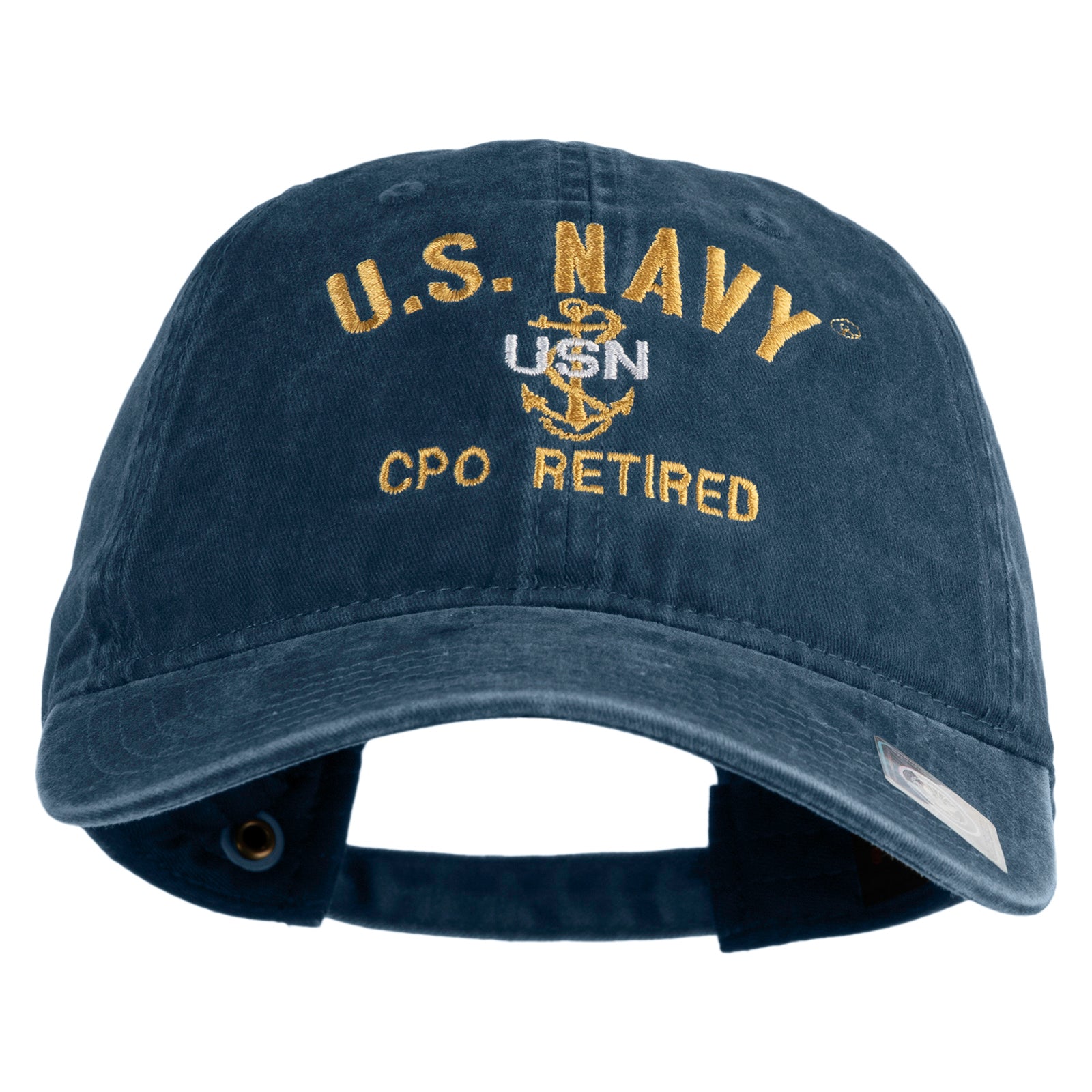 US Navy CPO Retired Military Embroidered Washed Solid Pigment Dyed Cotton Twill Brass Buckle Cap - Navy OSFM
