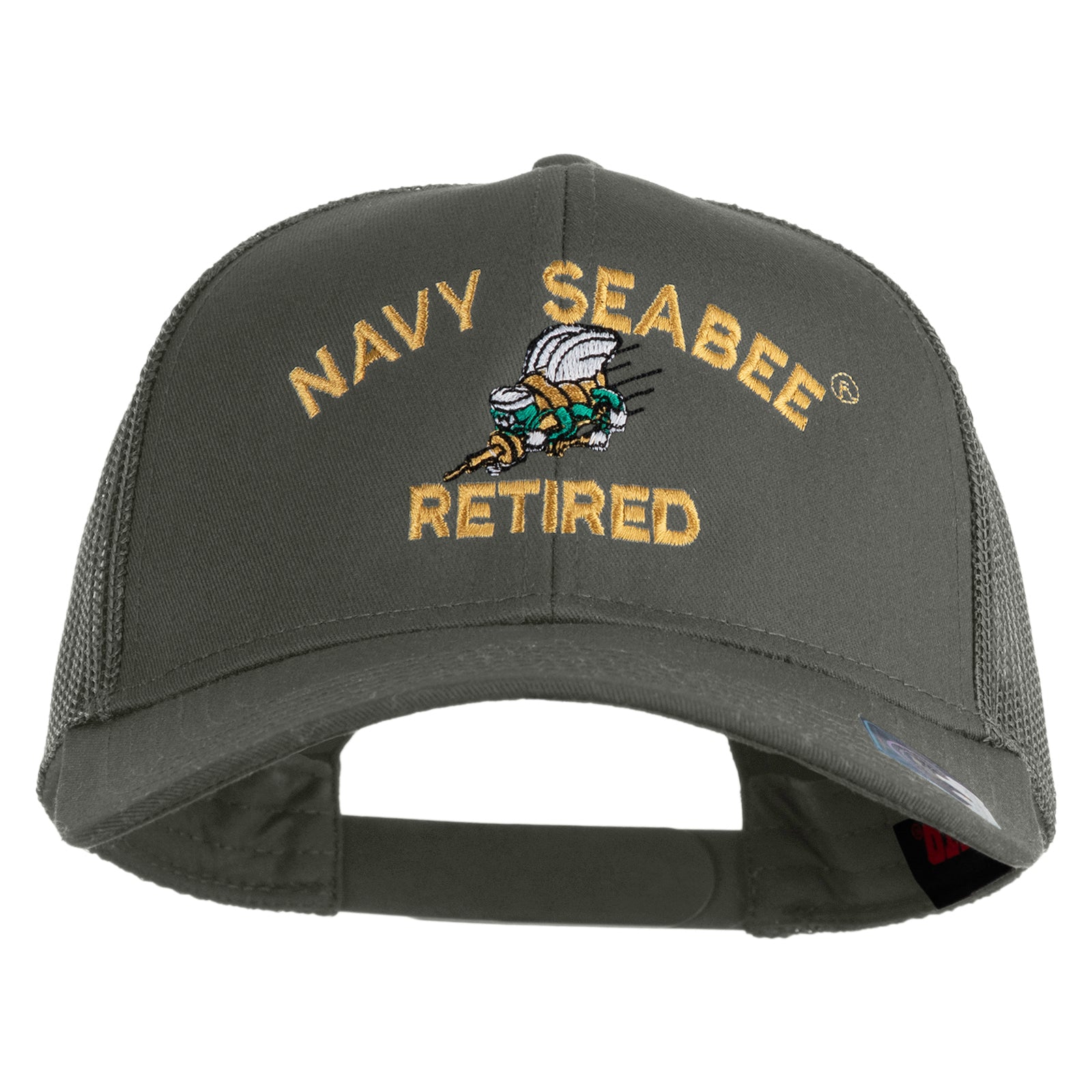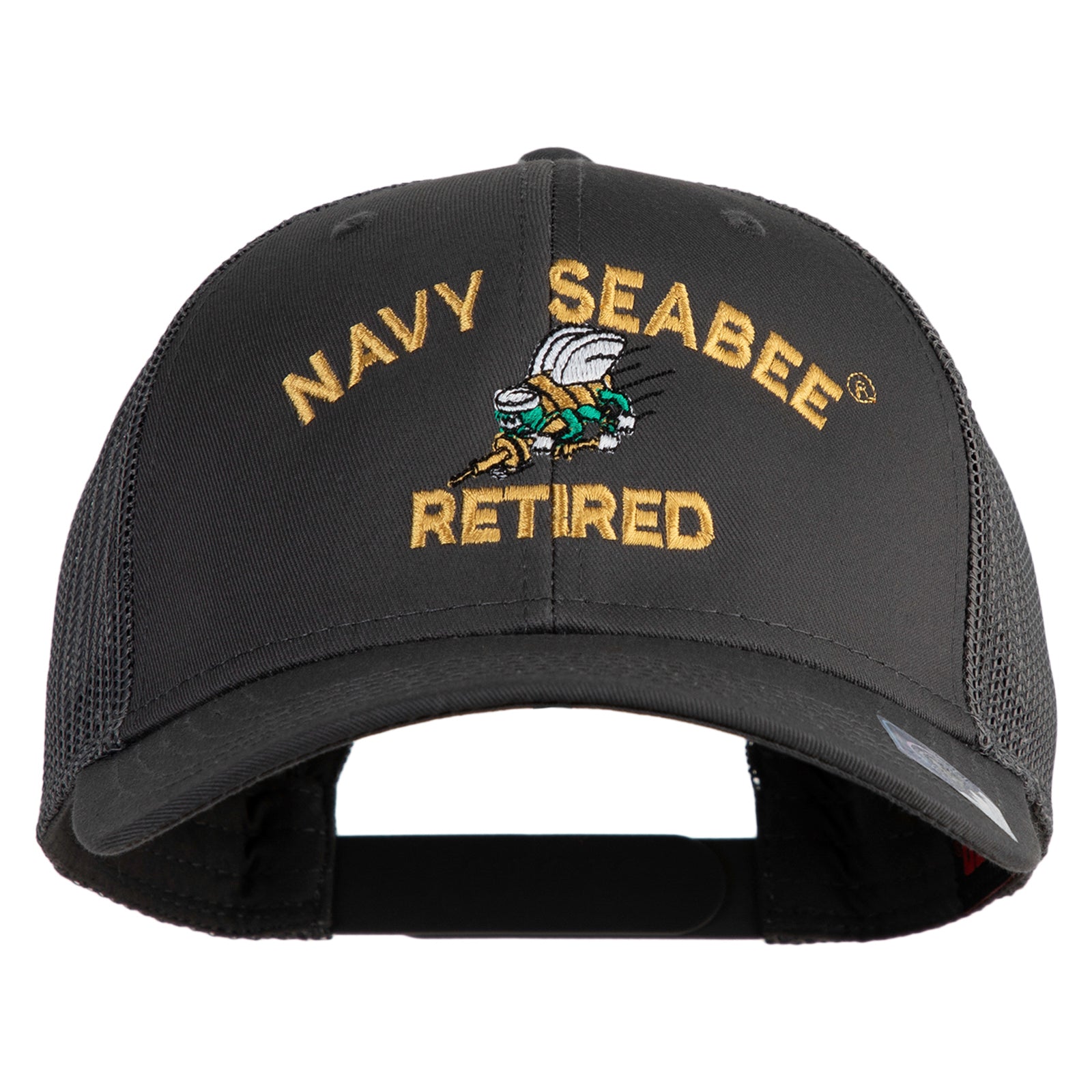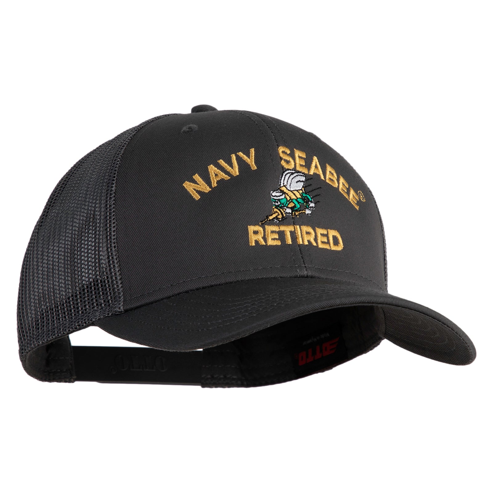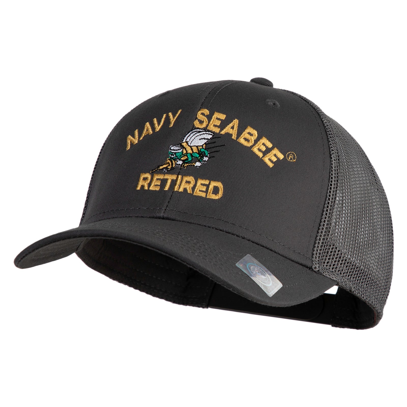 US Navy Seabee Retired Embroidered Solid Cotton Twill Mesh Prostyle Cap - Charcoal OSFM