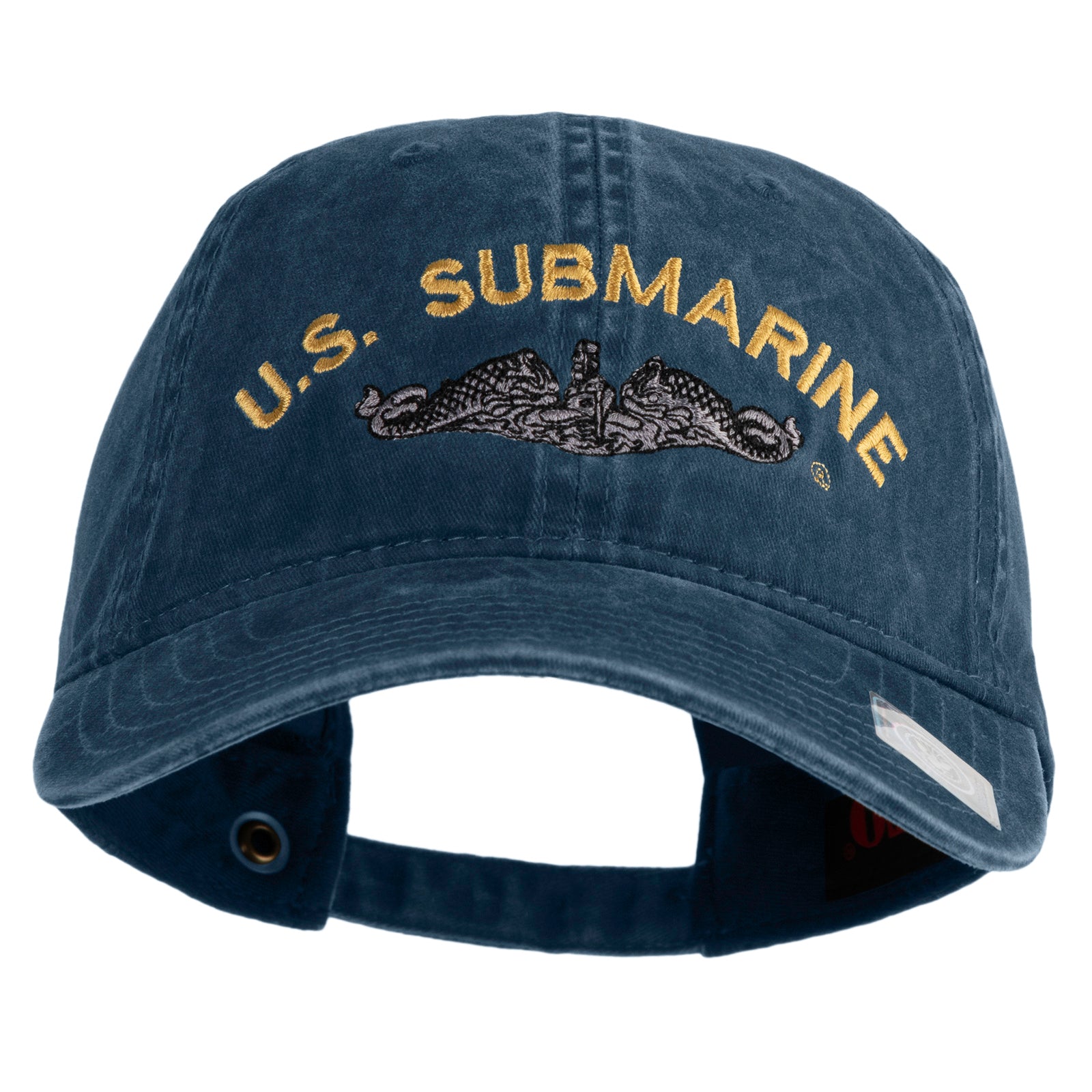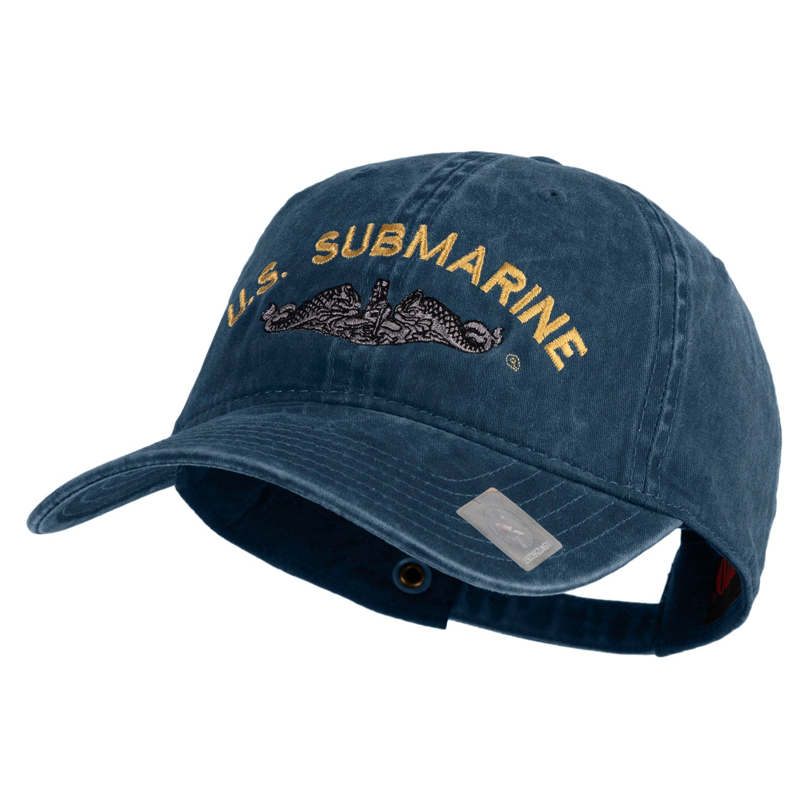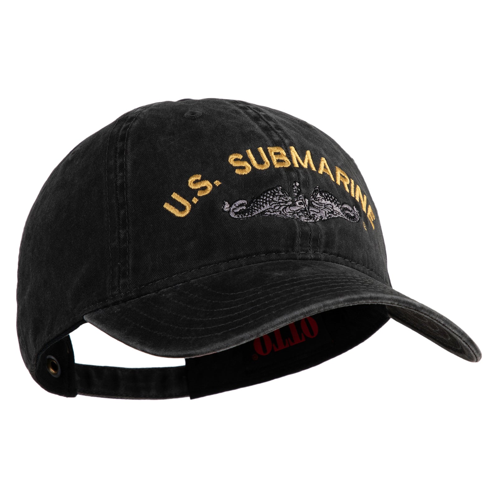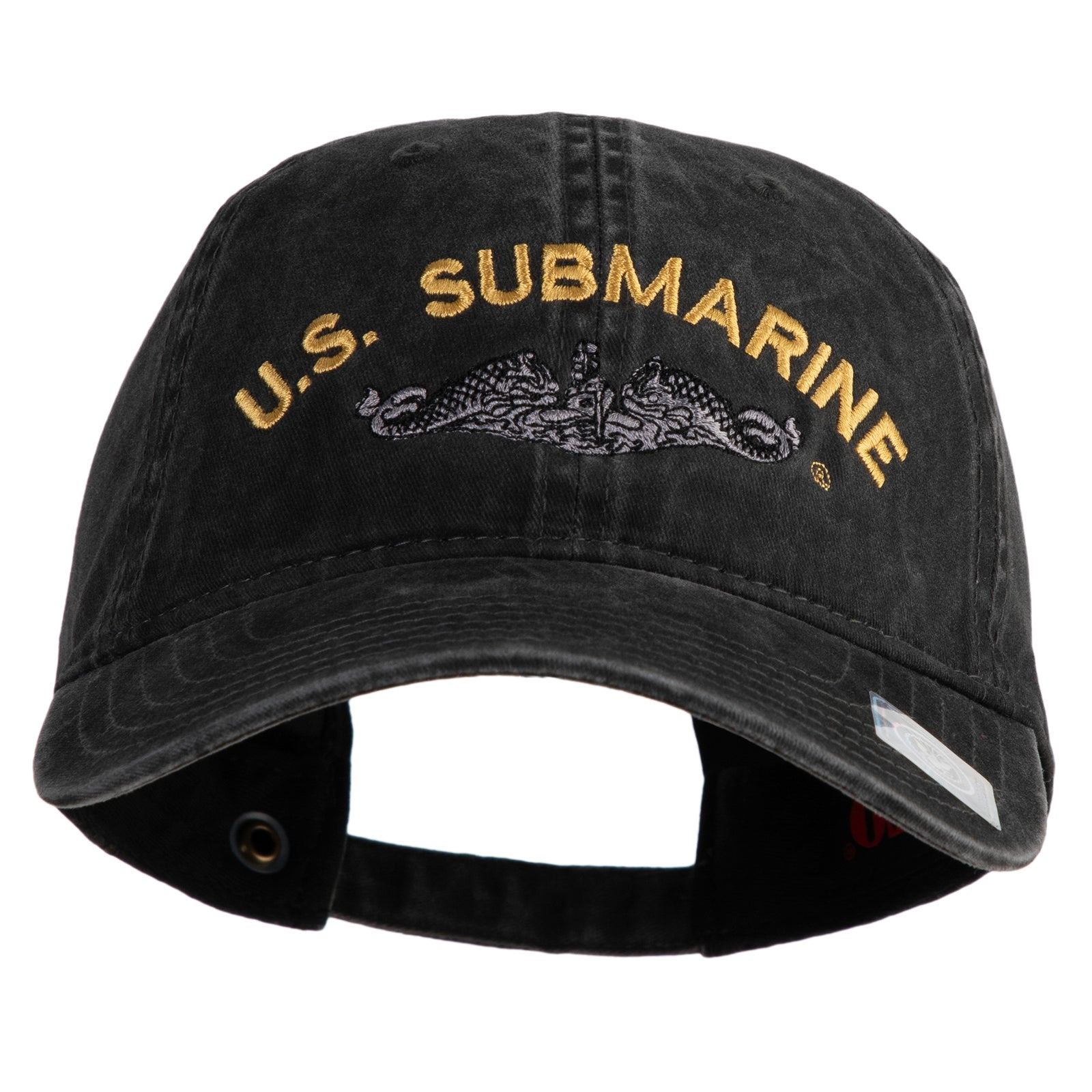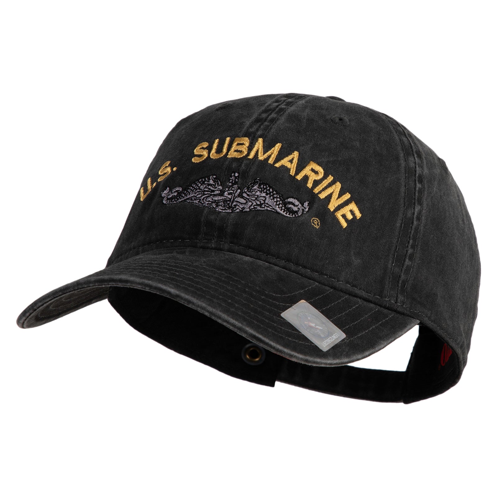 Title, US Submarine Logo Military Embroidered Washed Solid Pigment Dyed Cotton Twill Brass Buckle Cap