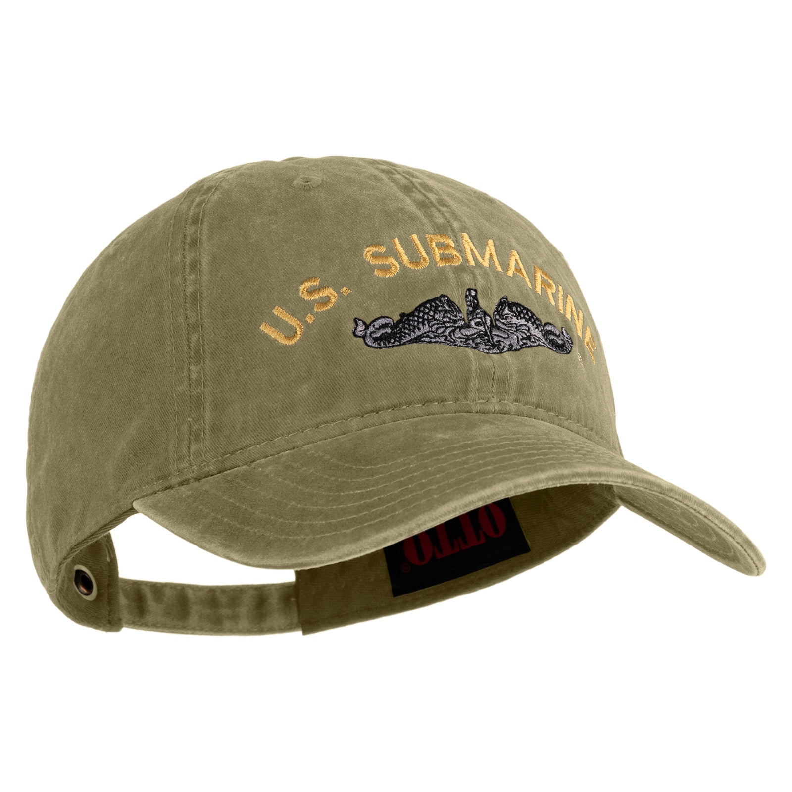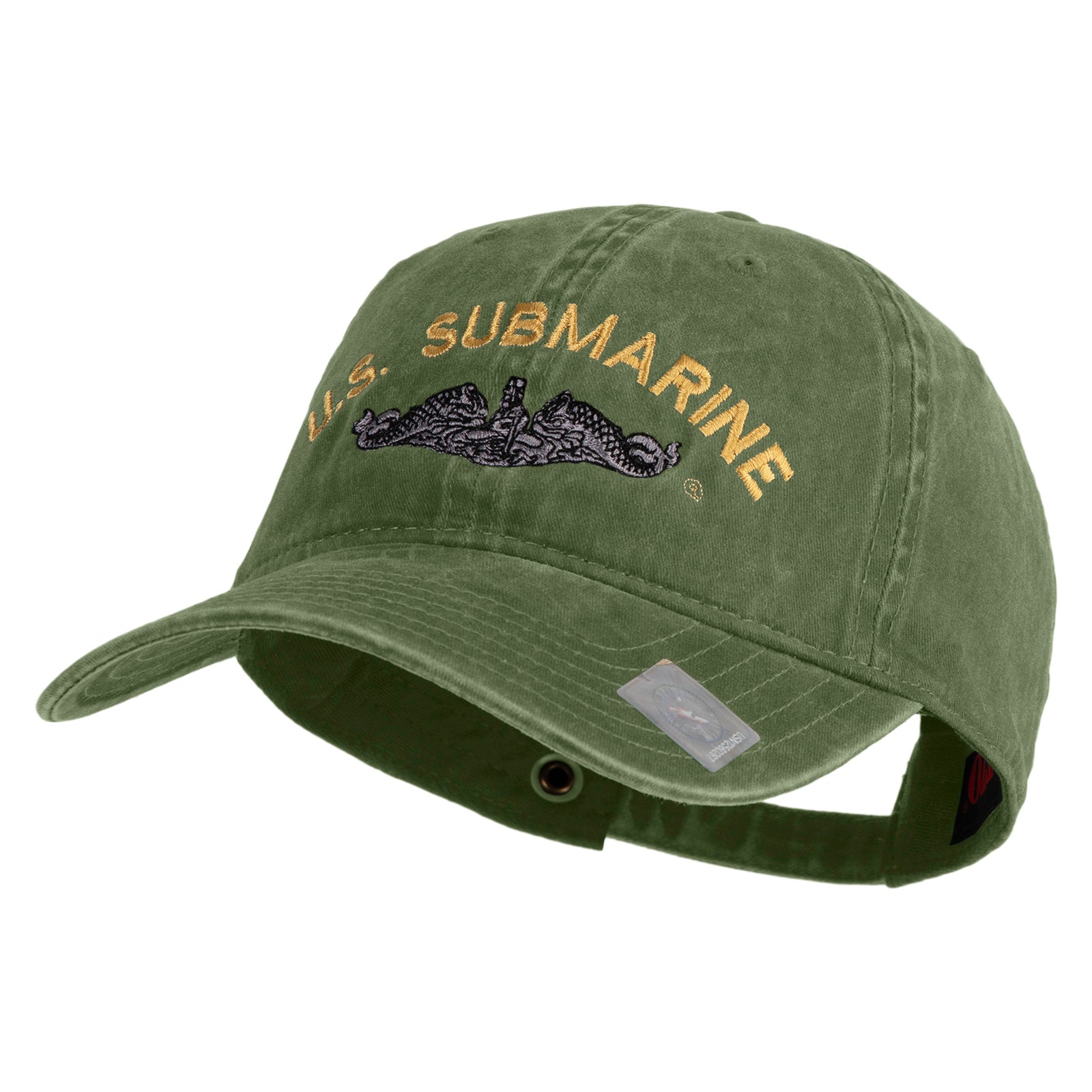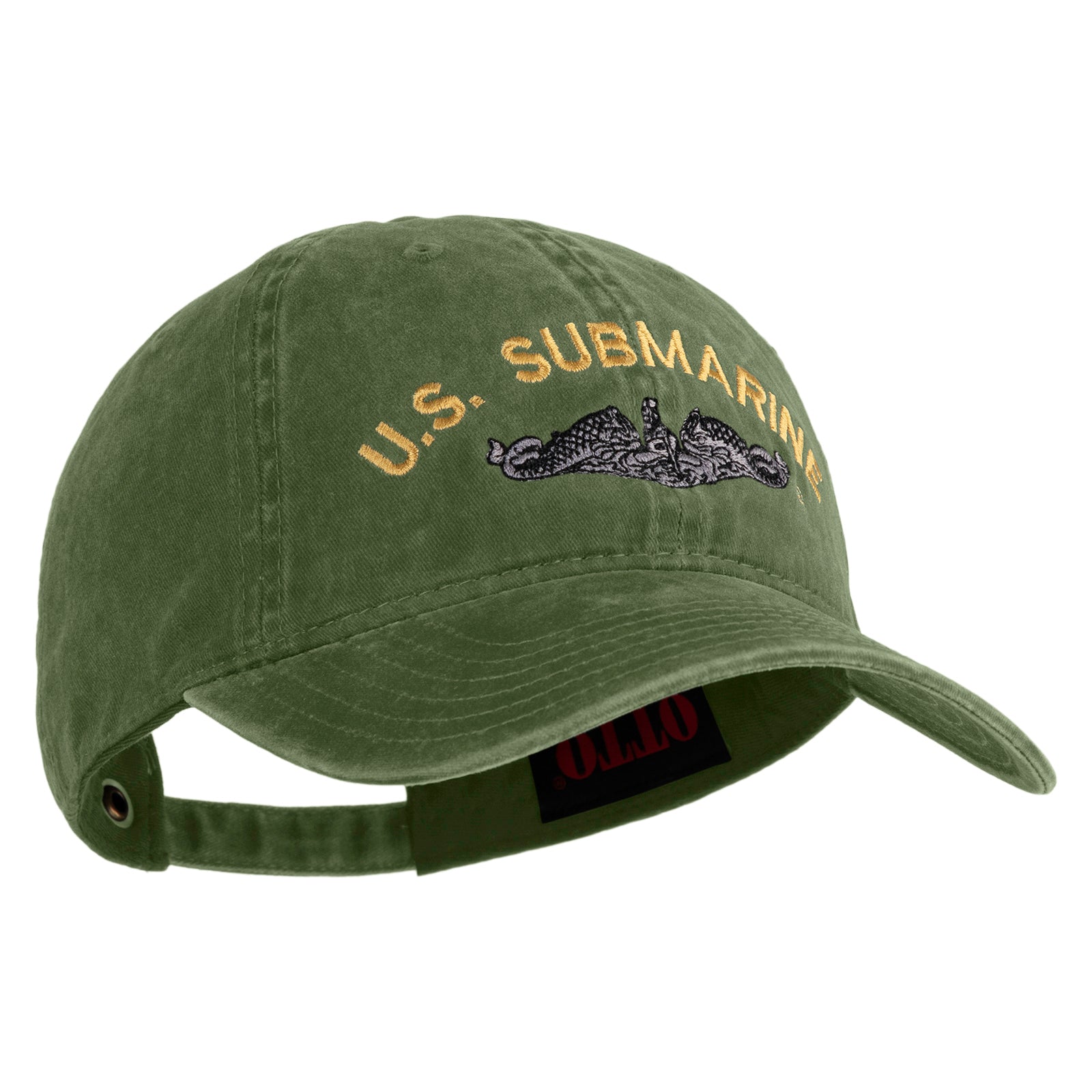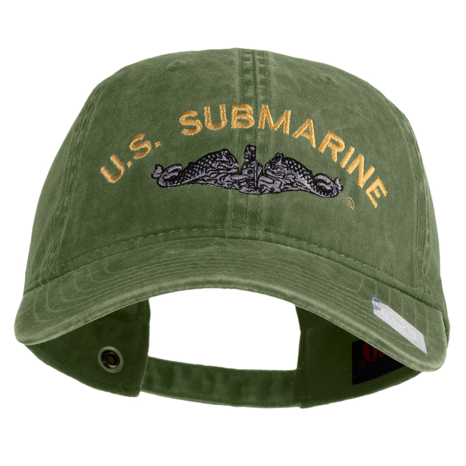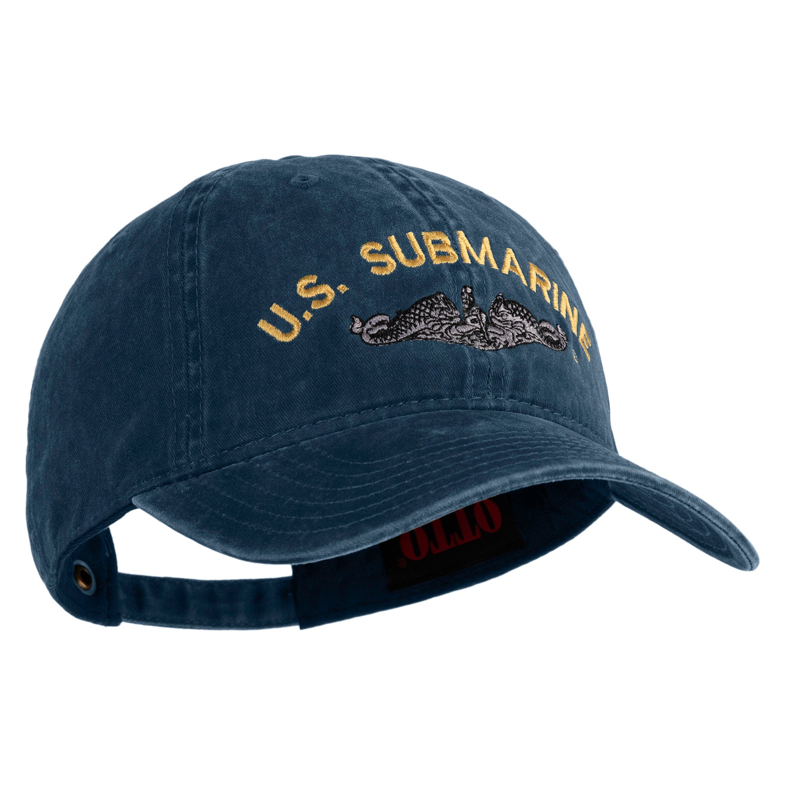 Title, US Submarine Logo Military Embroidered Washed Solid Pigment Dyed Cotton Twill Brass Buckle Cap