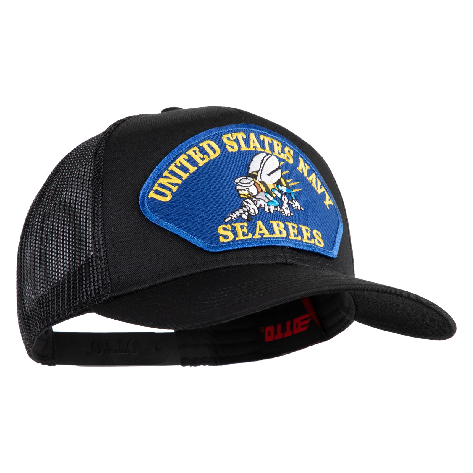 United State Navy Seabees Blue Patched Solid Cotton Twill Mesh Prostyle Cap - Black OSFM