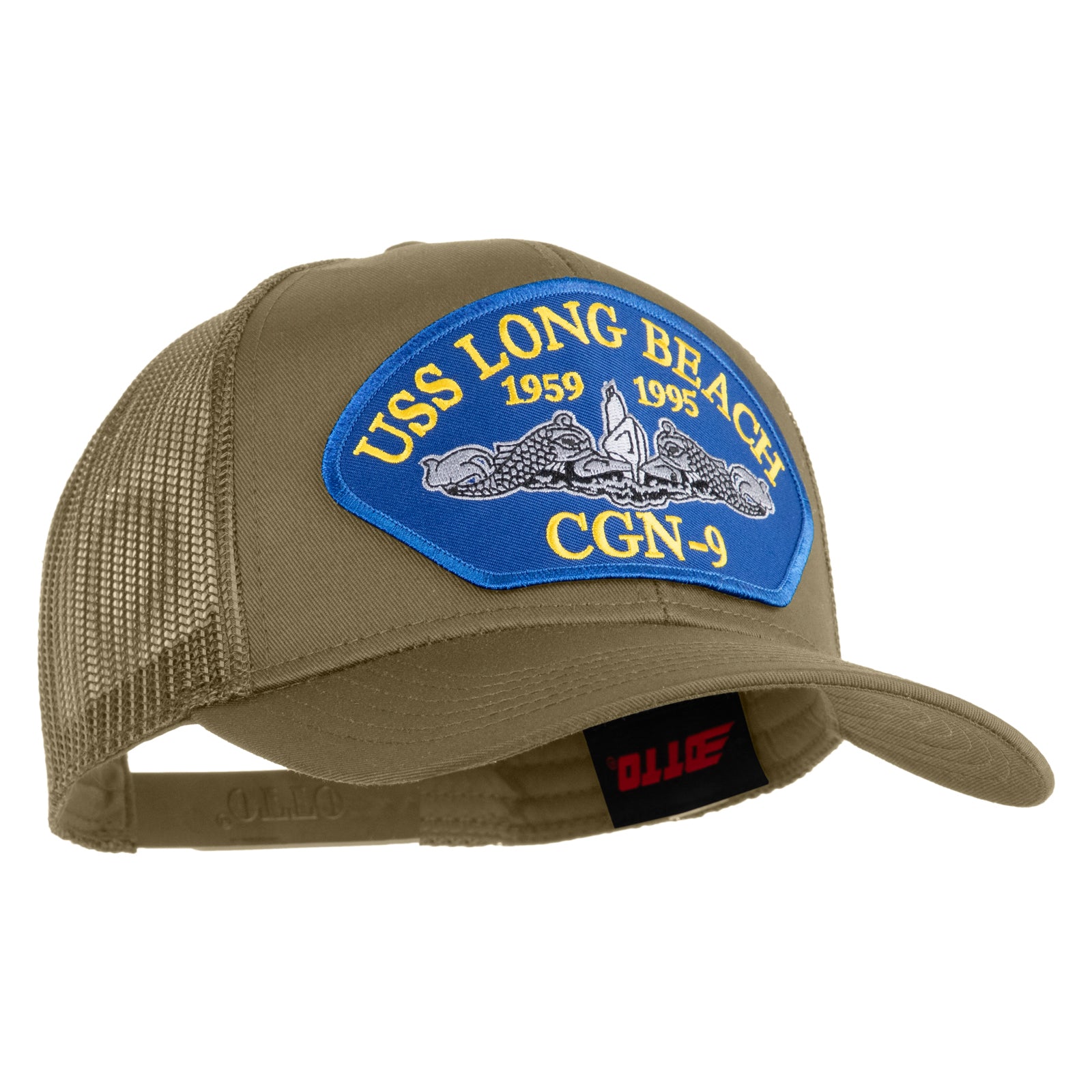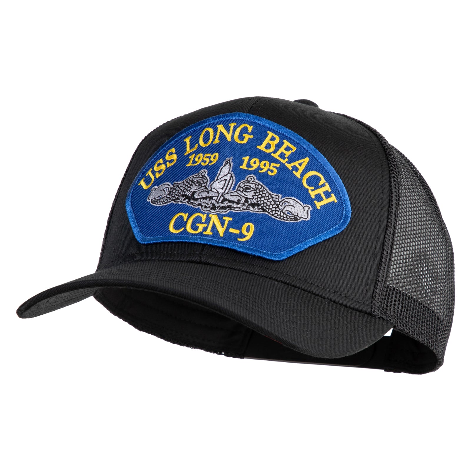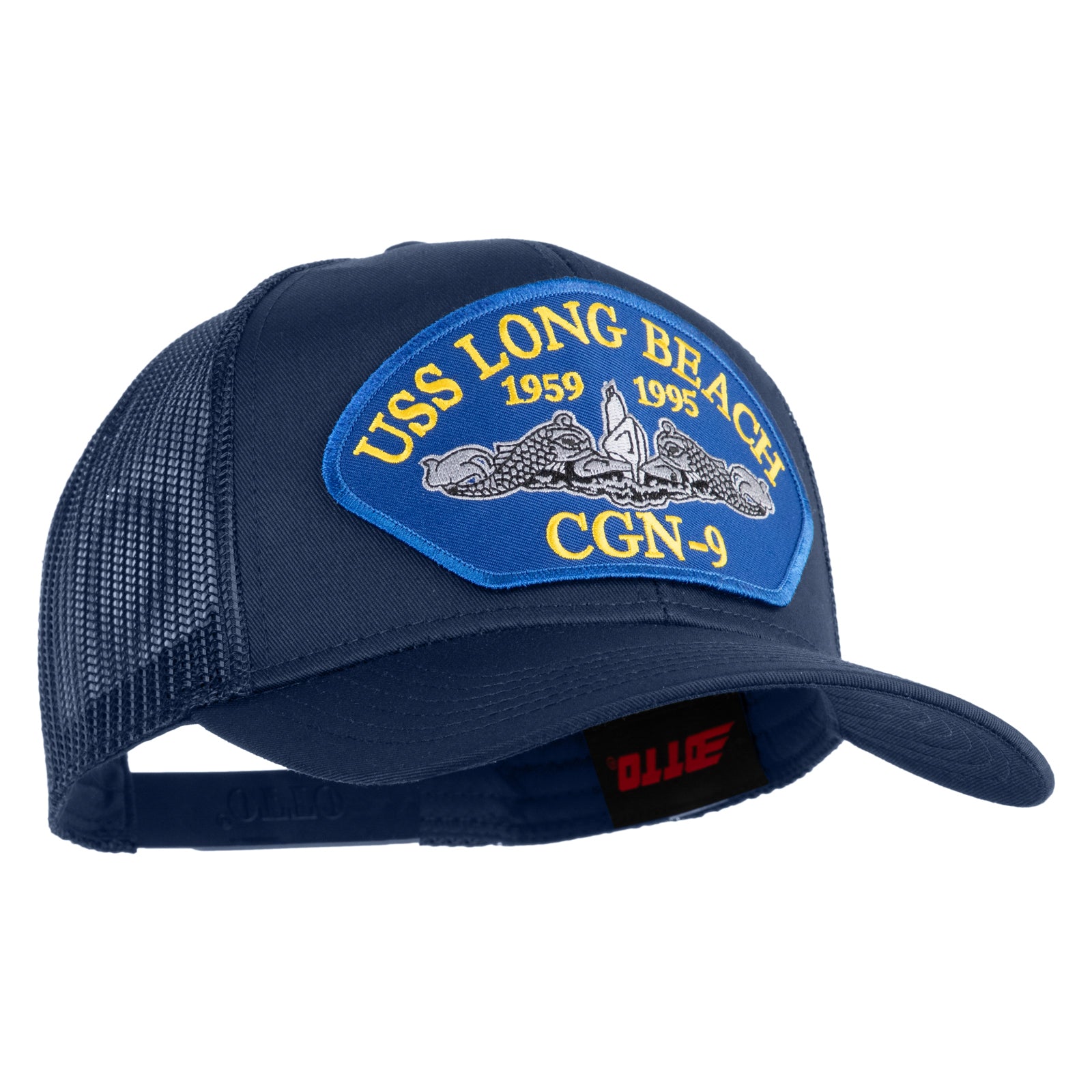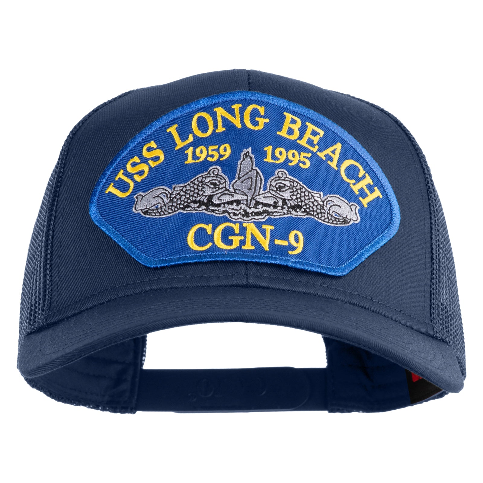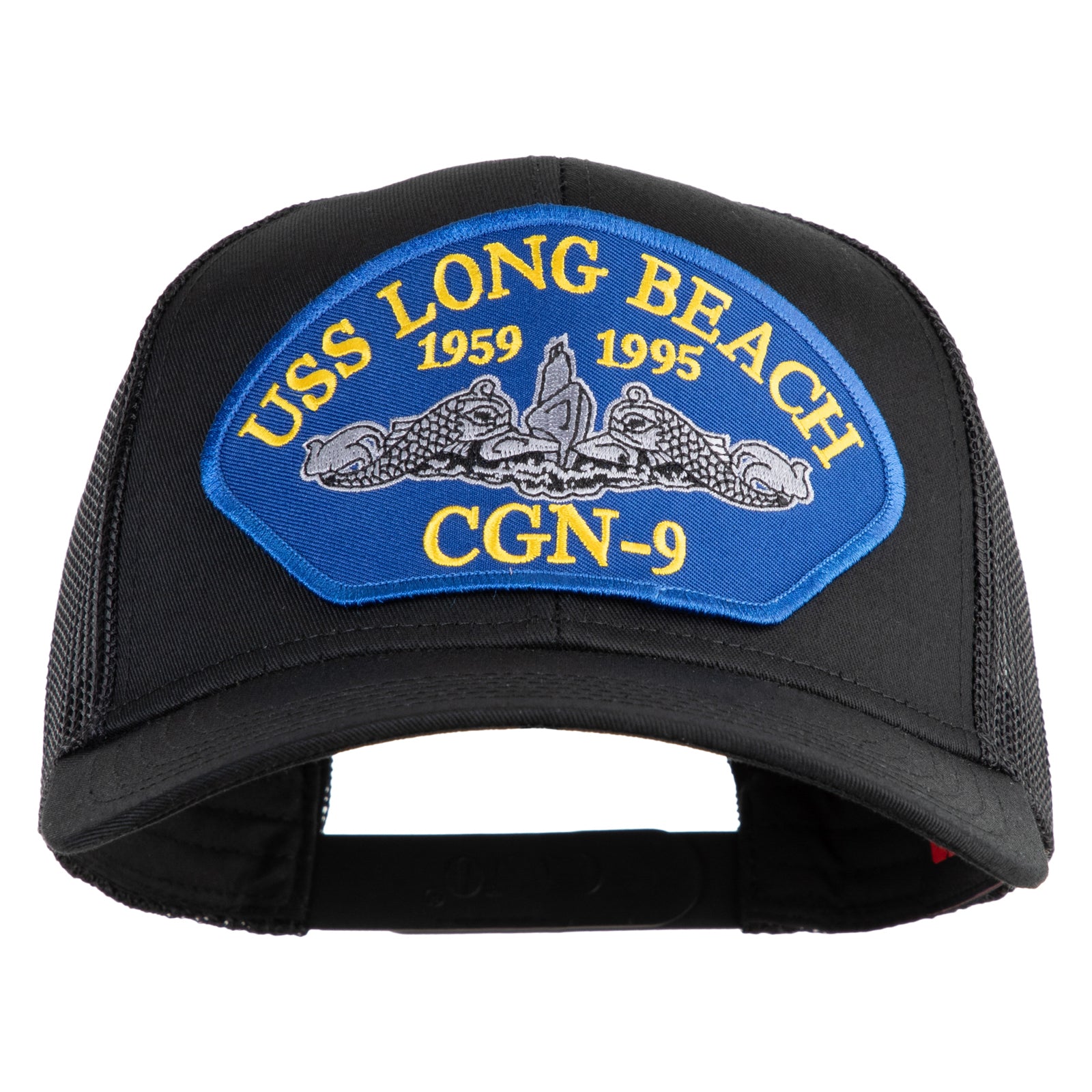 Title, USS Long Beach 1959 1995 CGN 9 Submarine Blue Patched Solid Cotton Twill Mesh Prostyle Cap