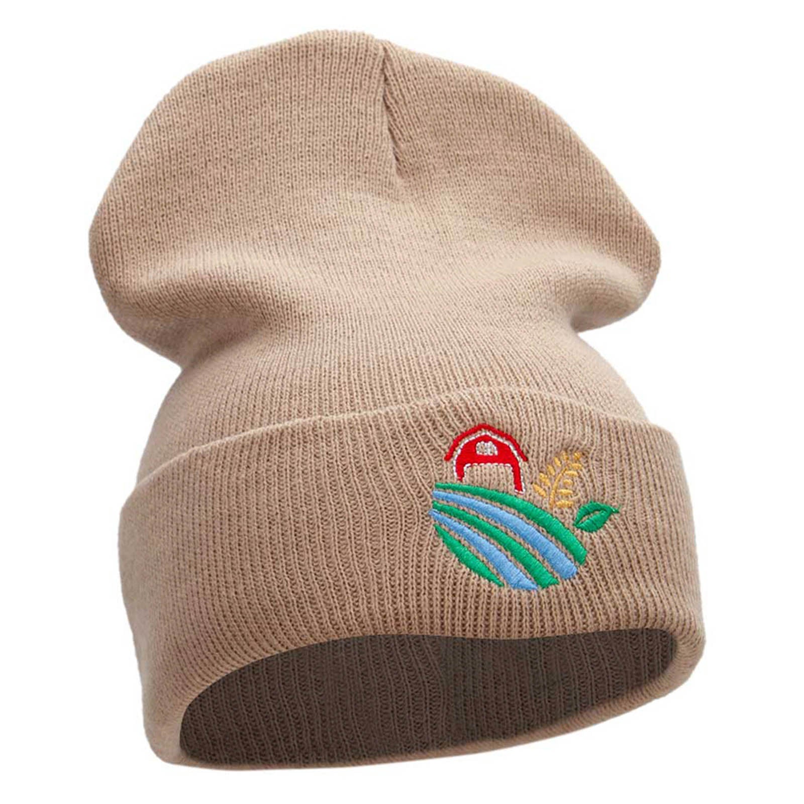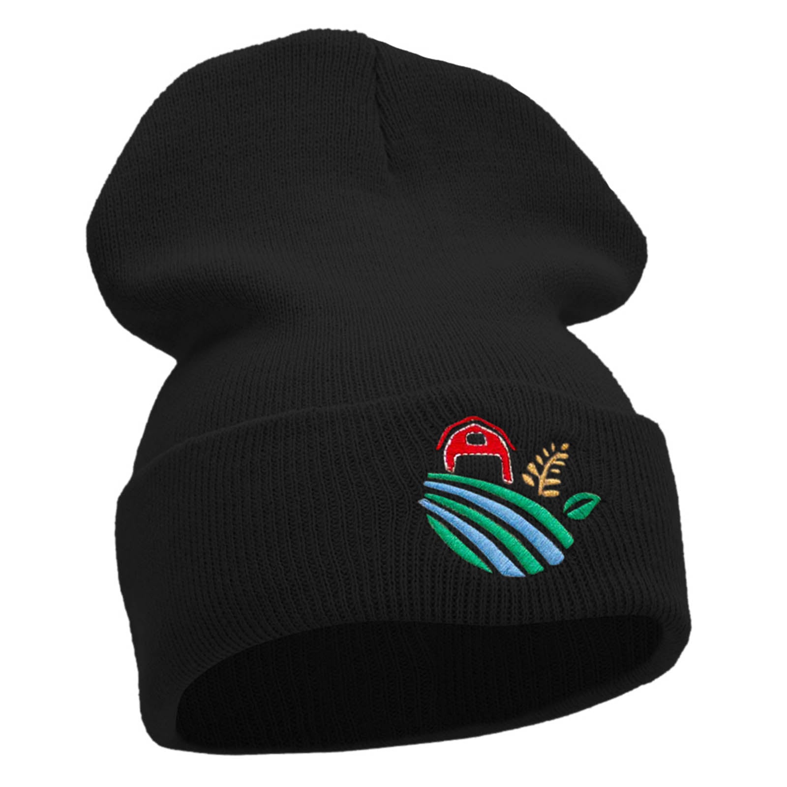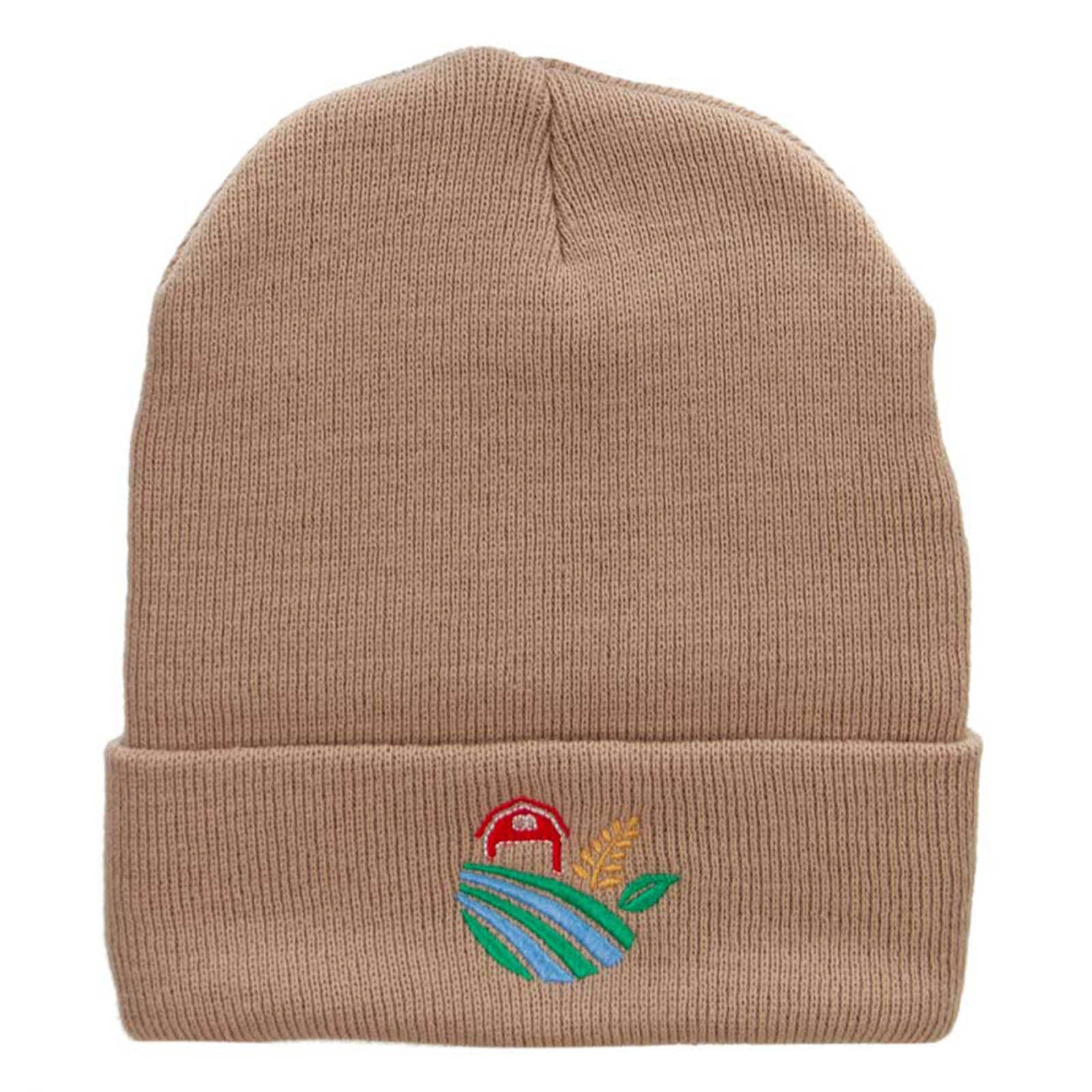 Product Origin, Farm Scape Embroidered 12 Inch Solid Long Beanie Made in USA