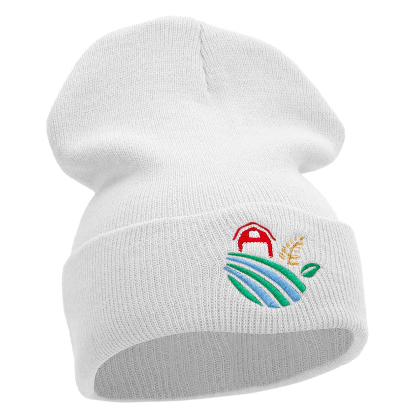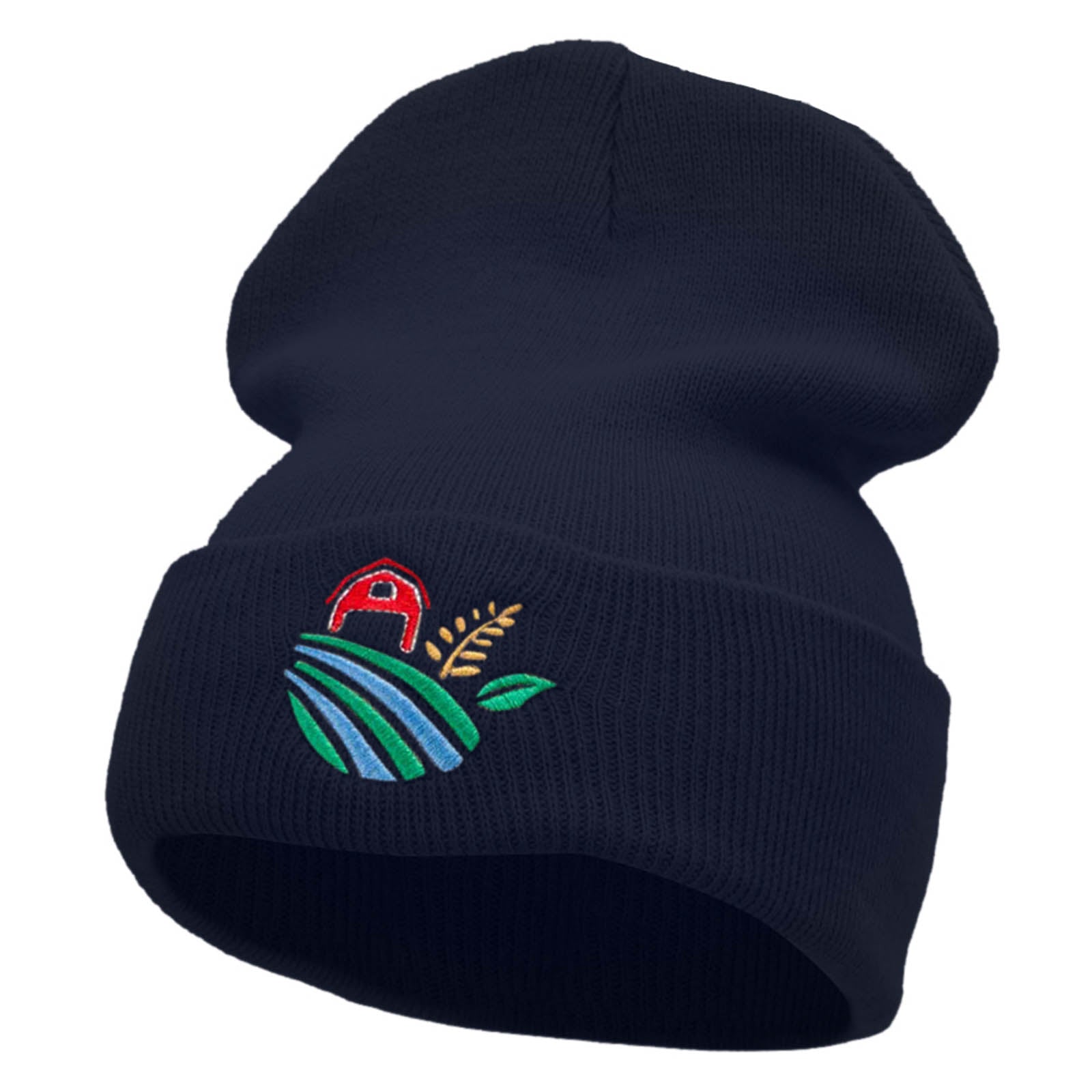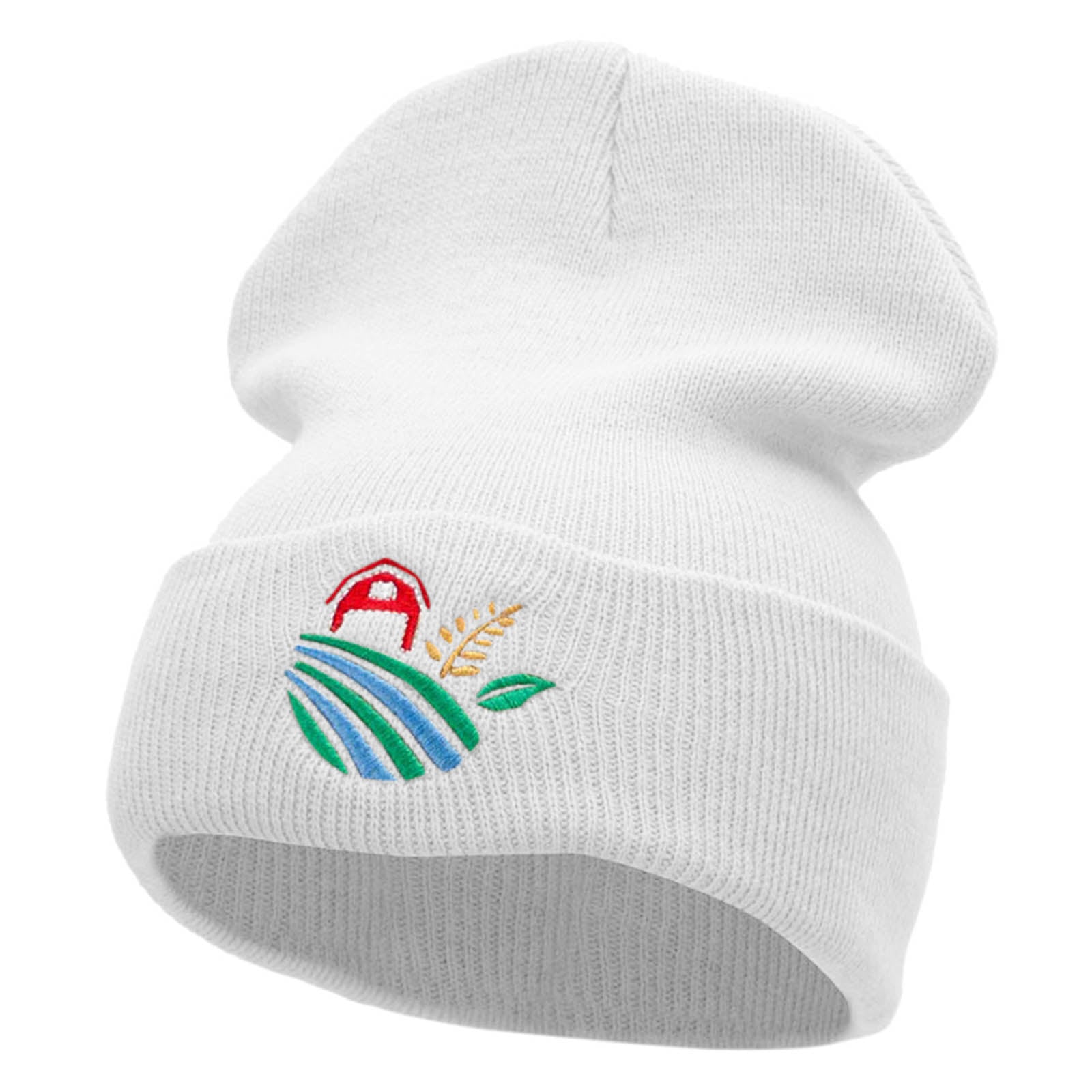 Product Origin, Farm Scape Embroidered 12 Inch Solid Long Beanie Made in USA