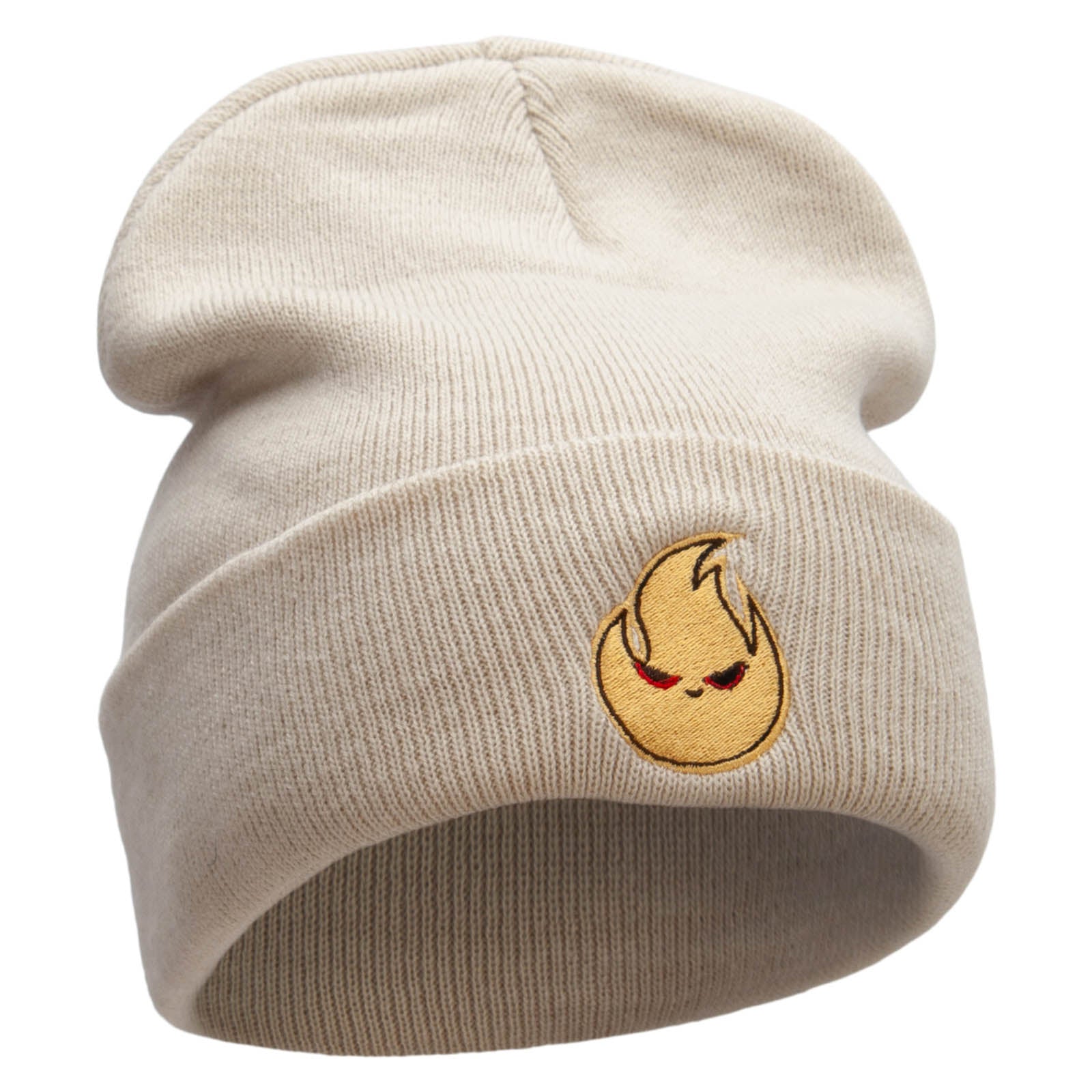 Gaming Fire Logo Embroidered 12 Inch Long Knitted Beanie - Birch OSFM