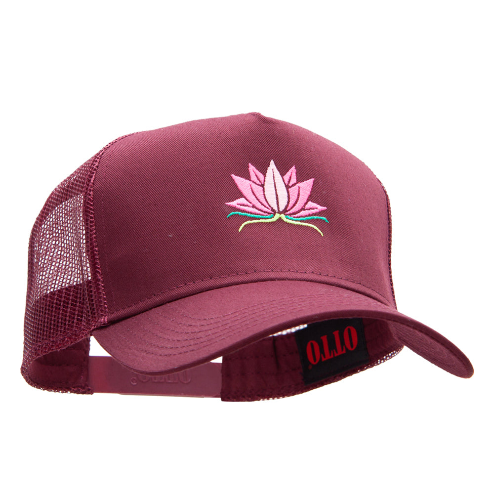 Product Title, Lotus Spiritual Embroidered Cotton Twill Mesh Cap