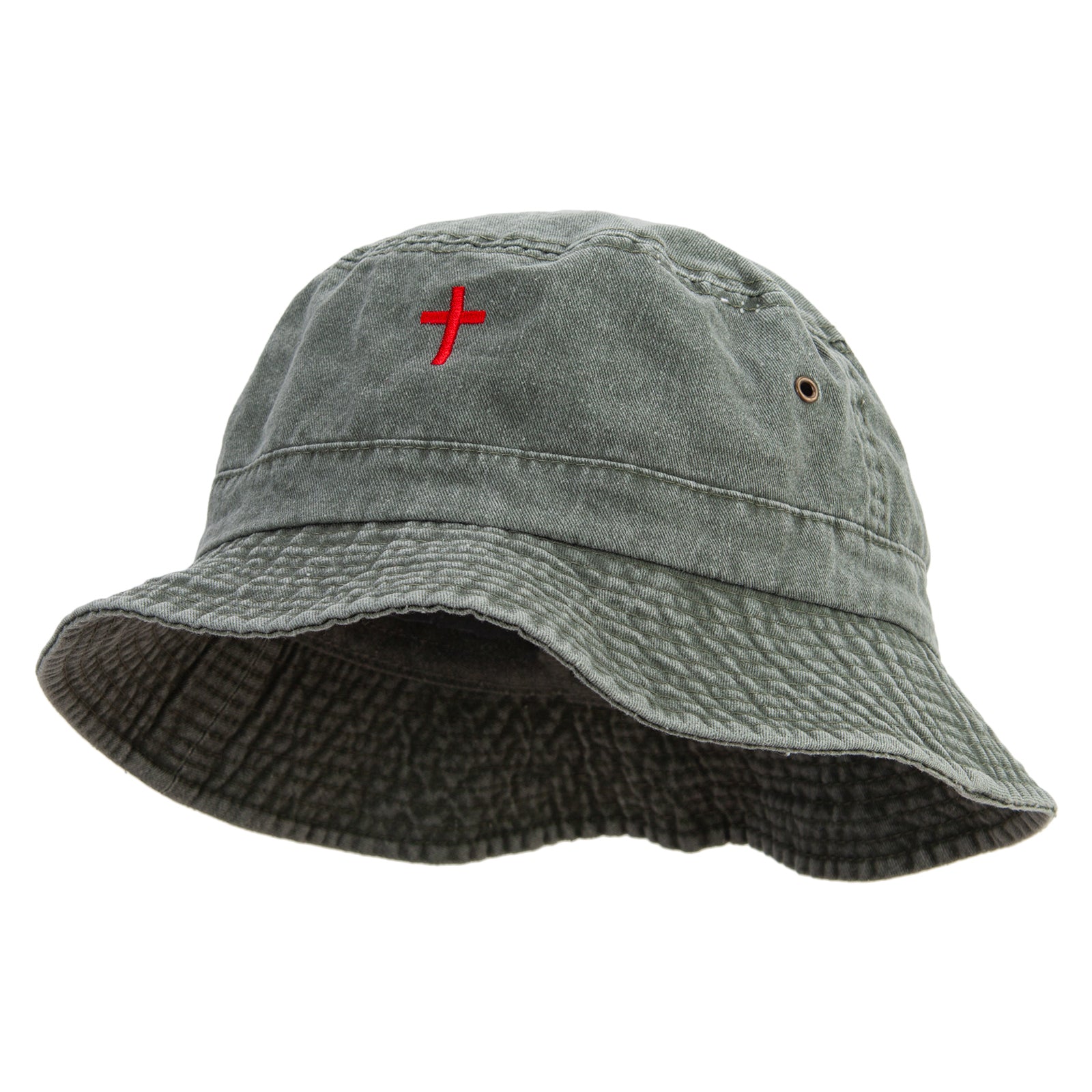 Red Christian Flag Embroidered Big Size Washed Hat - Olive XL-2XL