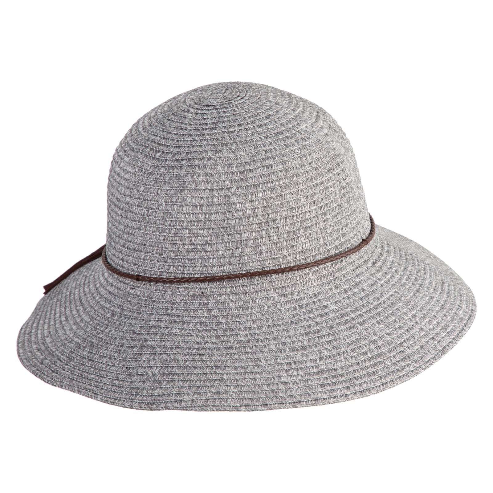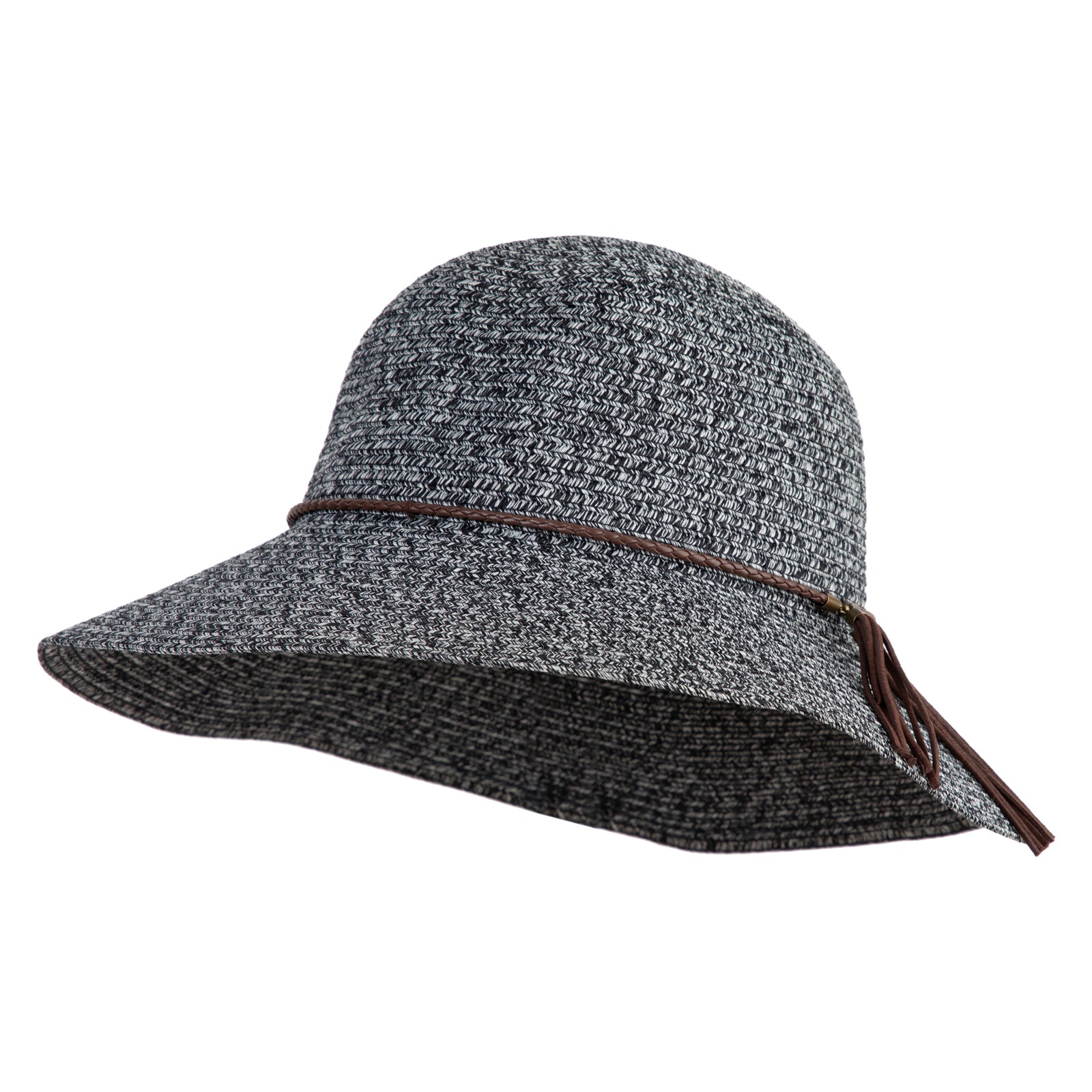 Women's Poly Braid Cloche Large Brim Bucket Hat - Dark Grey Tweed OSFM