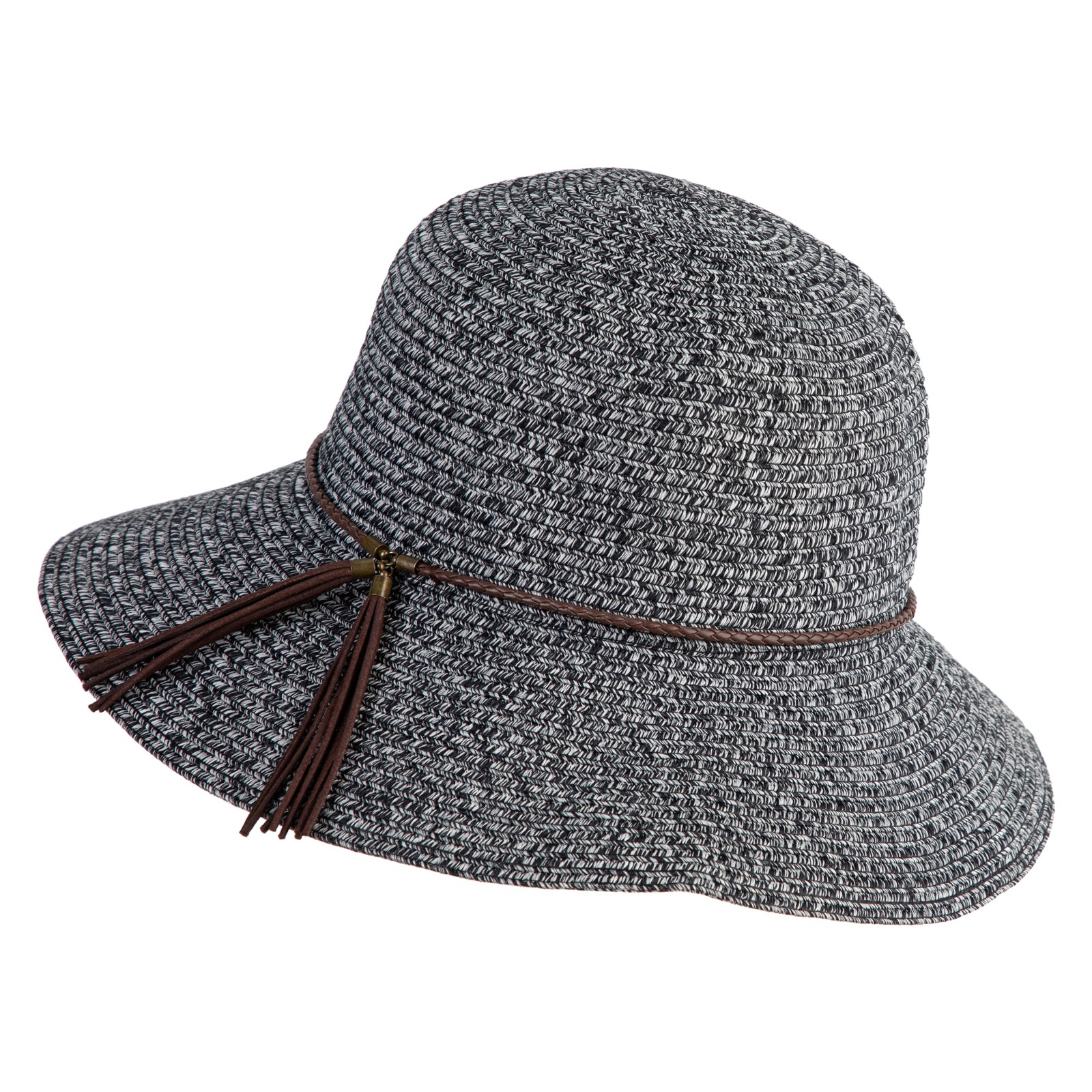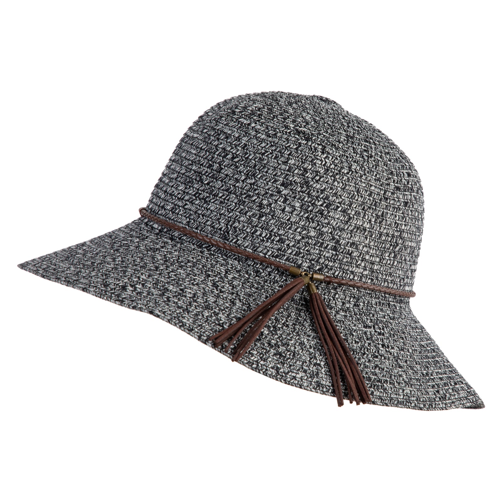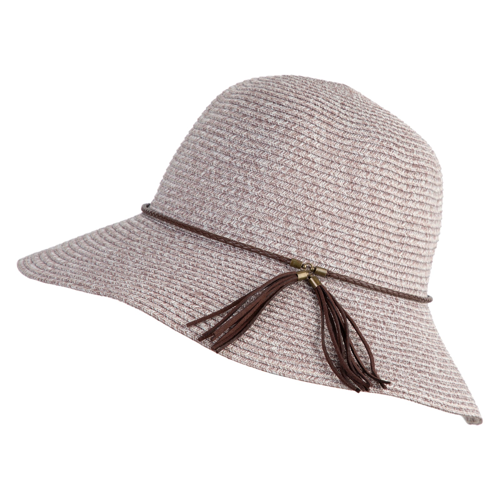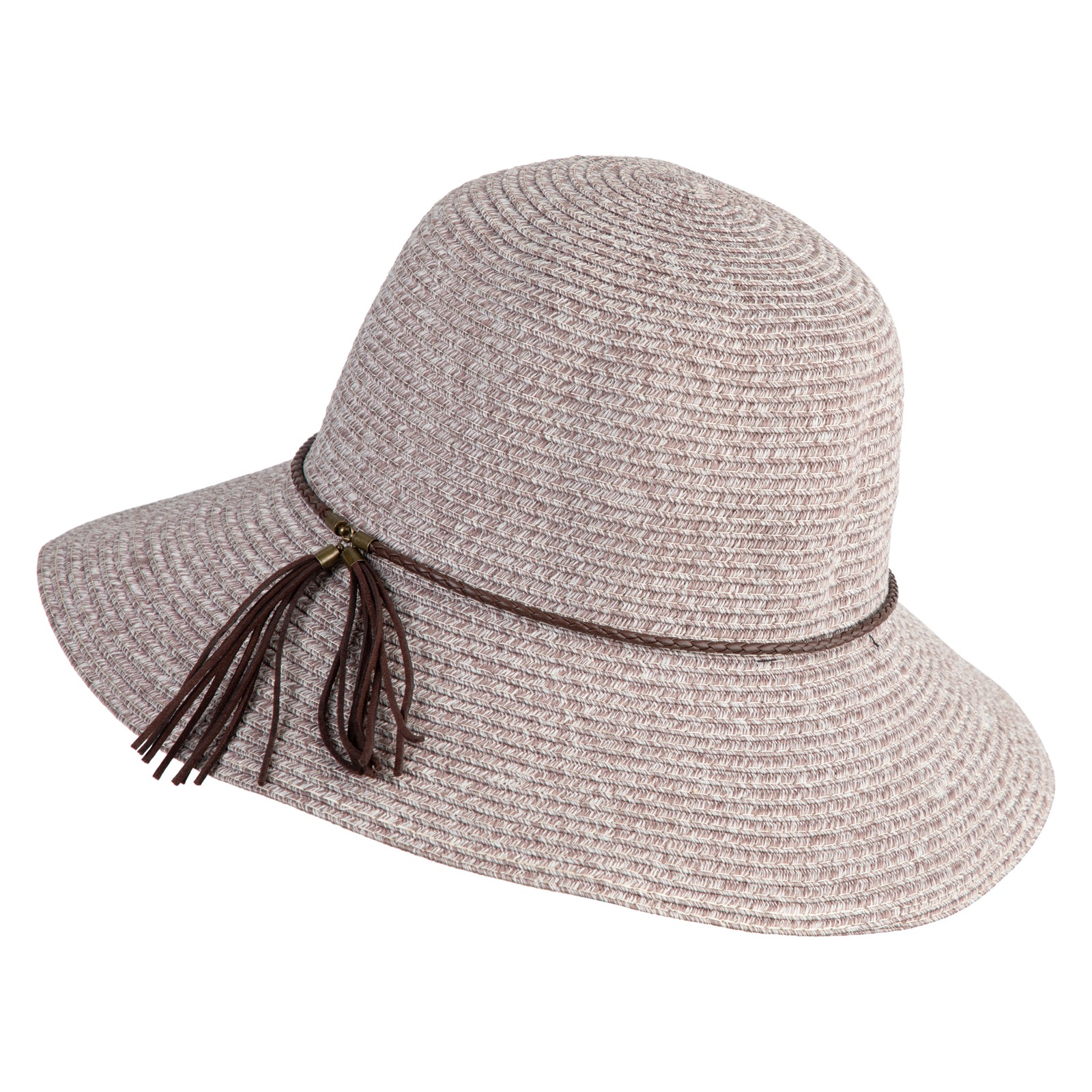 Design Detail, Leatherette band and tassel around crown for a chic finish