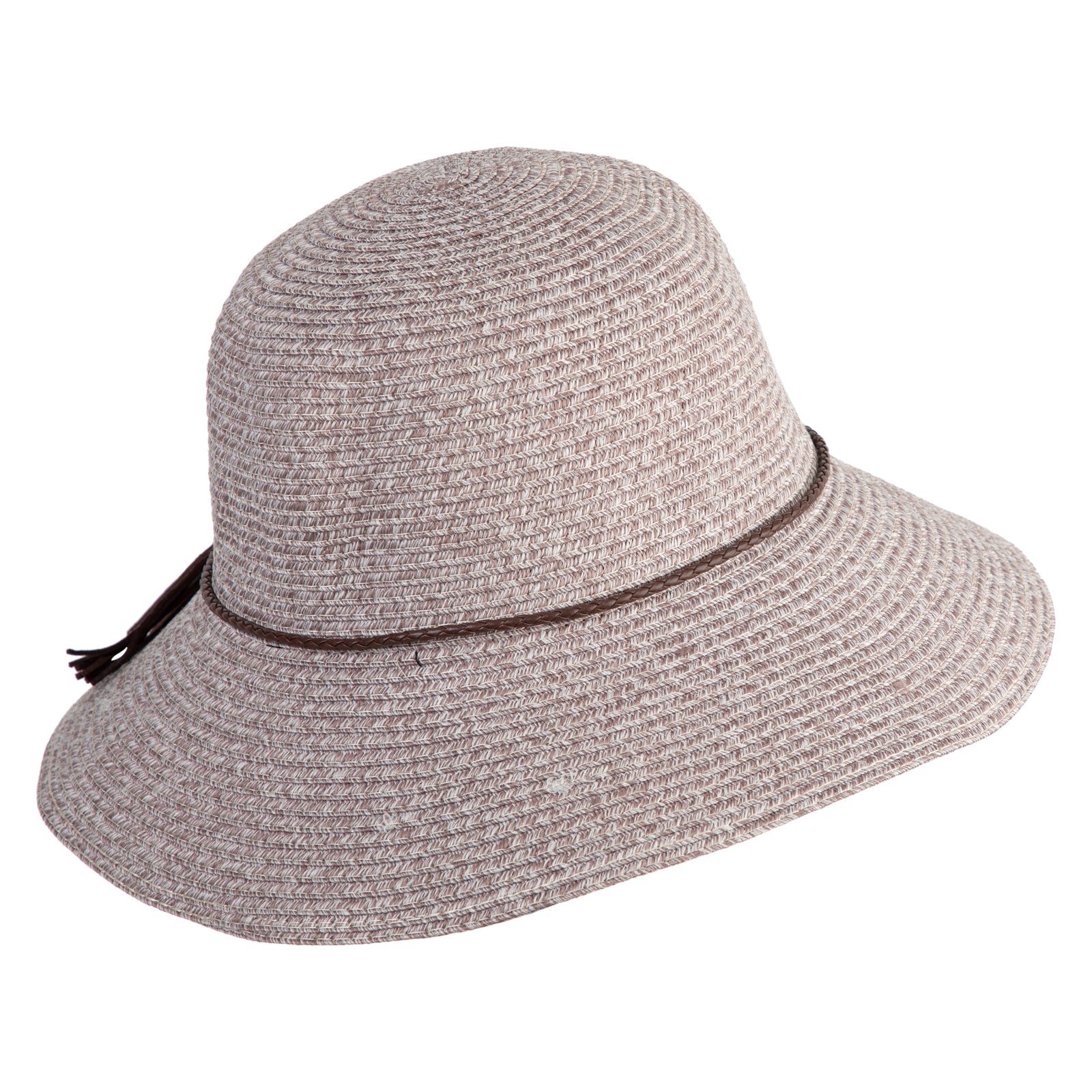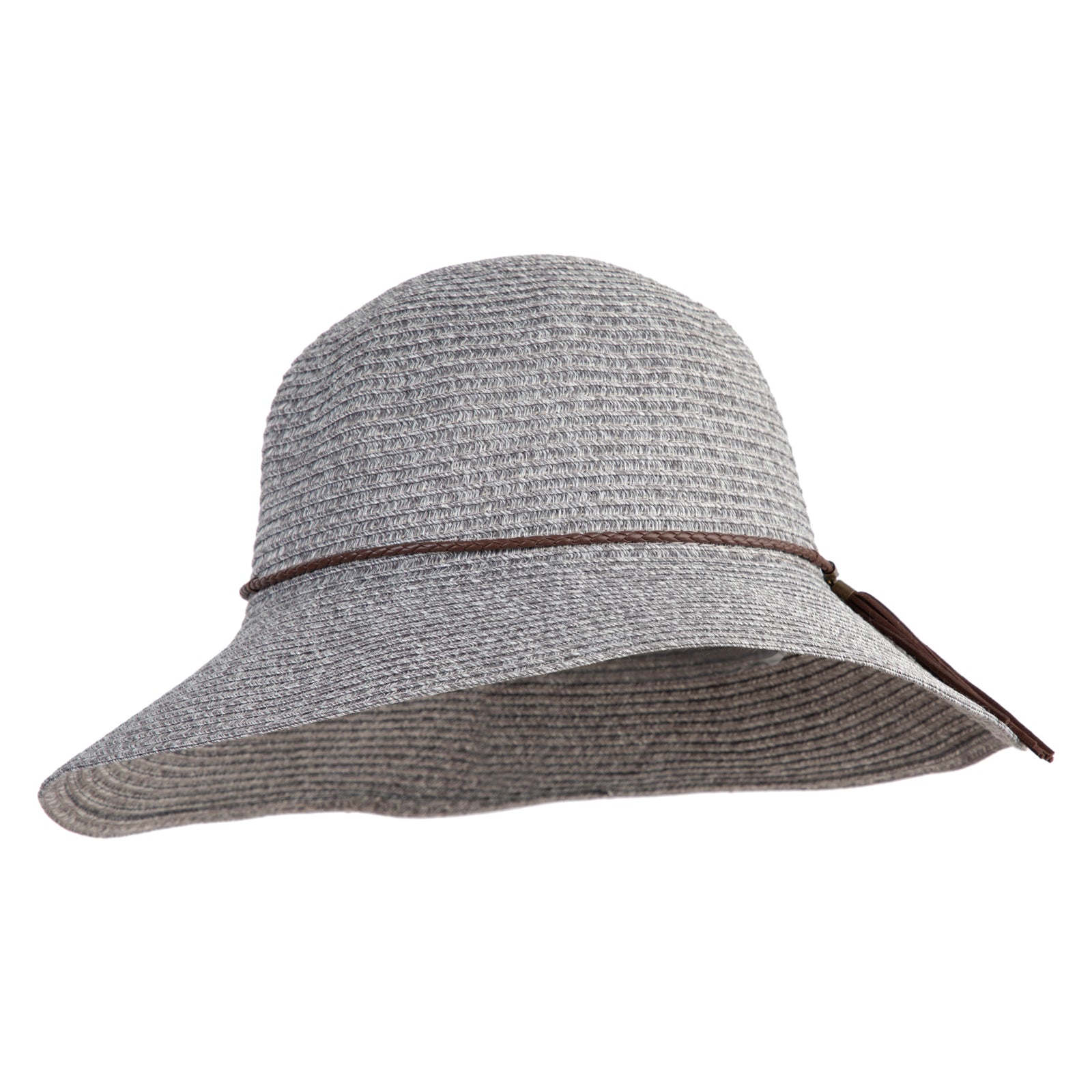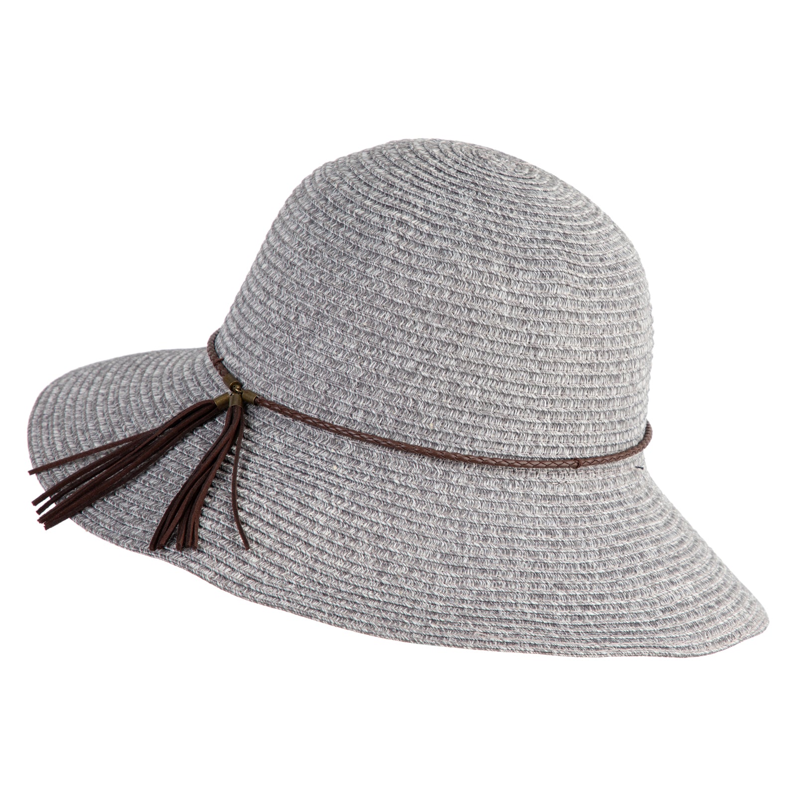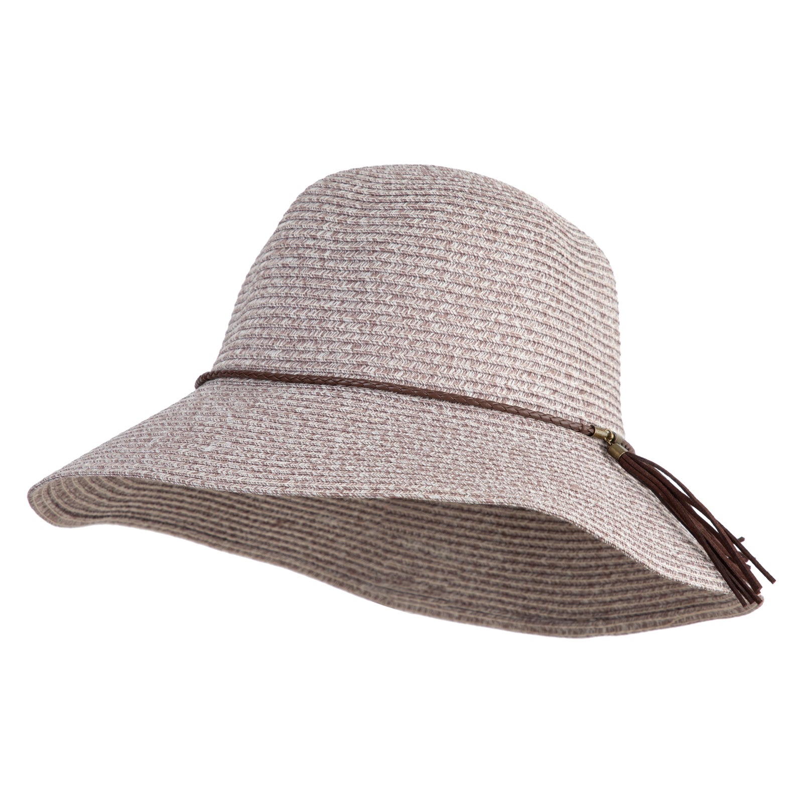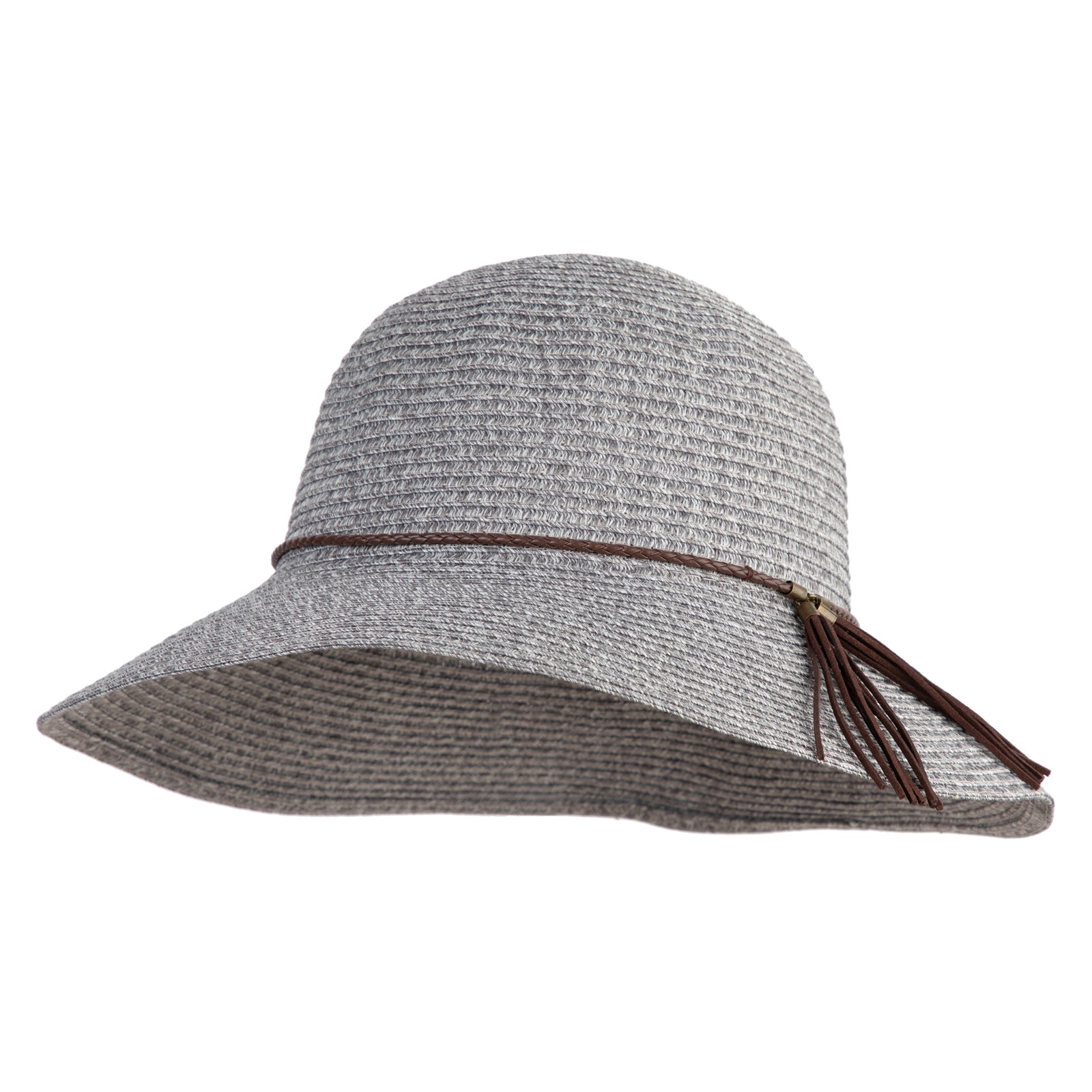 Design Detail, Leatherette band and tassel around crown for a chic finish