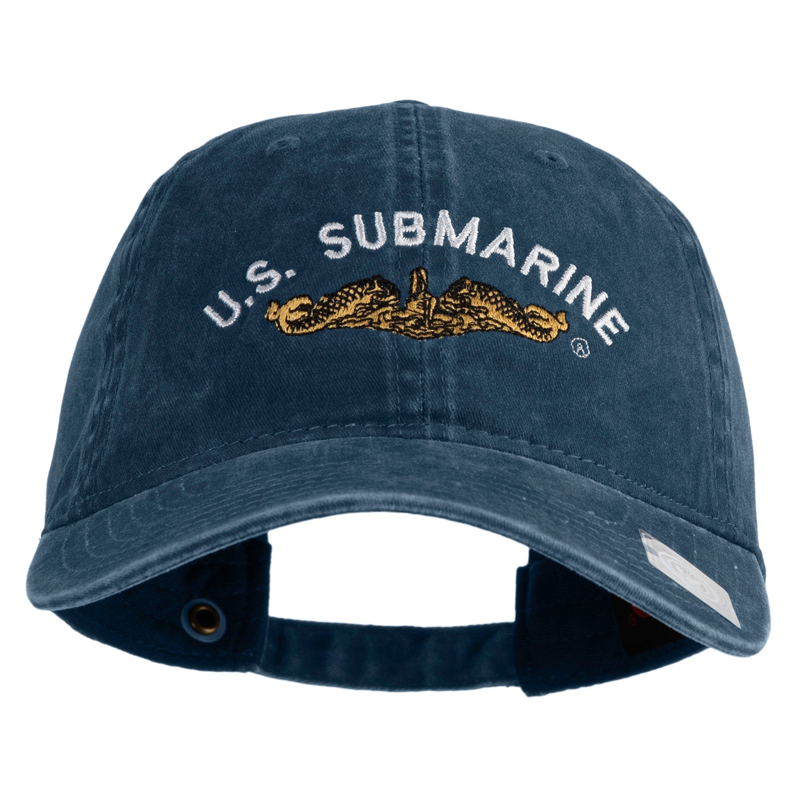 Title, Golden US Submarine Embroidered Washed Solid Pigment Dyed Cotton Twill Brass Buckle Cap