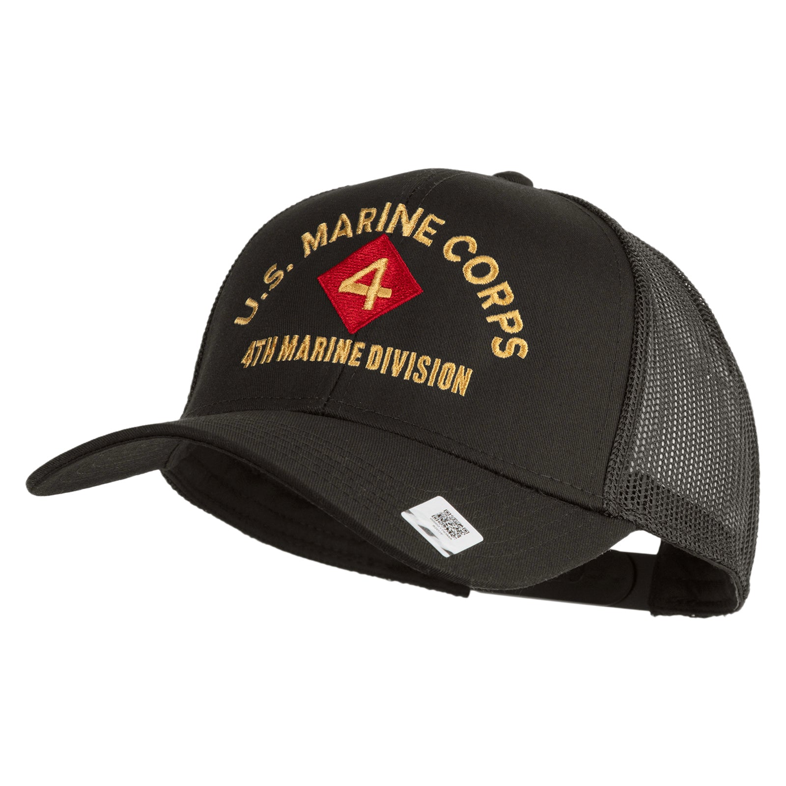 U.S. Marine Corps 4th Marine Division Embroidered Solid Cotton Twill Mesh Prostyle Cap - Black OSFM