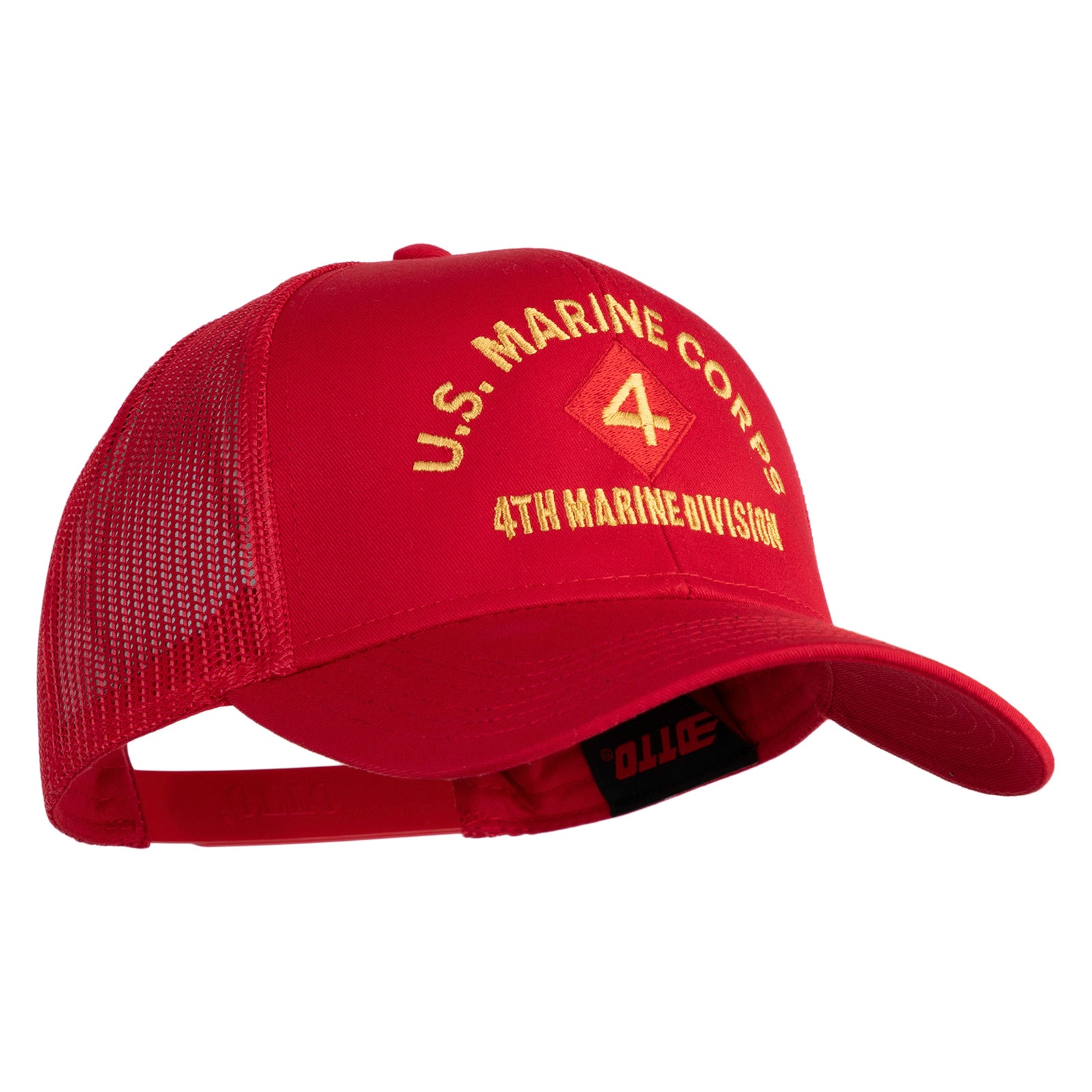 Title, U.S. Marine Corps 4th Marine Division Embroidered Solid Cotton Twill Mesh Pro Style Cap